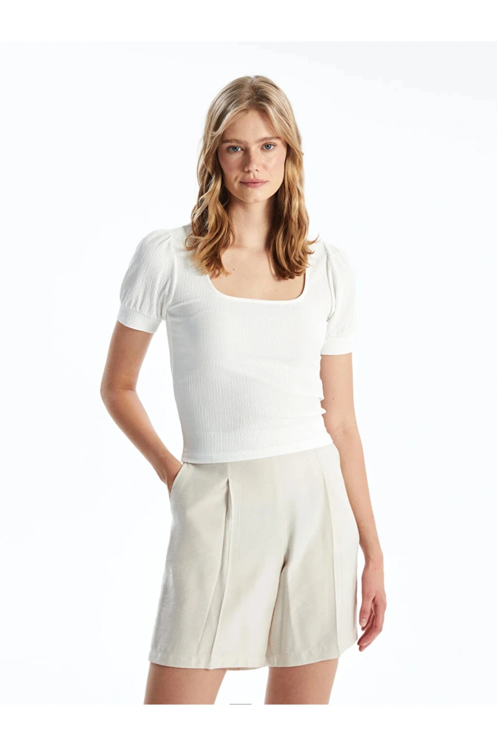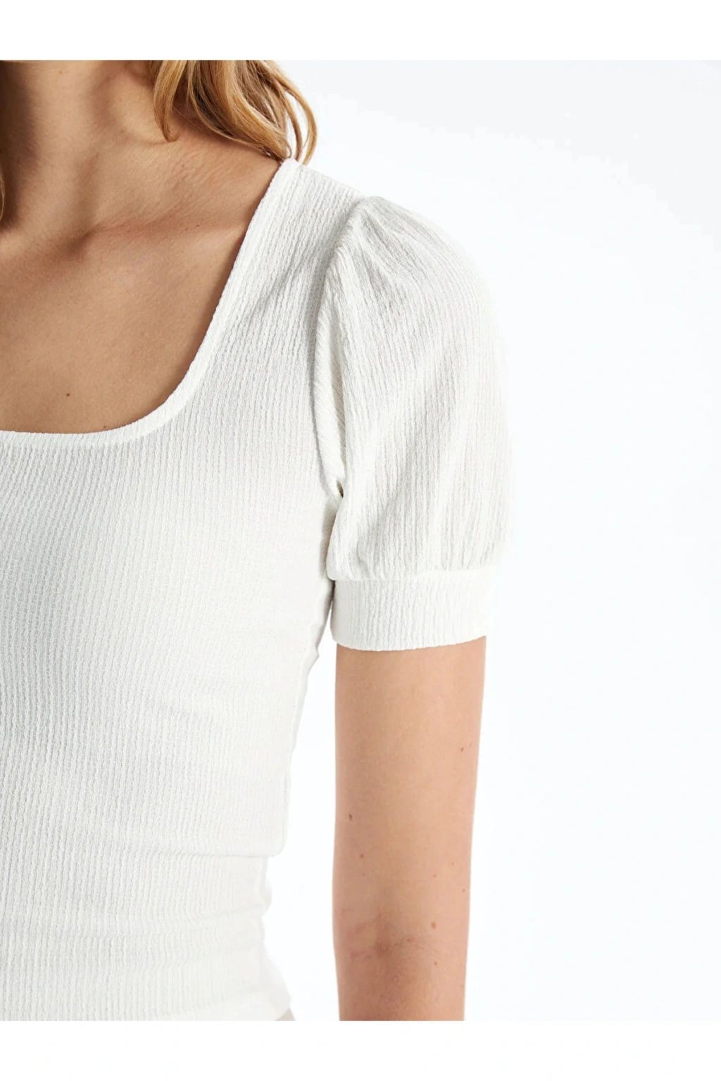 Kare yakası ile modern ve şık bir görünüm sunan bu bluz, günlük kullanım için idealdir.; Kısa kolları sayesinde rahat hareket etme imkanı sağlar ve yaz ayları için mükemmel bir tercihtir.; Dokuma kumaşı, dayanıklı yapısıyla uzun süreli kullanım vaat ederken aynı zamanda konforlu bir deneyim sunar.; Tüm yaş gruplarına uygun tasarımıyla herkes tarafından rahatlıkla tercih edilebilir.; Regular kalıbı sayesinde vücut hatlarını saran ancak sıkmayan bir yapıya sahiptir, böylece gün boyu rahatlık sağlar.; Düz kesimiyle zamansız bir stil oluşturmanıza olanak tanırken, farklı alt giyim parçalarıyla kolayca kombinlenebilir.;