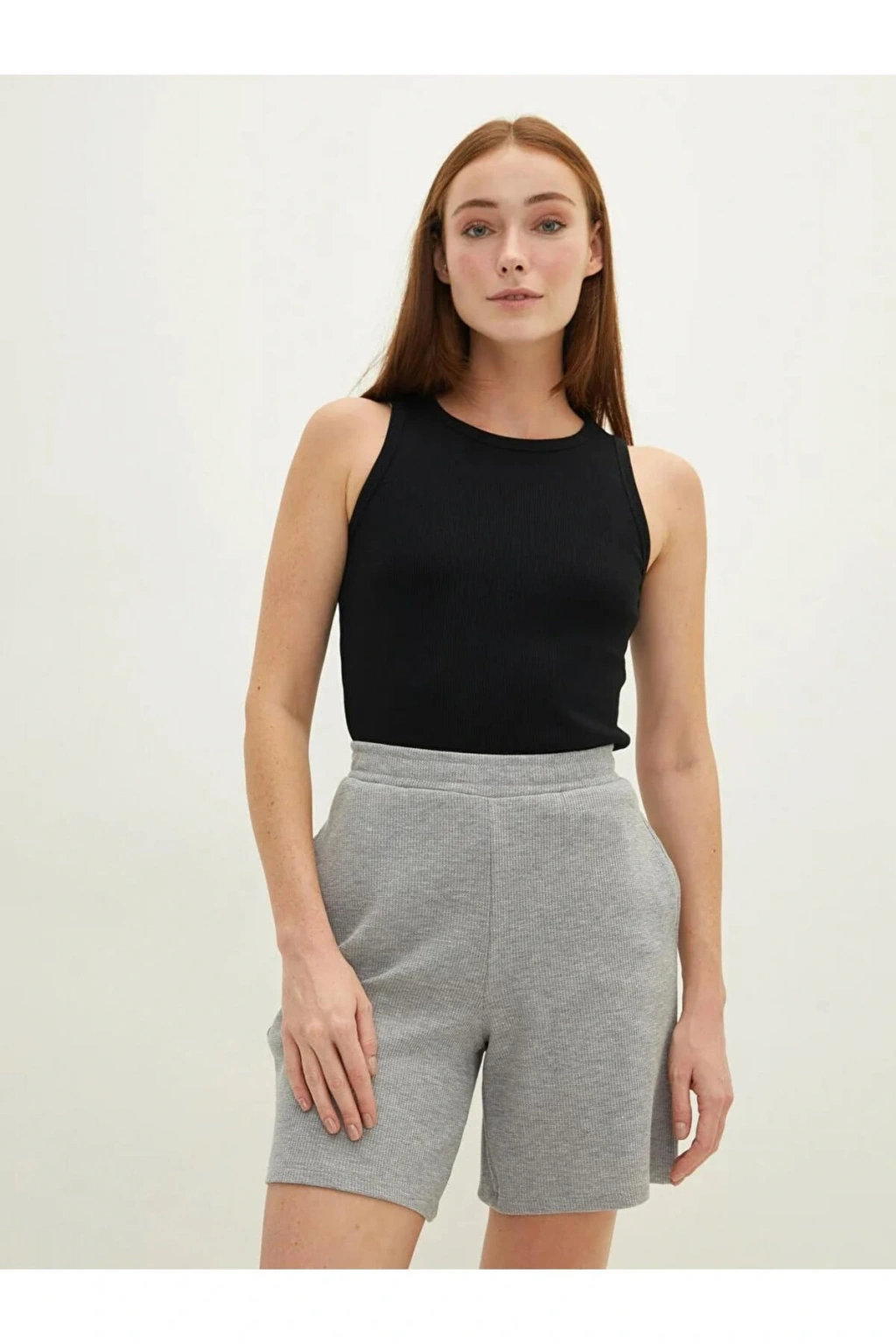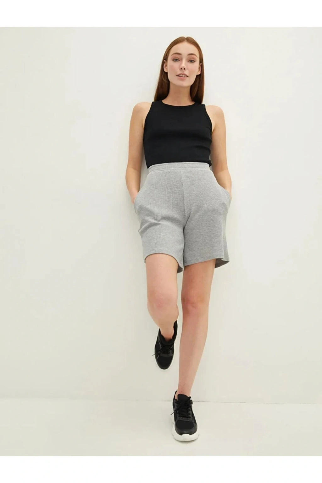 LCWAIKIKI Basic Gri Beli Lastikli Düz Cep Detaylı Kadın Şort