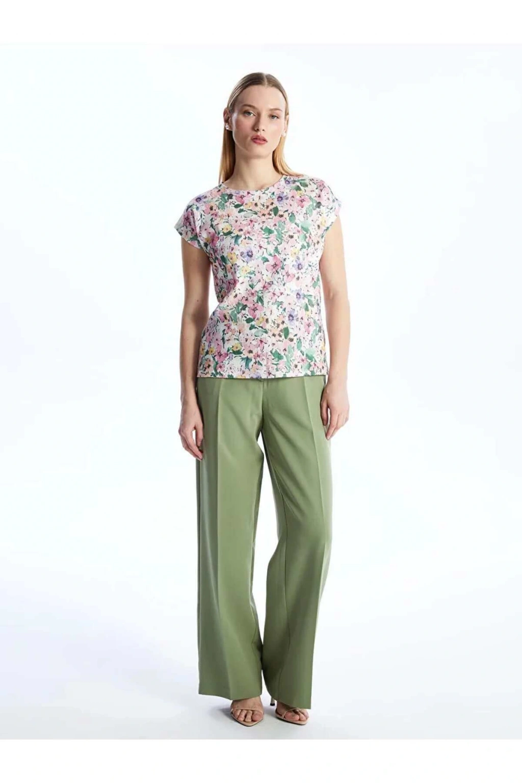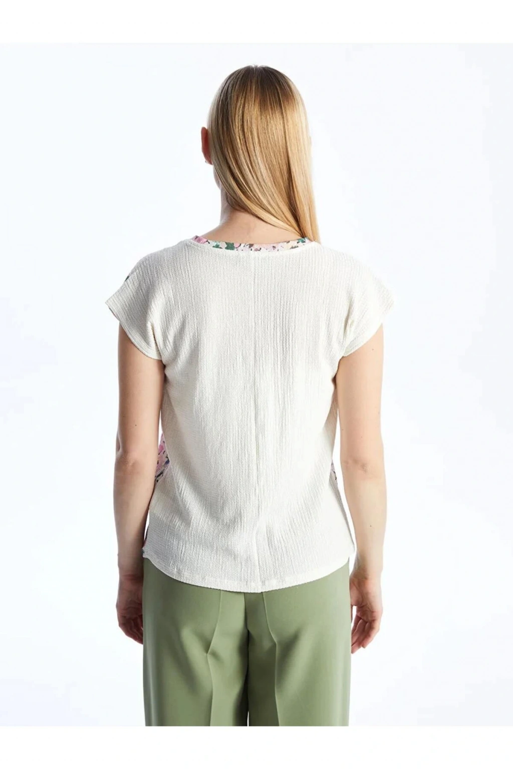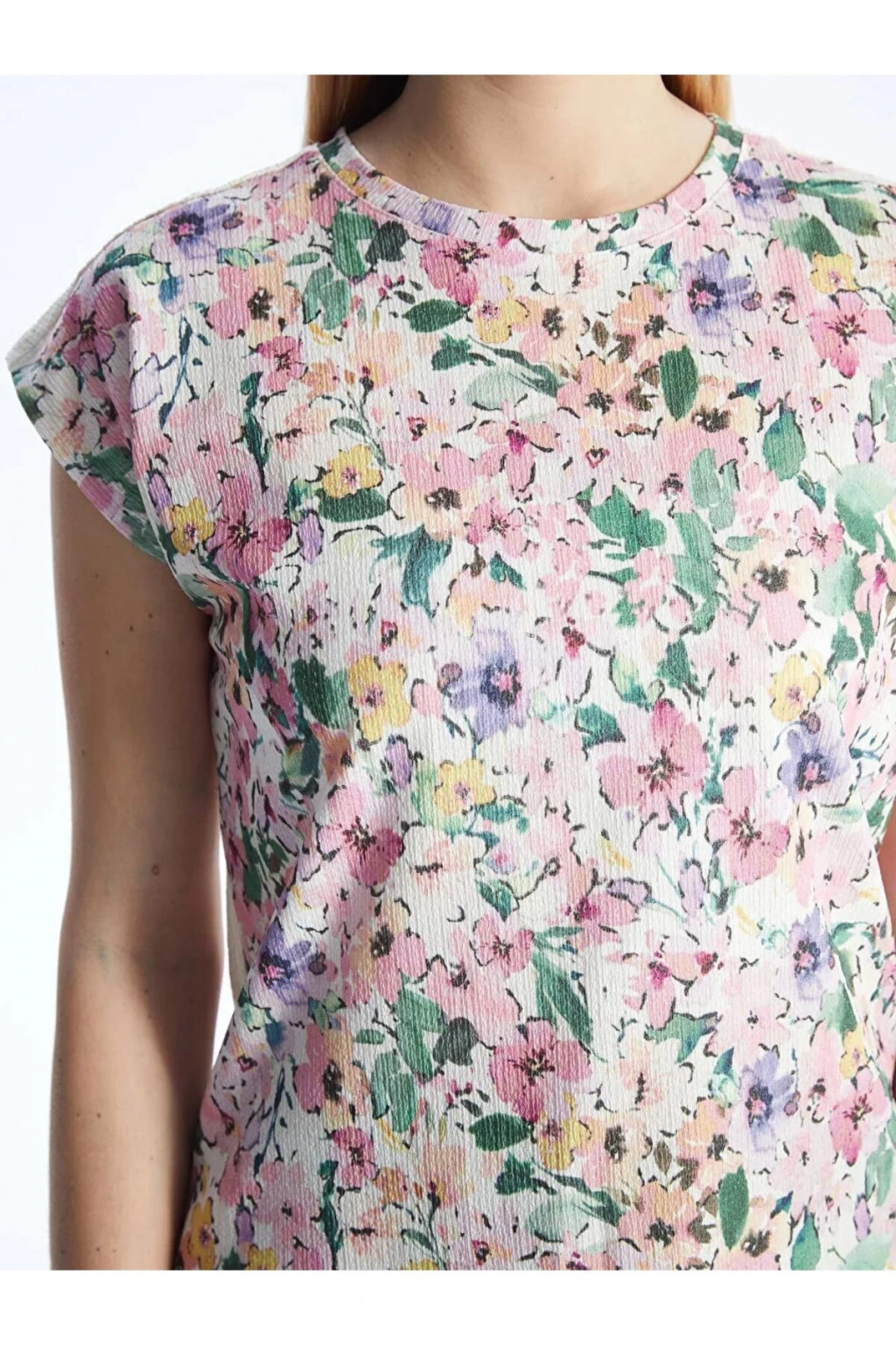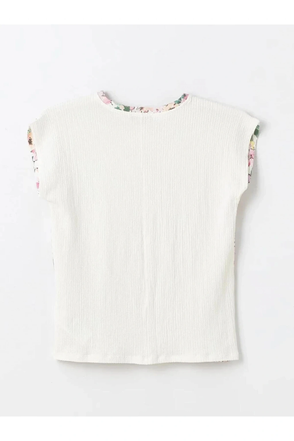 Bisiklet yaka çiçekli kısa kollu tişört, raşel kumaştan üretilmiştir. Hava alan yumuşak yapıdaki kumaşı, kolay yıkanır ve hızlı kuruma özelliğine sahiptir.