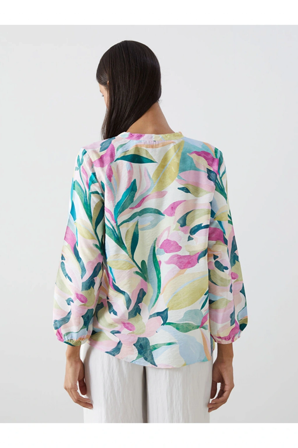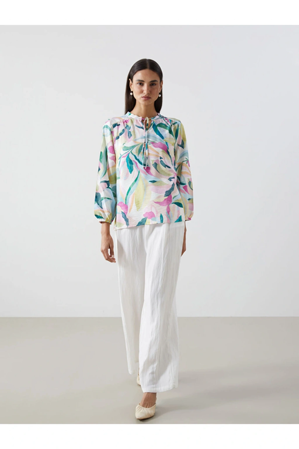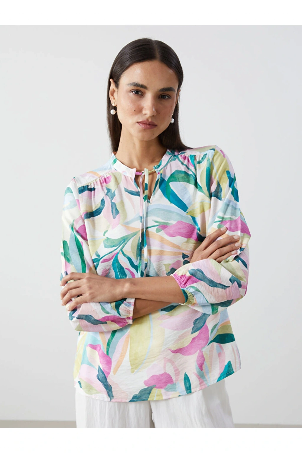 LCWAIKIKI Classic Bağlamalı Yaka Çiçekli Kadın Bluz