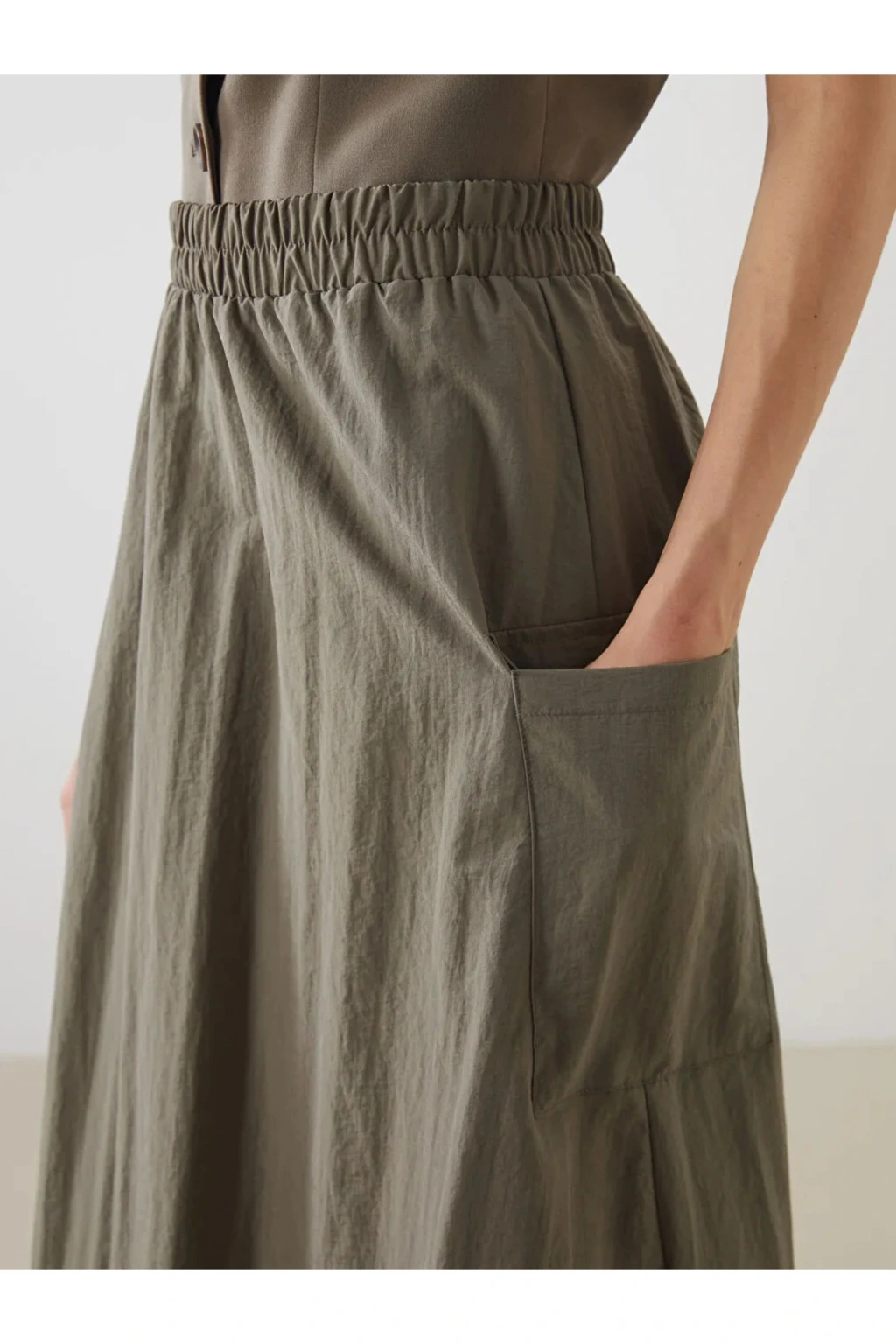LCWAIKIKI Classic Haki Beli Lastikli A Kesim Etek