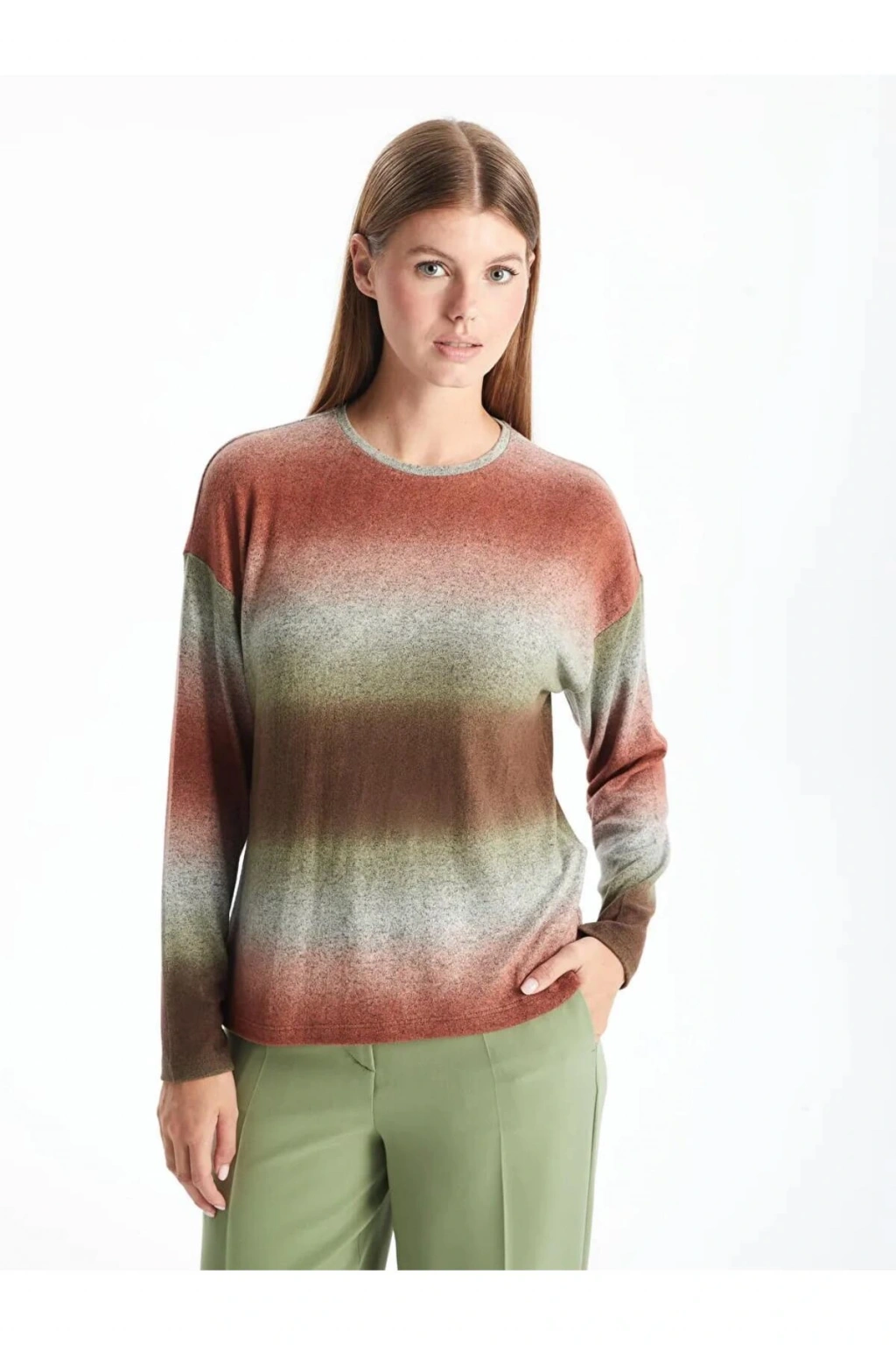 Bisiklet yaka batik uzun kollu tişört, viskoz ve polyester karışımlı esnek kumaştan üretilmiştir. Bu sayede kolay kolay kırışmaz ve bakımı kolaydır.