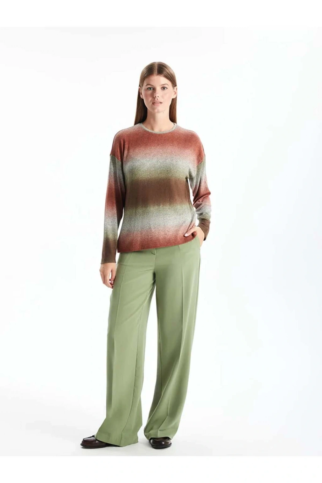 LCWAIKIKI Classic Kahverengi Bisiklet Yaka Batik Kadın Tişört