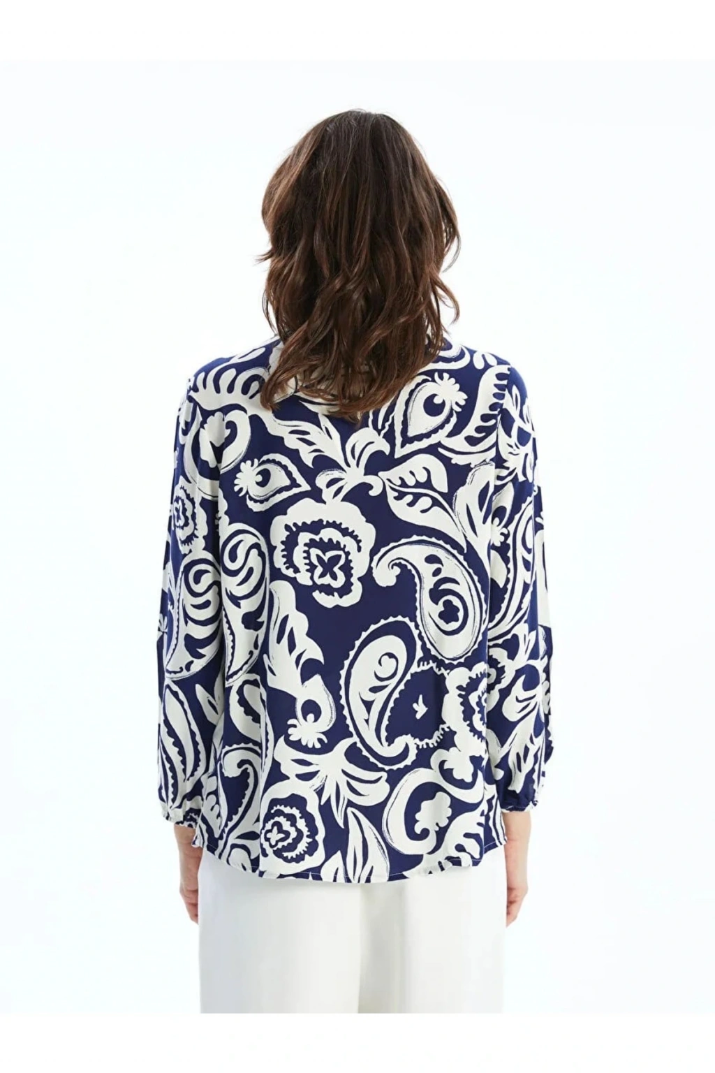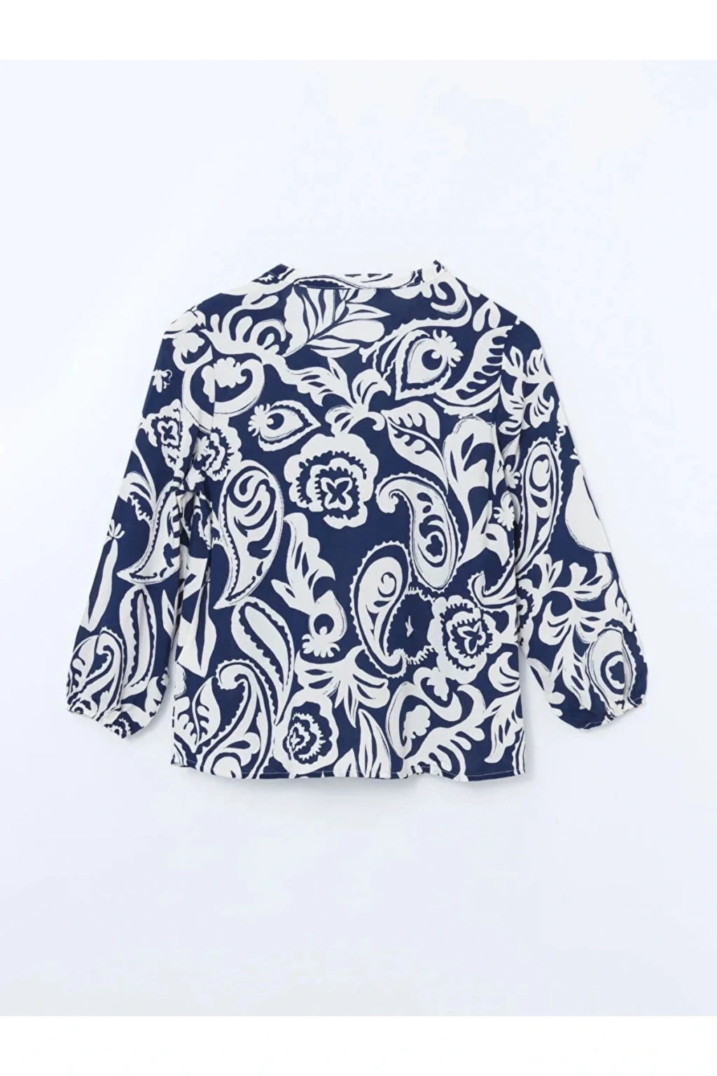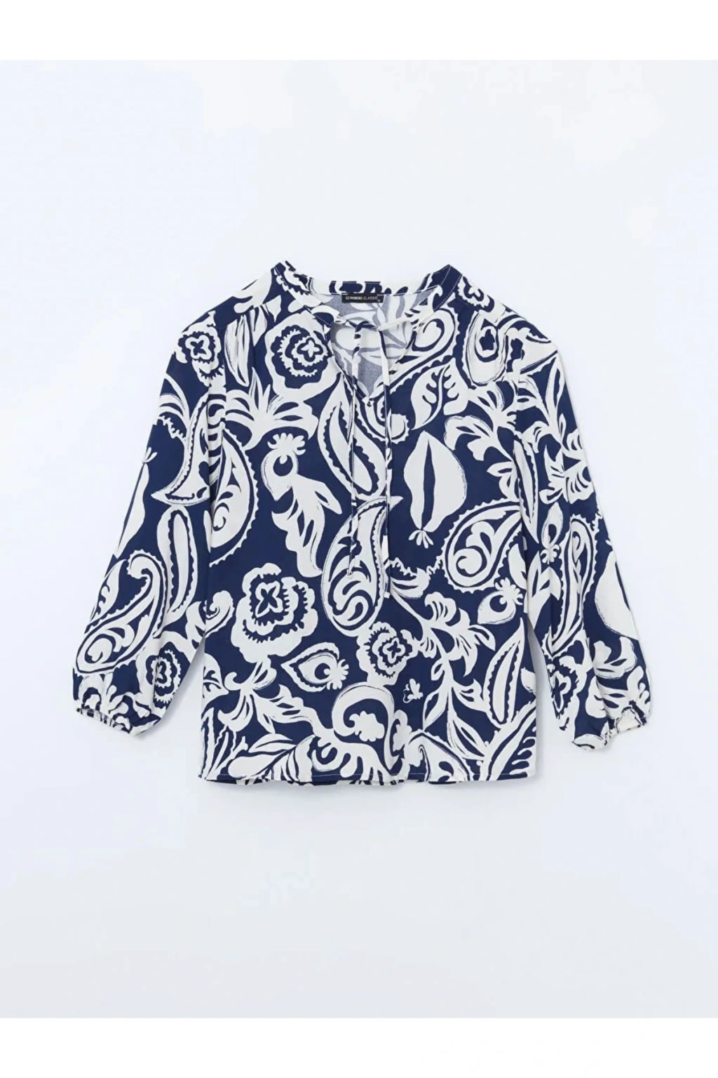 LCWAIKIKI Classic Mavi Bağlamalı Yaka Desenli Kadın Bluz