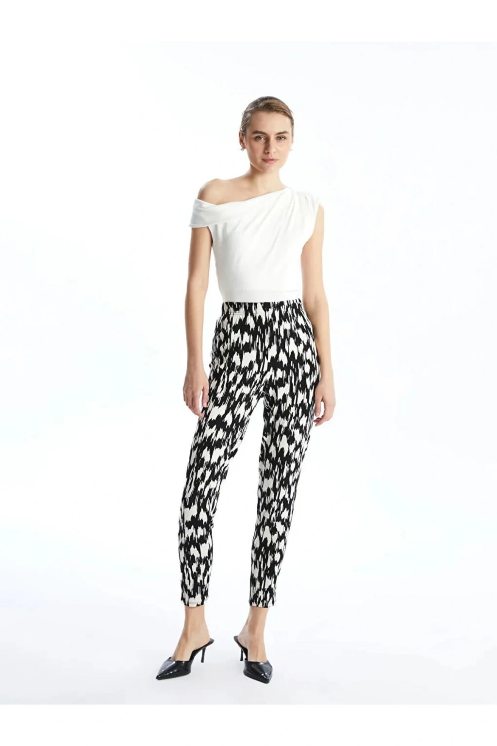 Beli lastikli desenli pantolon, hafif ve nefes alabilir kumaştan üretilmiştir ve yumuşak bir dokuya sahiptir. Belindeki lastik detayı sayesinde rahatlıkla giyilebilir ve belinizi sarar.
