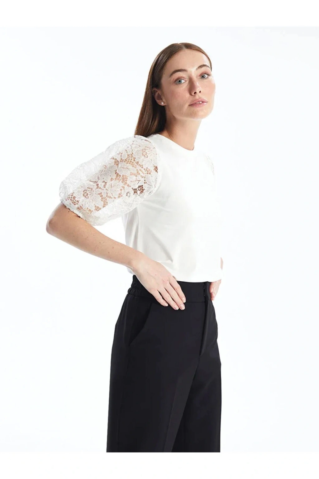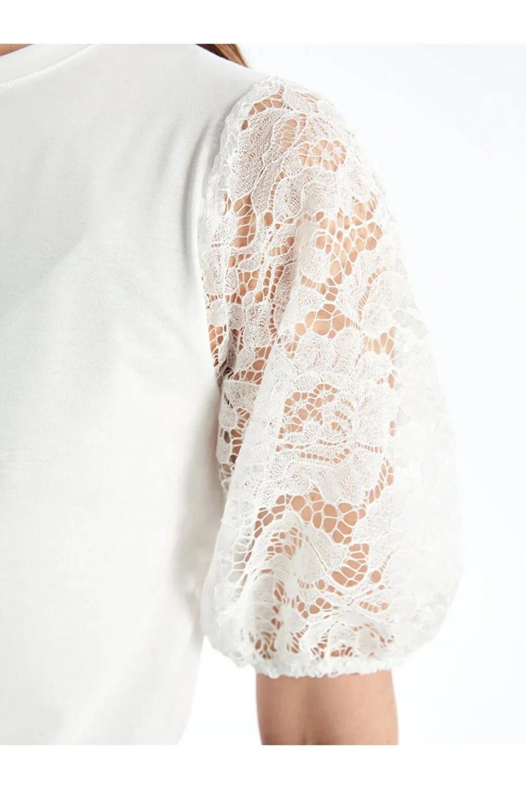 LCW Grace Bisiklet Yaka Dantel Detaylı Kadın Bluz