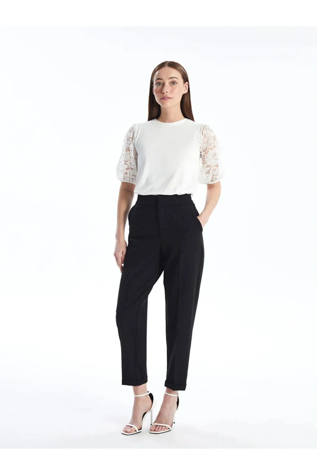 LCW Grace Siyah Bisiklet Yaka Dantel Detaylı Kadın Bluz