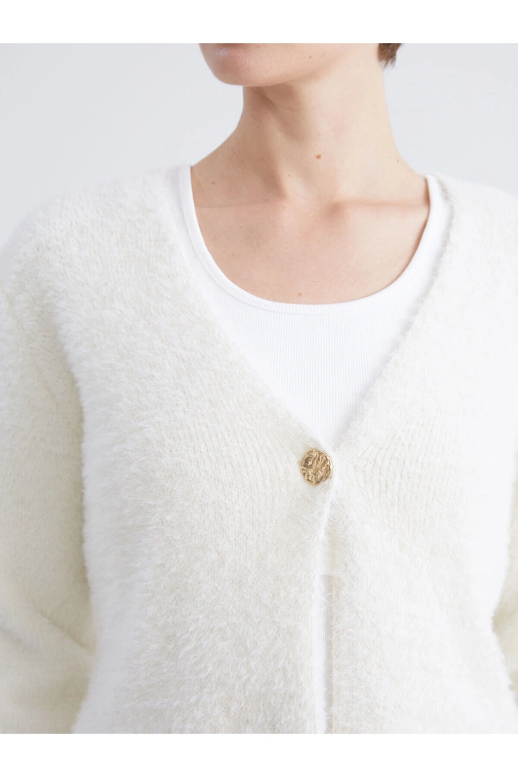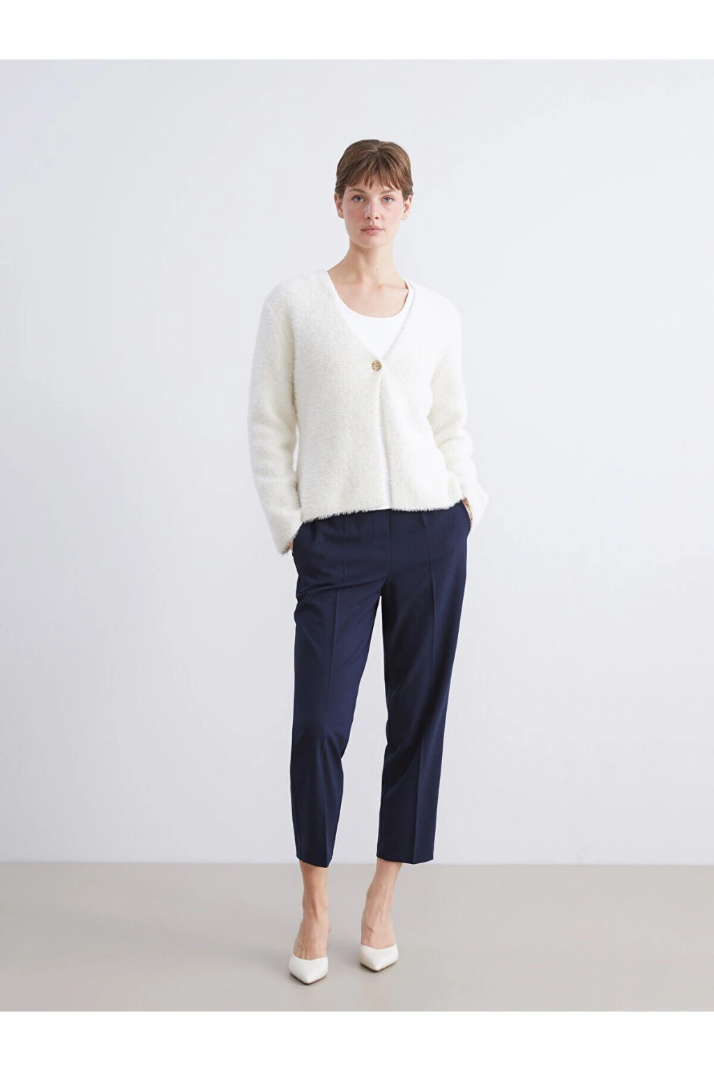 LCWAIKIKI ClassicEkru V Yaka Kadın Pelüş Triko Hırka