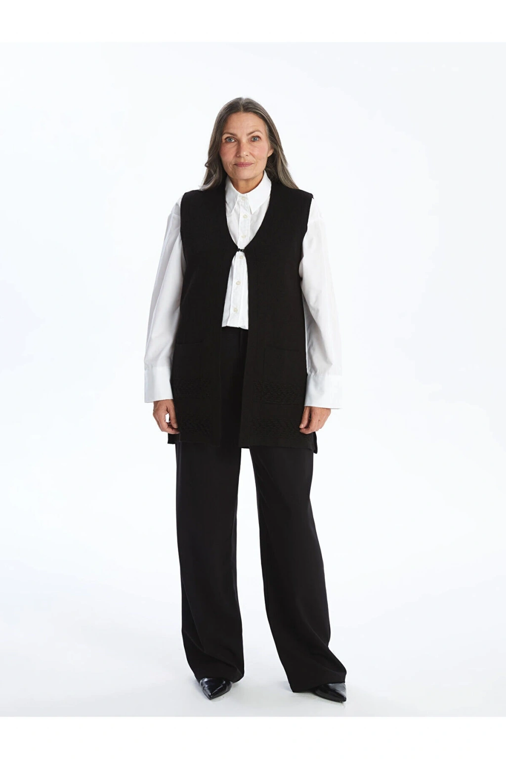 Ürün Özellikleri: Satıcı: LC Waikiki Marka: LCW Grace Ürün Tipi: Yelek Cinsiyet: Kadın Kalıp: Standart & Regular Kumaş: Triko Desen: Düz Yaka: V Yaka Kol Boyu: Kolsuz Kalınlık: Kalın Koleksiyon: Büyük Beden Uzunluk: Basen Boy