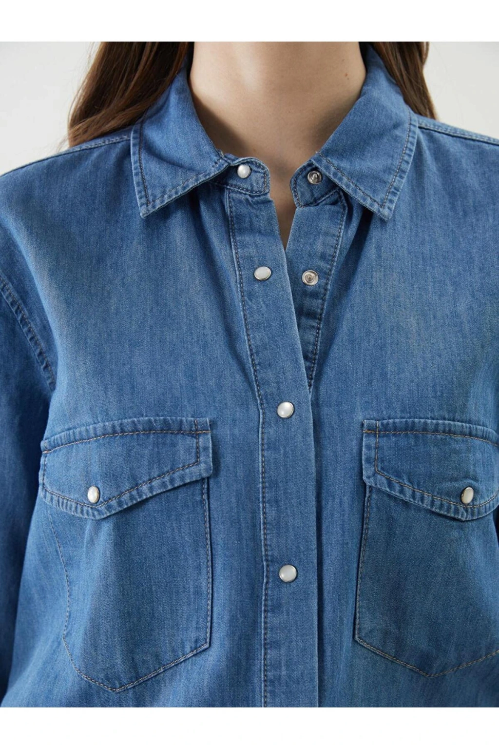 Ürün Açıklaması Rahat kalıp jean gömlek, önden düğme kapamalı tasarımıyla şık ve rahat bir görünüm sunar.; İki göğüs bölgesindeki cepler ise işlevsel bir kullanım sağlar.; Denim giysilerinizin ömrünü uzatmak için daima düşük sıcaklıkta ters çevirerek ve benzer renklerle yıkayın; bu sayede rengini ve kumaşın yapısını korurken enerji tüketimini de azaltmaya yardımcı olabiliriz.; Manken Bilgisi Göğüs: 81 cm Bel: 61 cm Basen: 90 cm Boy: 180 cm Manken S beden ürün giyiyor.; Ürün İçeriği ve Özellikleri Ürün İçeriği: Ana Kumaş: %100 Pamuk Ürün Özellikleri: Satıcı: LC Waikiki Marka: LCW Vision Ürün Tipi: Jean Gömlek Cinsiyet: Kadın Kalıp: Loose & Bol Kumaş: Denim Desen: Düz Yaka: Gömlek Yaka Kol Boyu: Uzun Kollu Malzeme: %100 Pamuk