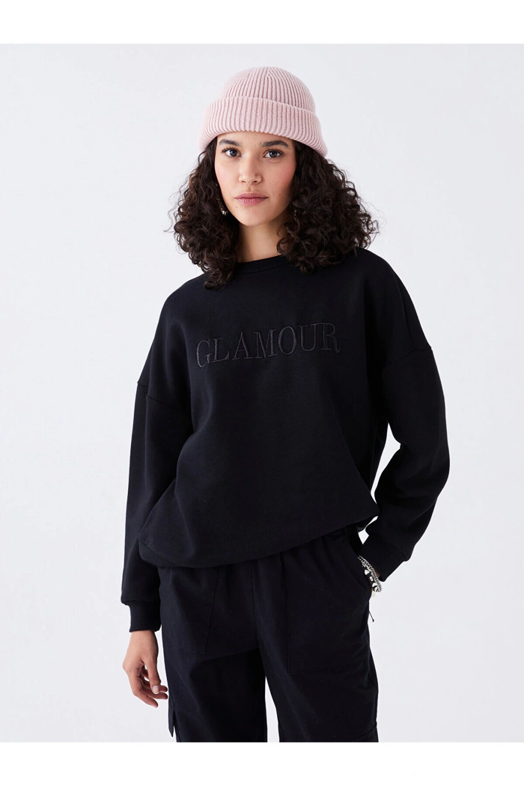 Lw - Bisiklet Yaka Nakışlı Uzun Kollu Oversize Kadın Sweatshirt