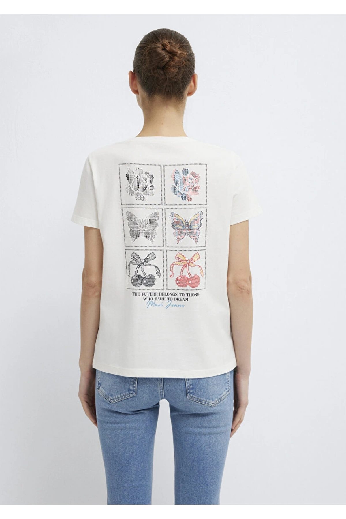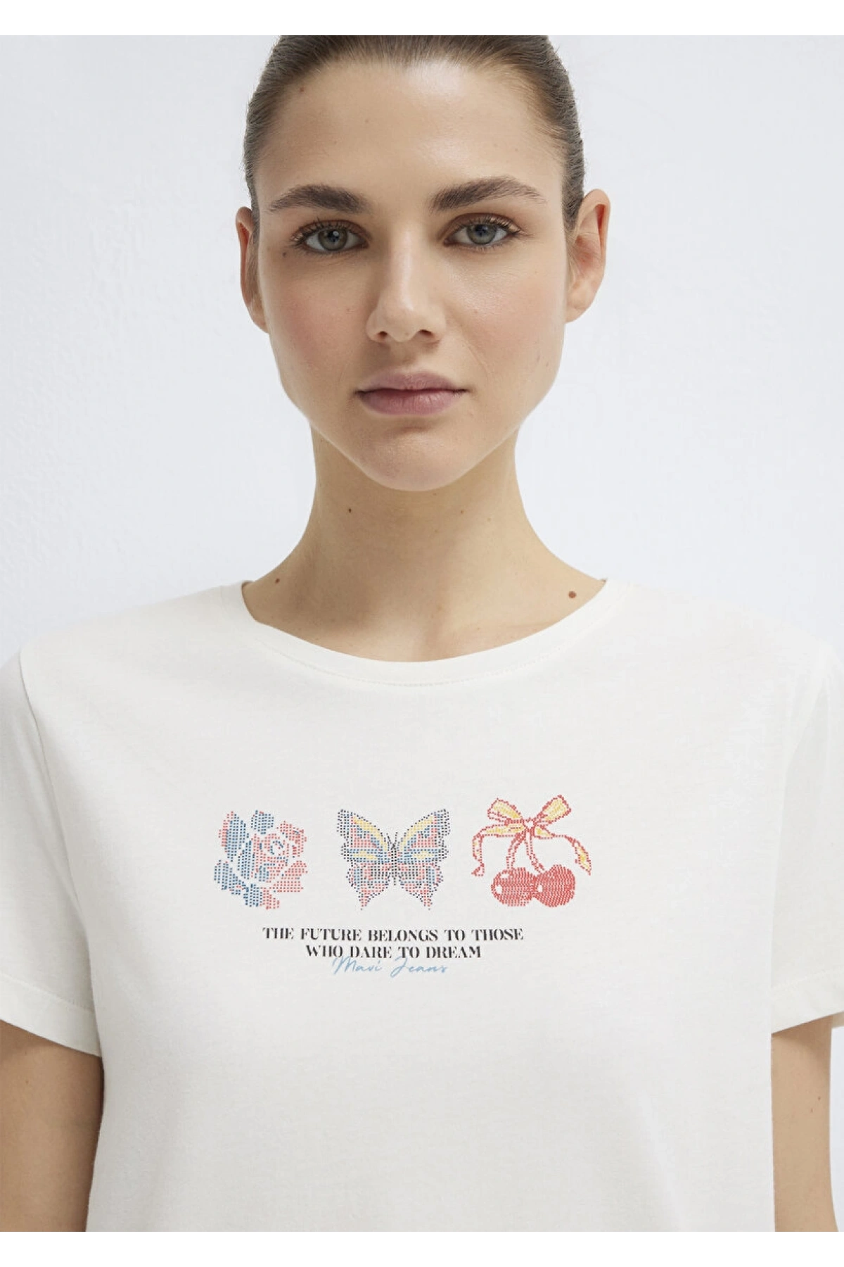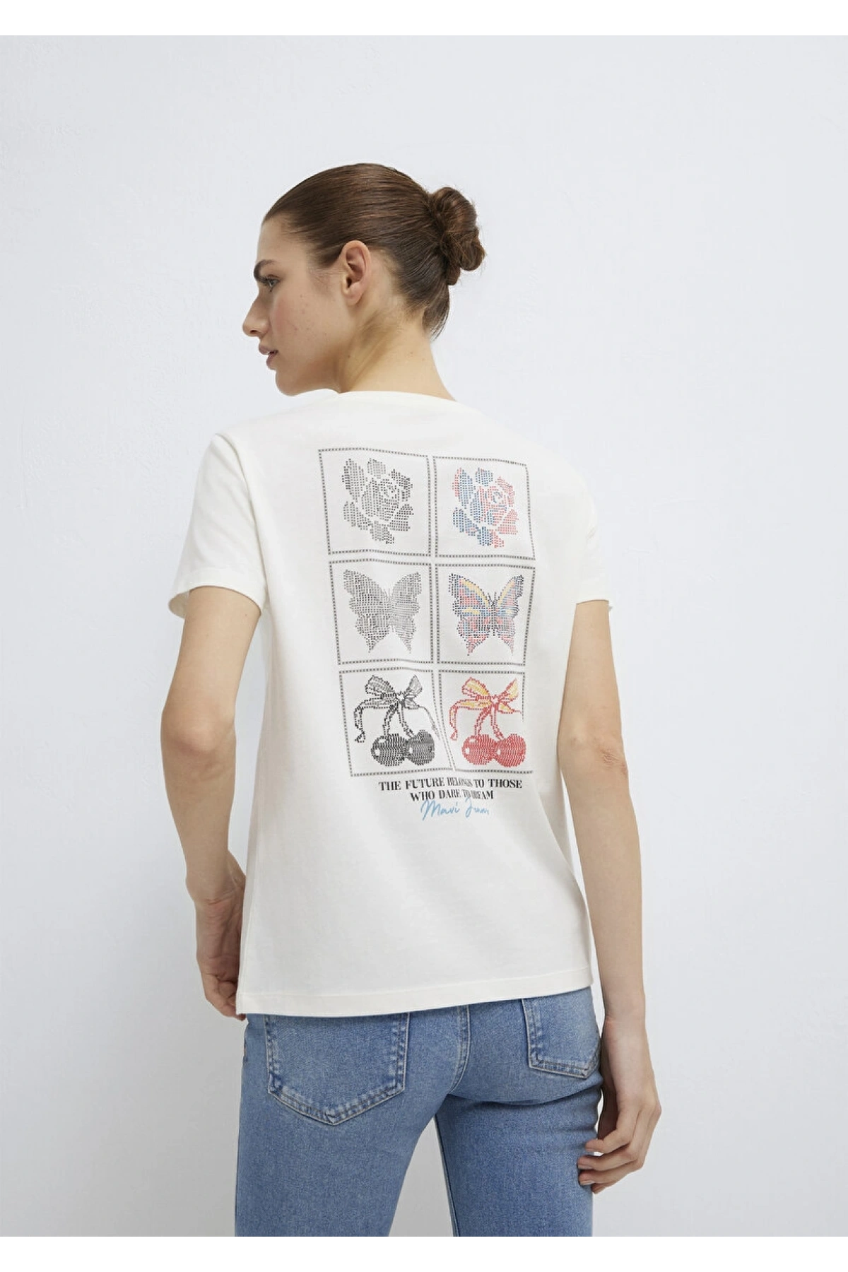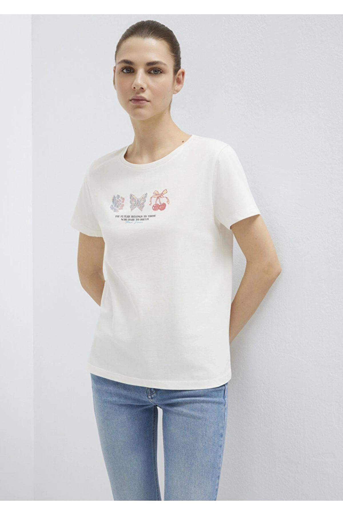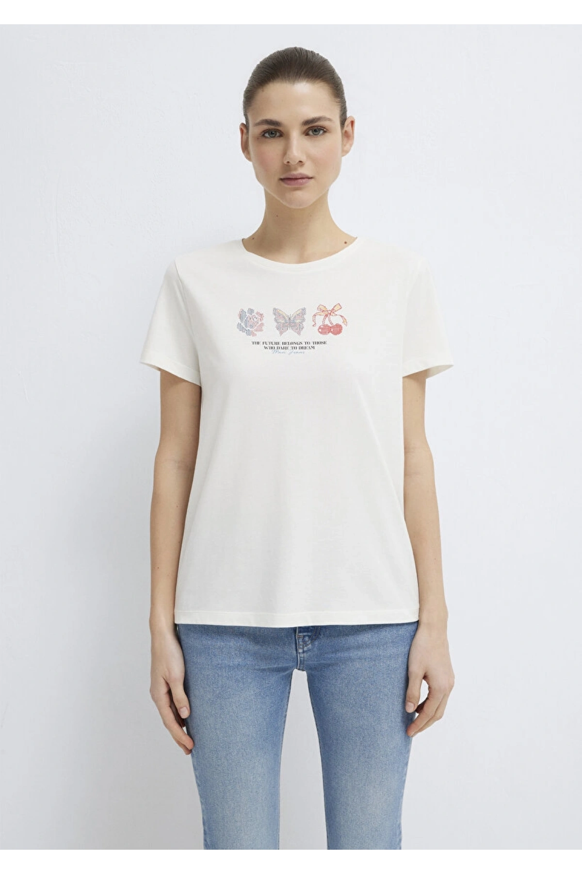 MAVİ Kelebek Baskılı Ekru Tişört