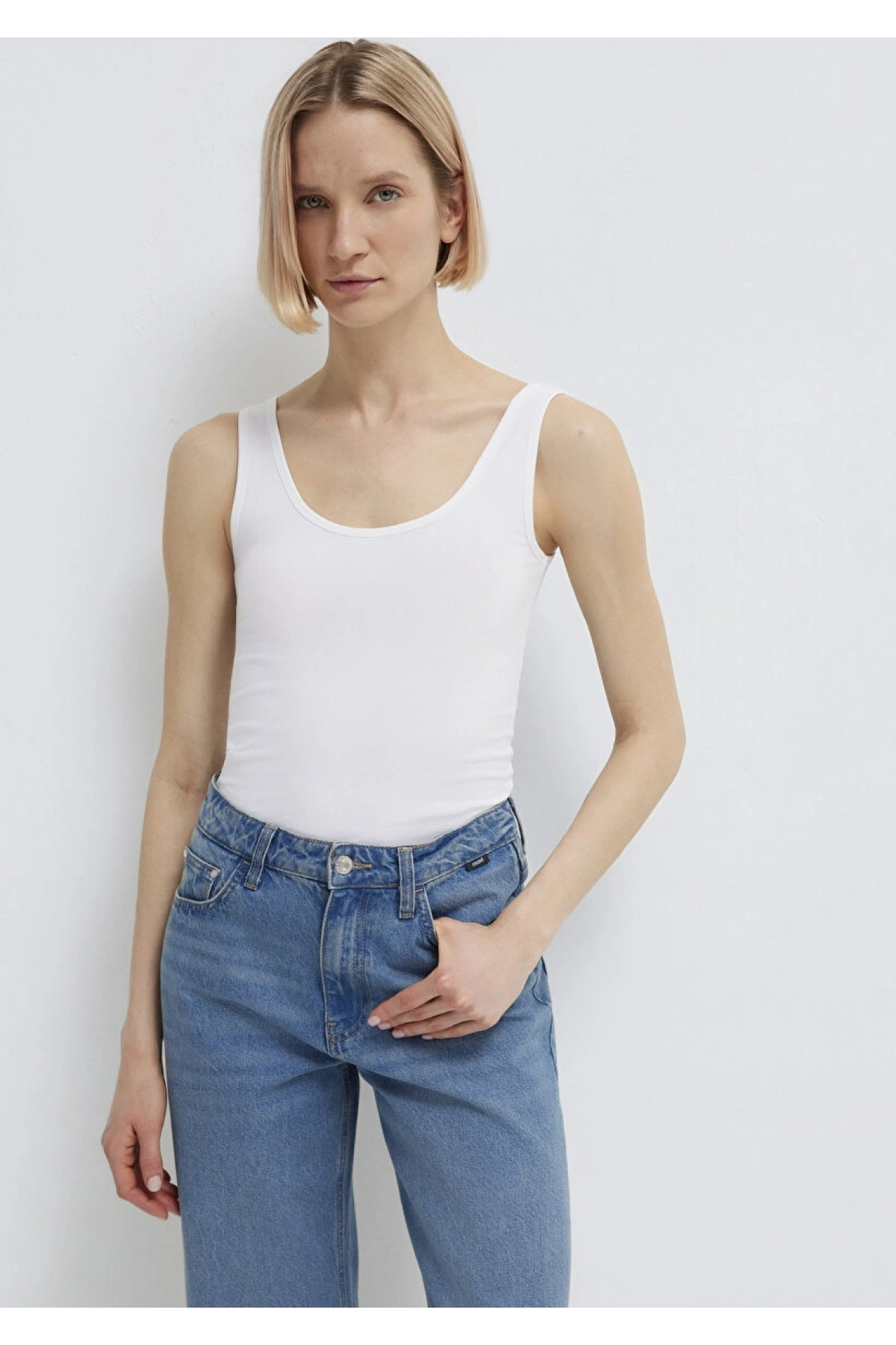 MAVİ ASKILI BASIC ATLET Beyaz