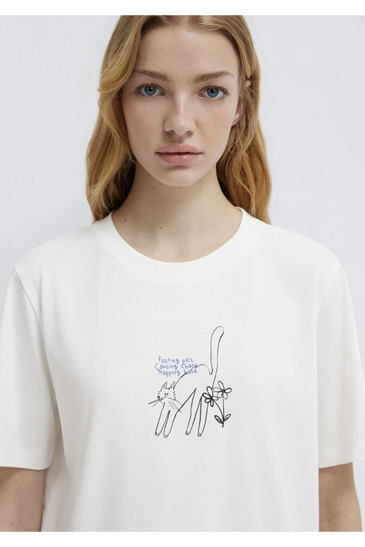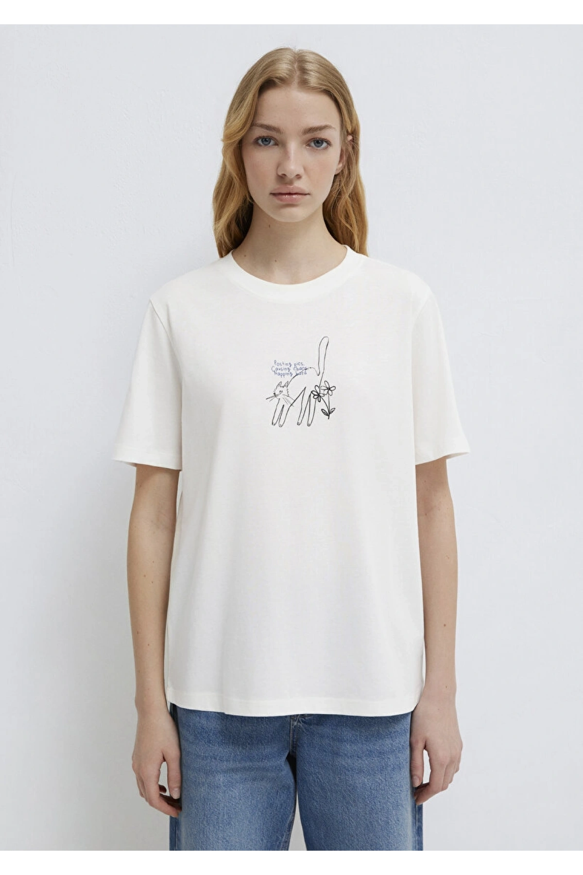 MAVİ KEDİ BASKILI TİŞÖRT Hindistan Ceviz