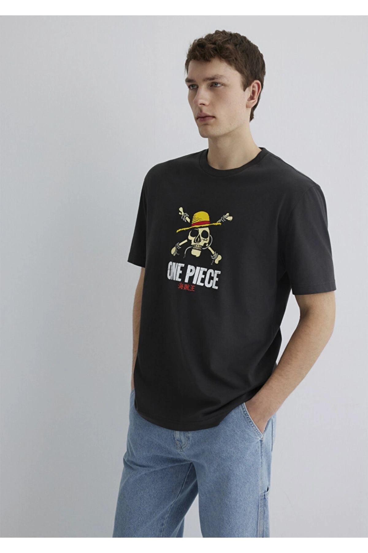 MAVİ One Piece Baskılı Antrasit Tişört