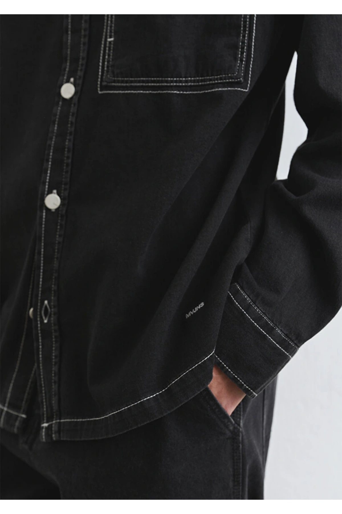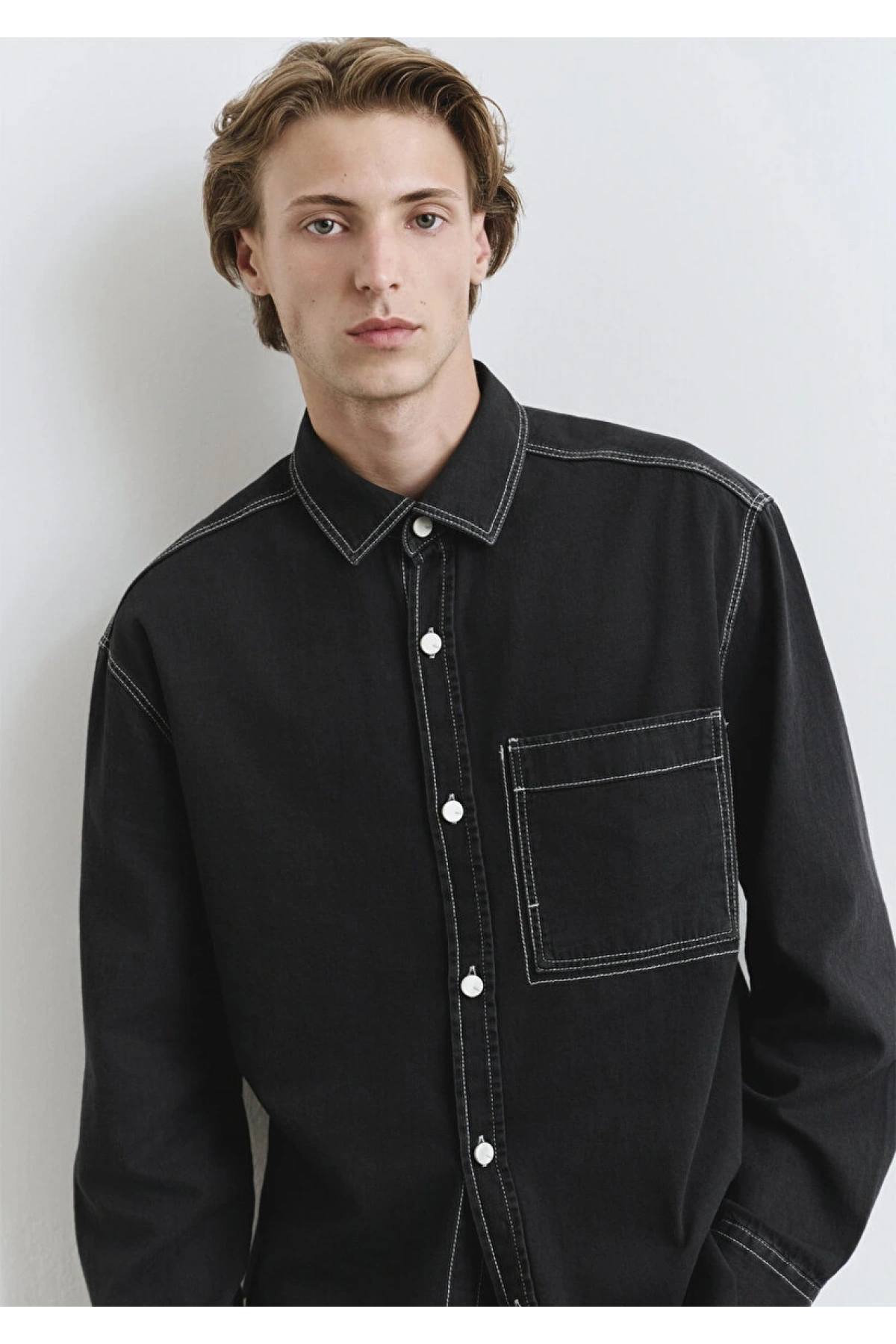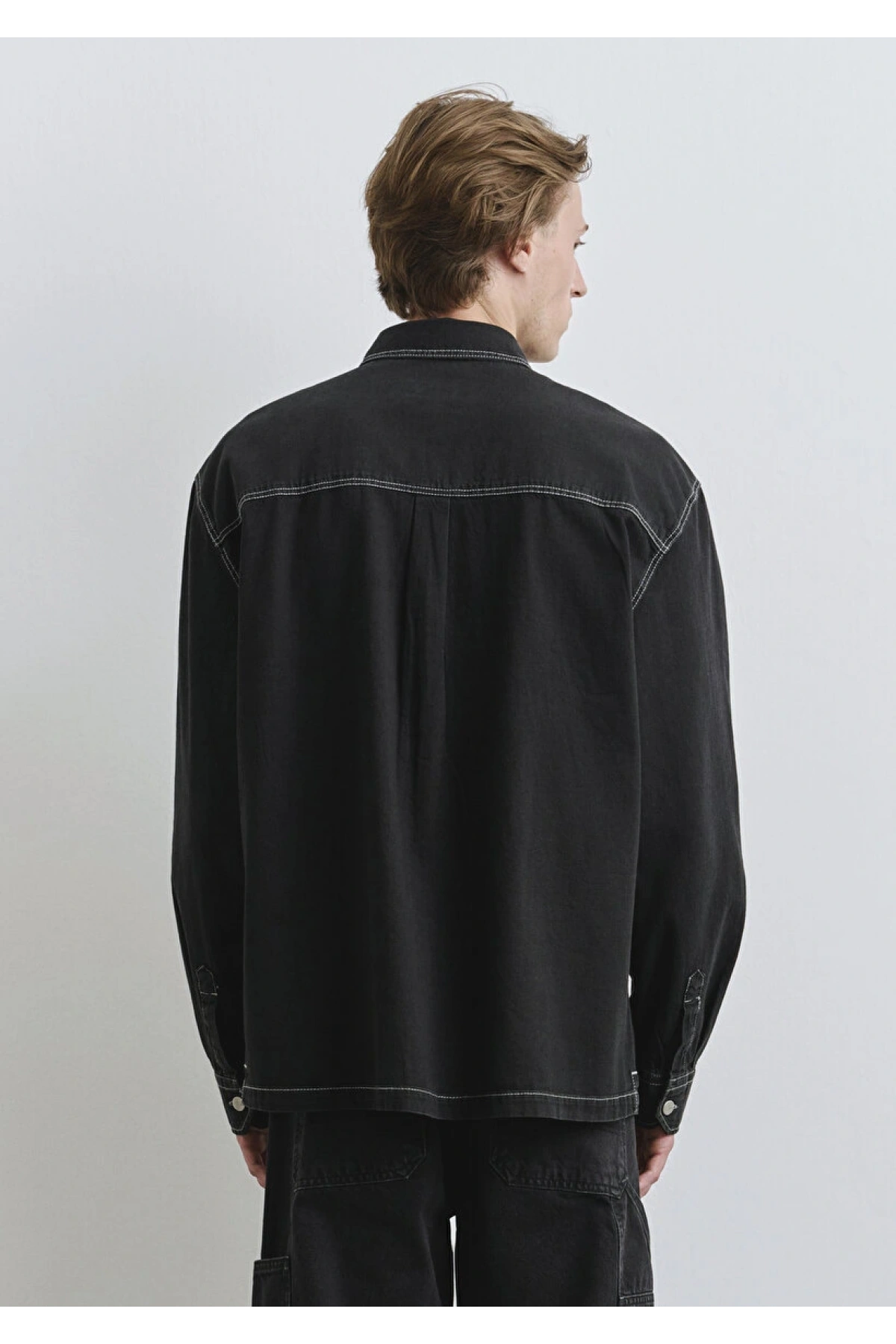 Dikiş Detaylı Siyah Gömlek