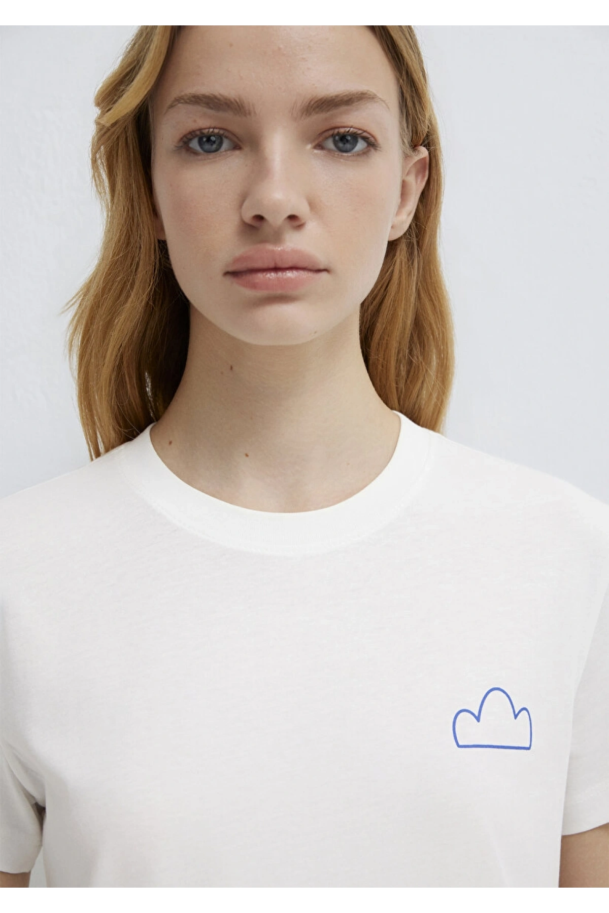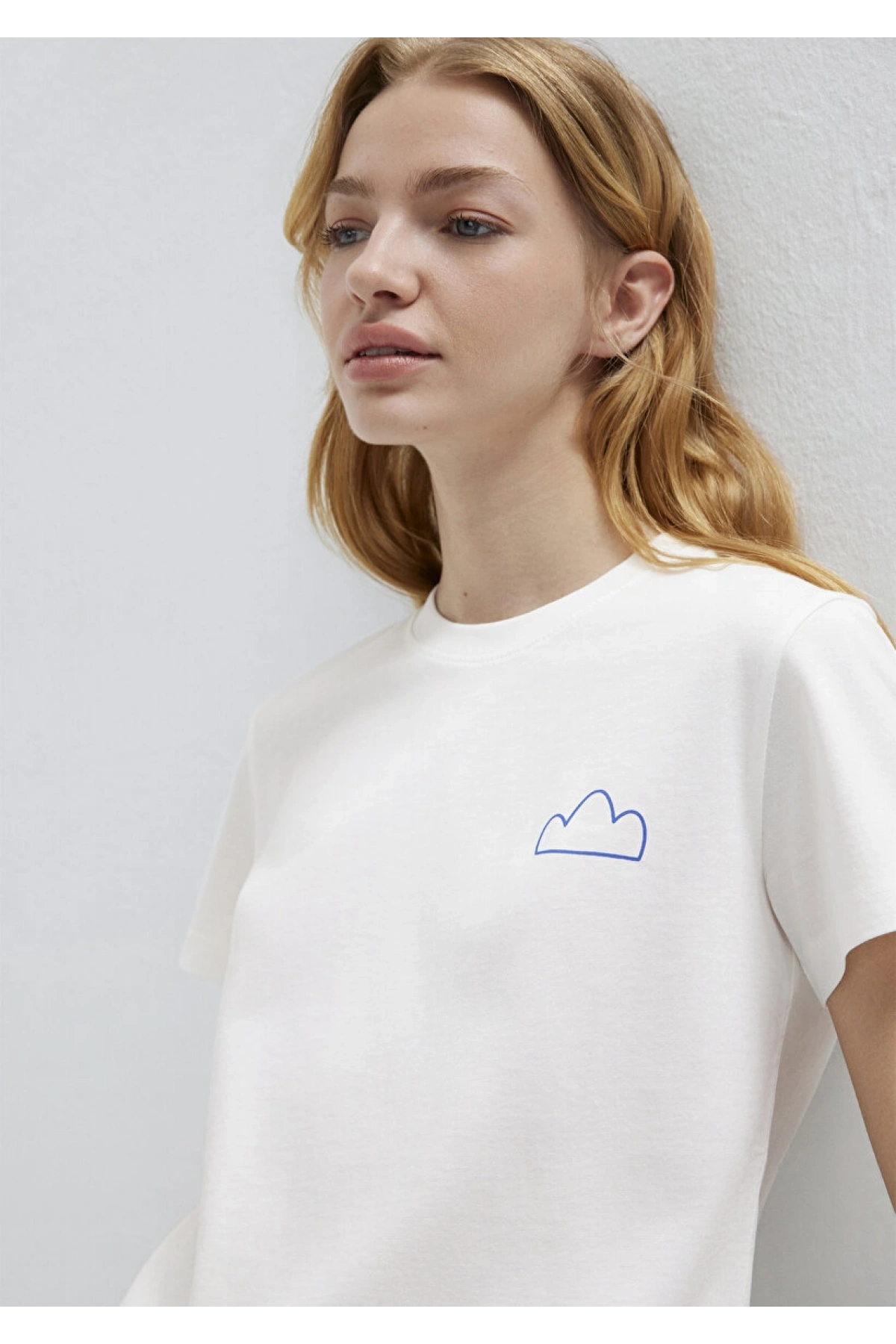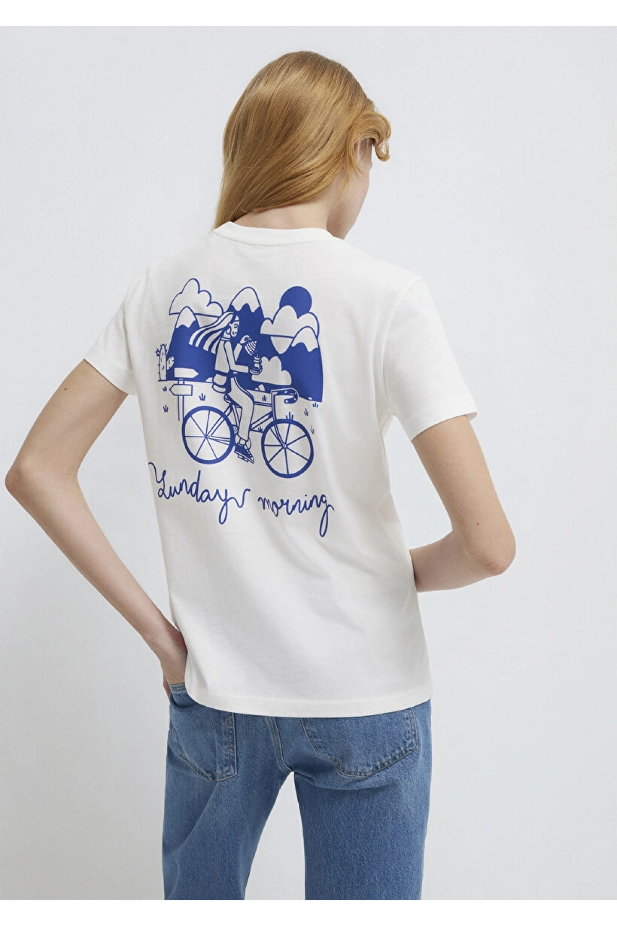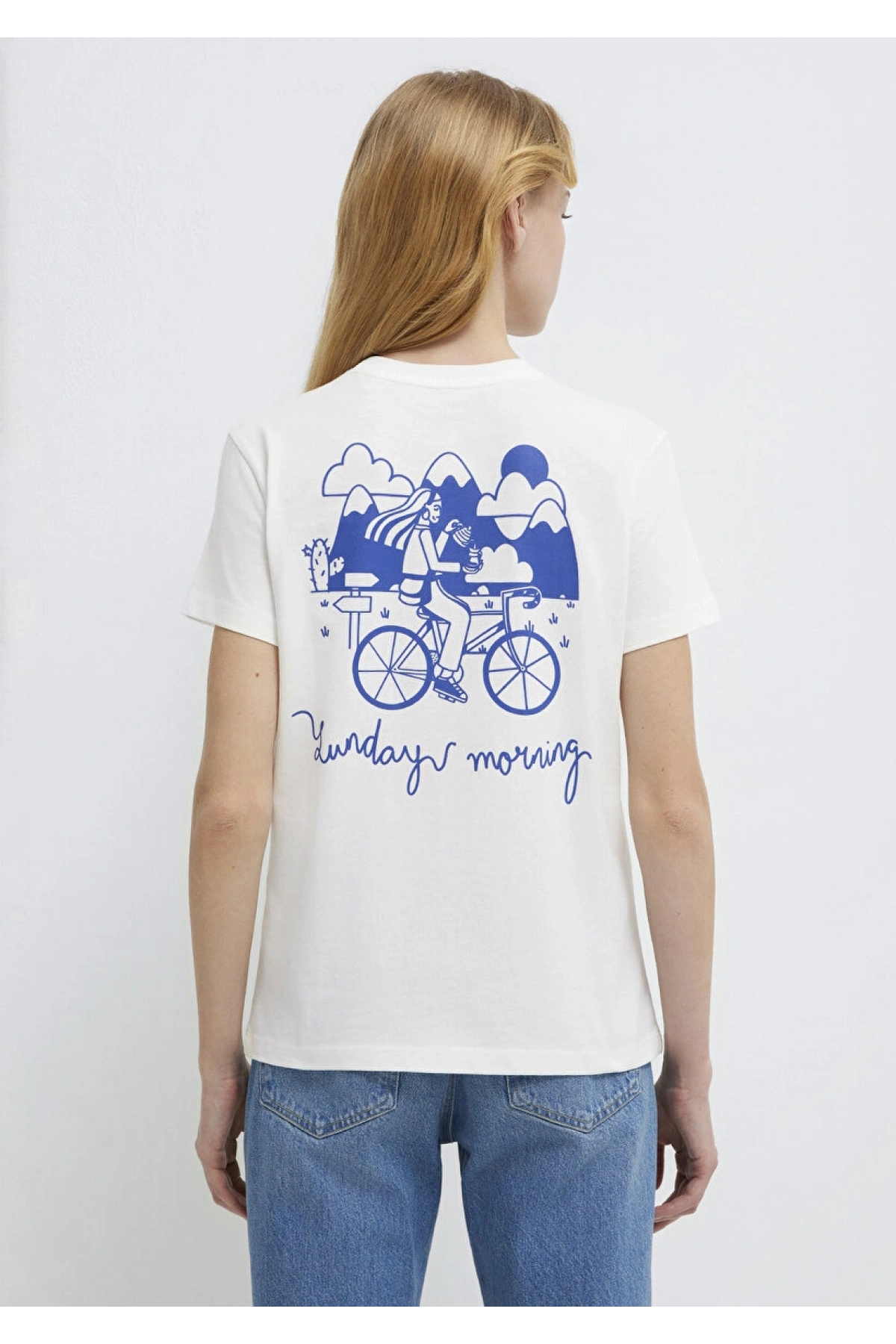 MAVİ KADIN BASKILI TİŞÖRT Kırık Beyaz