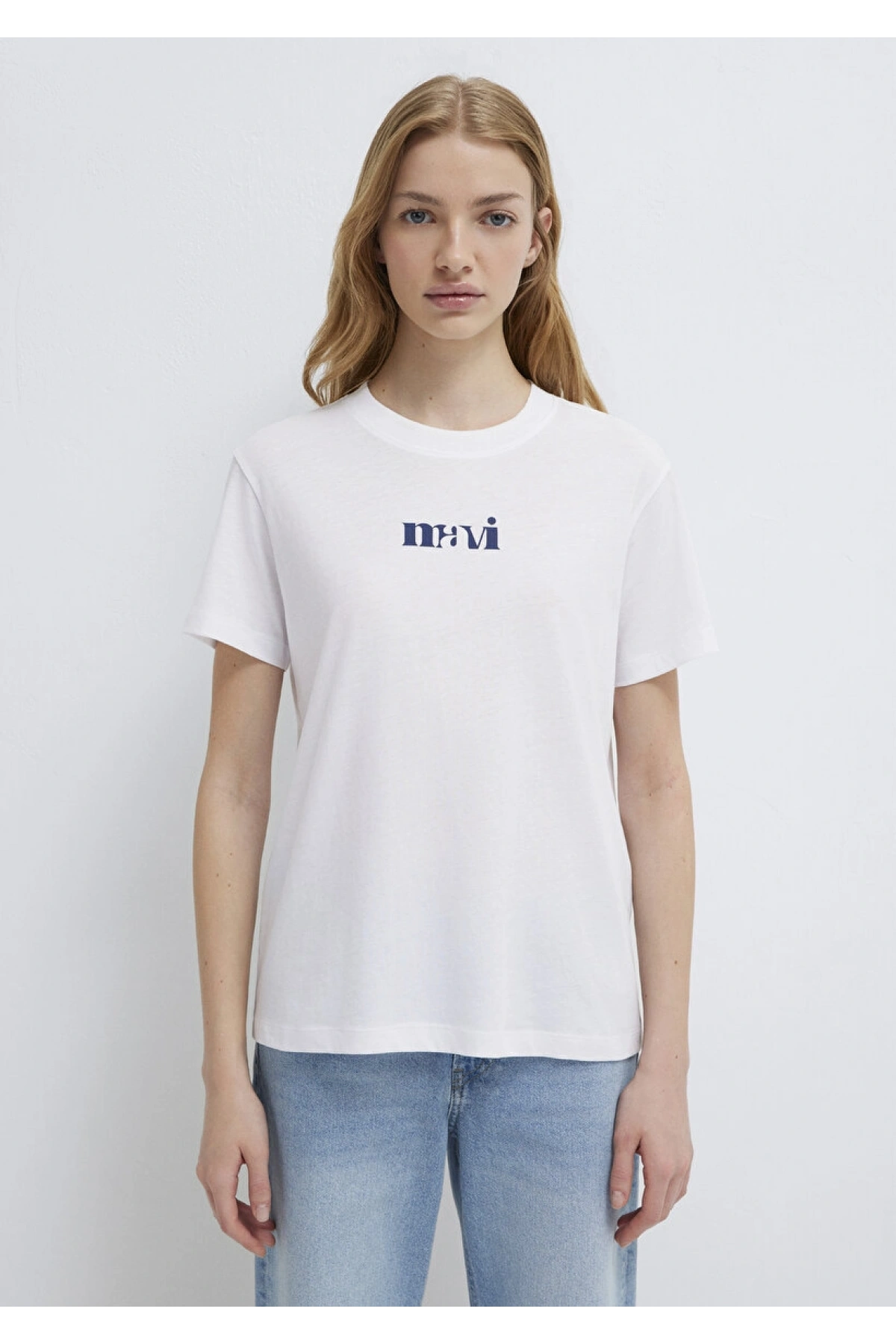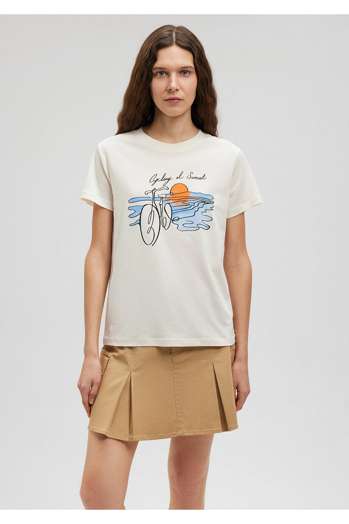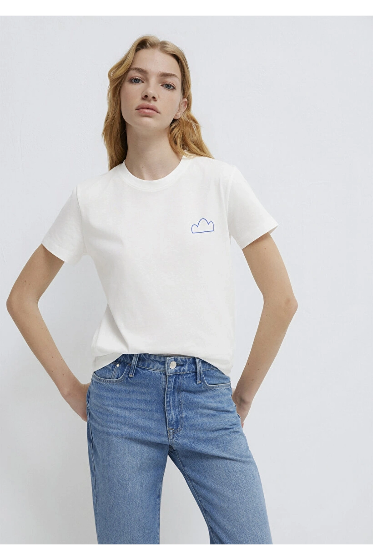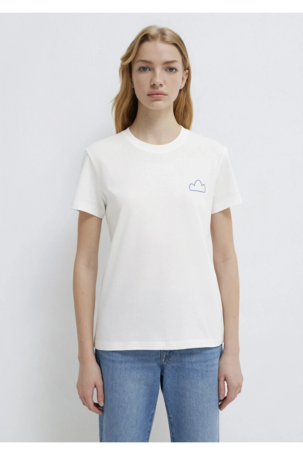 MAVİ KADIN BASKILI TİŞÖRT Kırık Beyaz