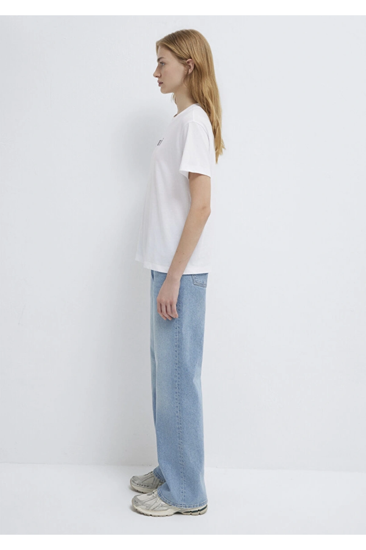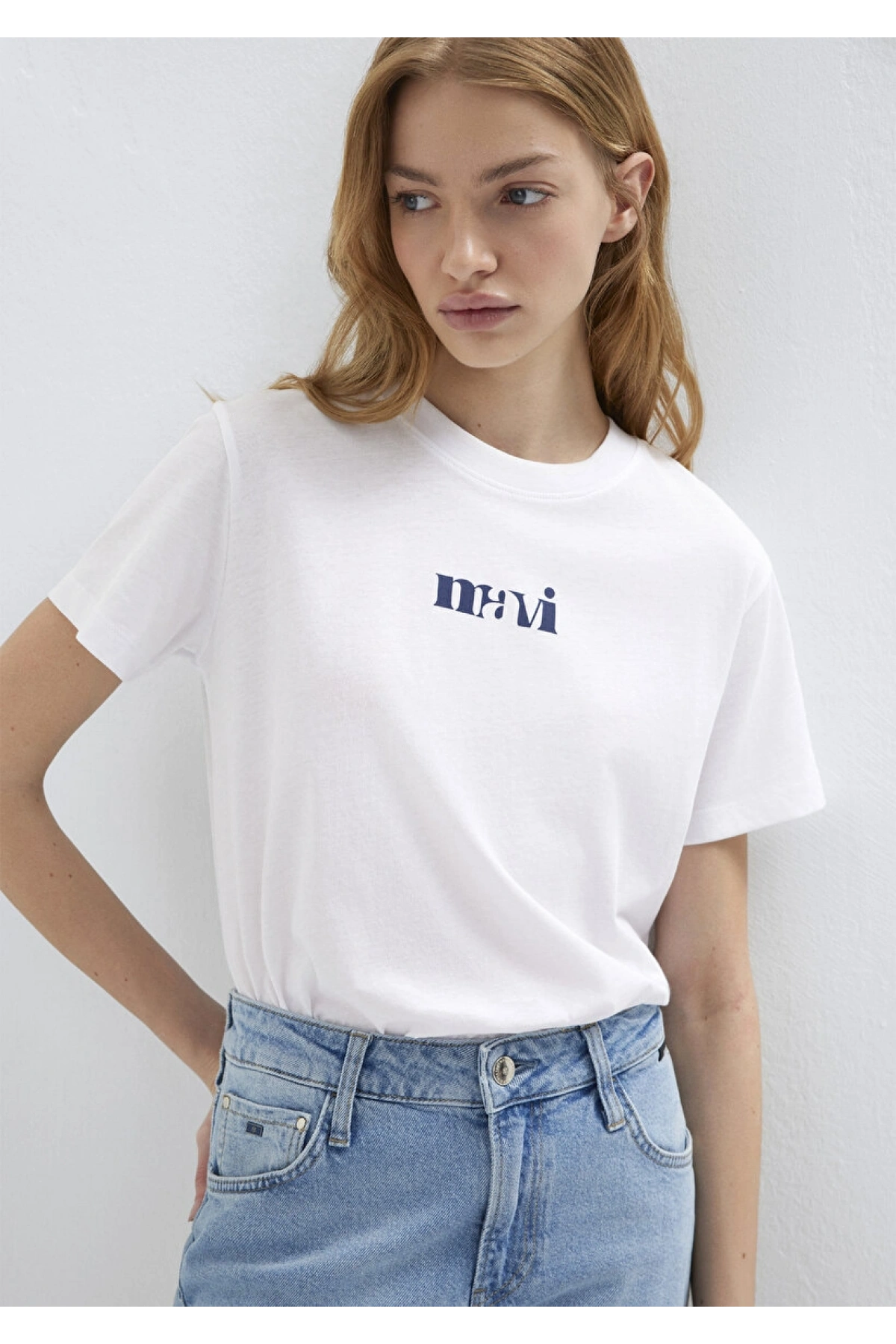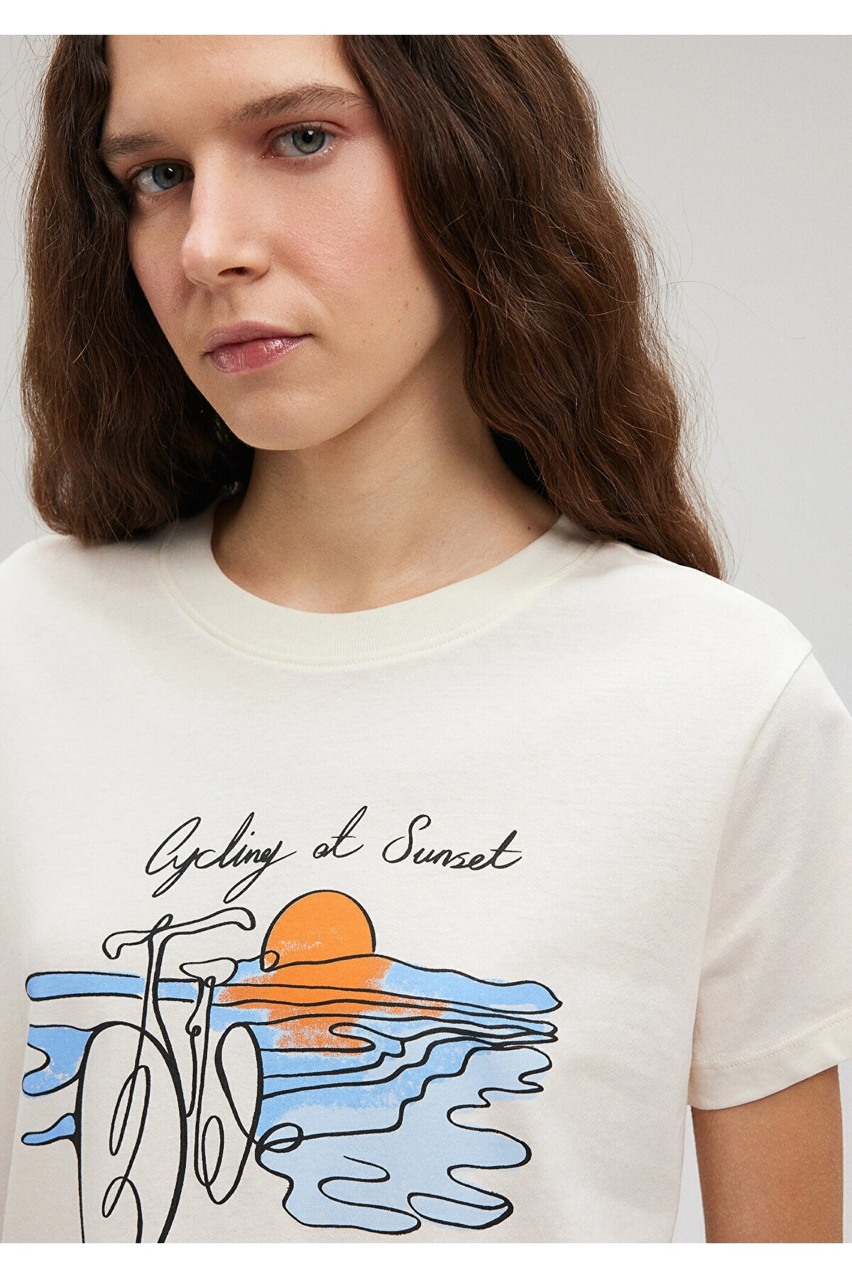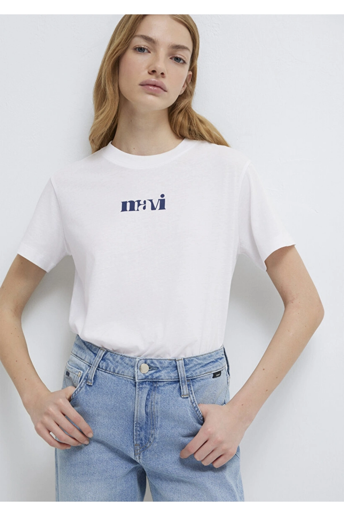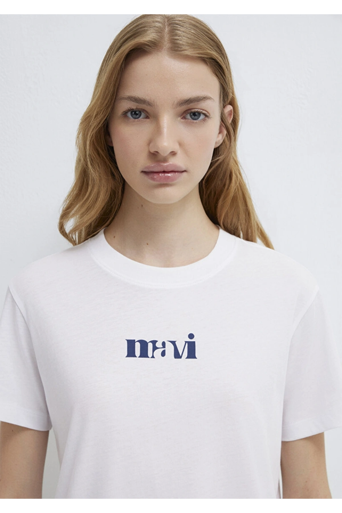 MAVİ KADIN BASKILI TİŞÖRT Kırık Beyaz