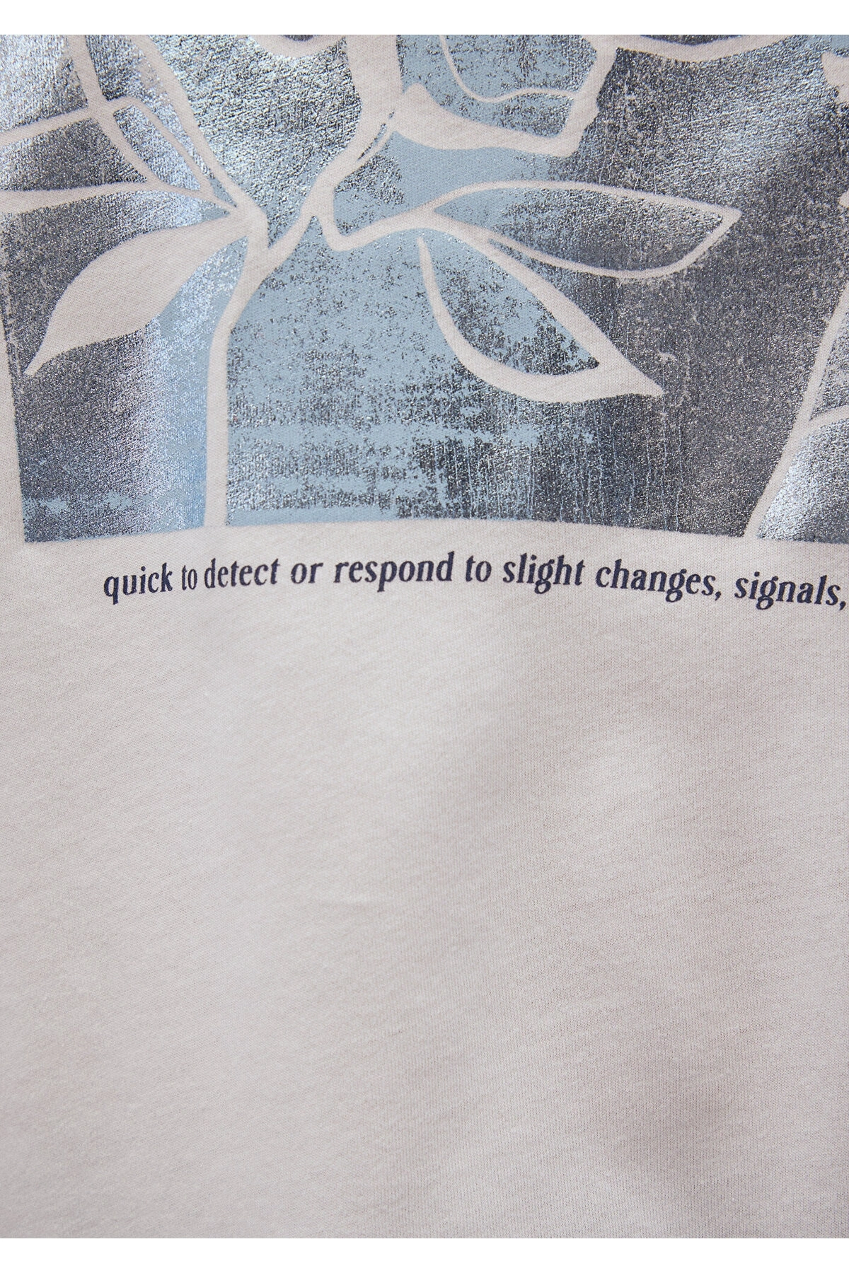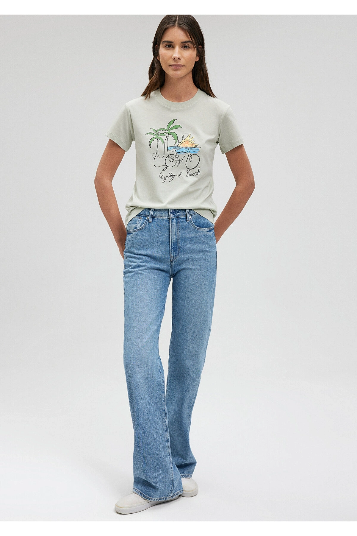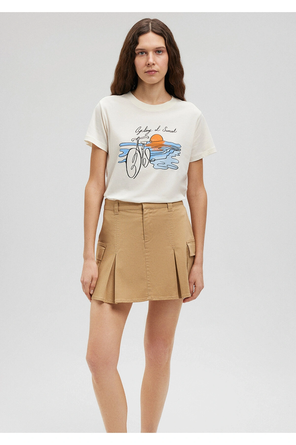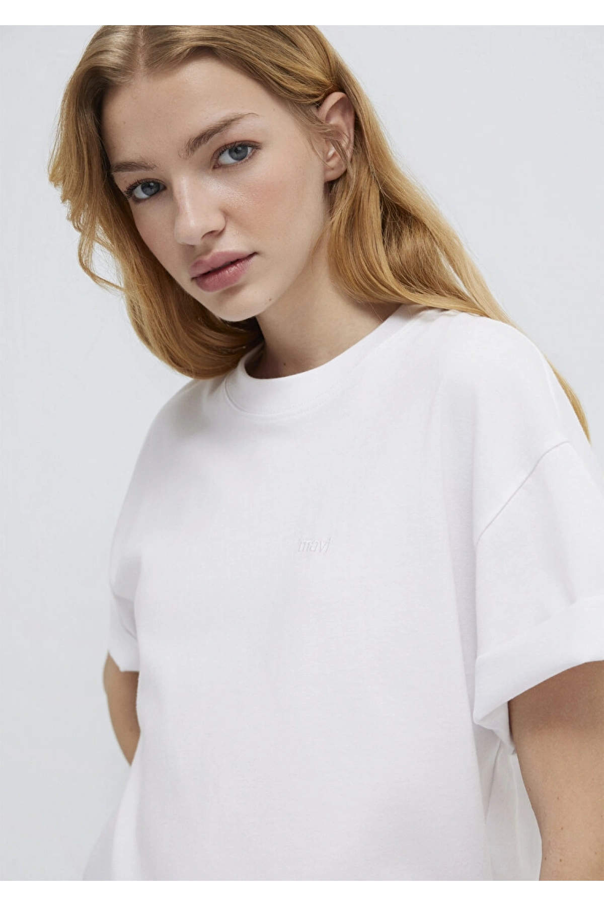 MAVİ KADIN BASKILI TİŞÖRT Kırık Beyaz