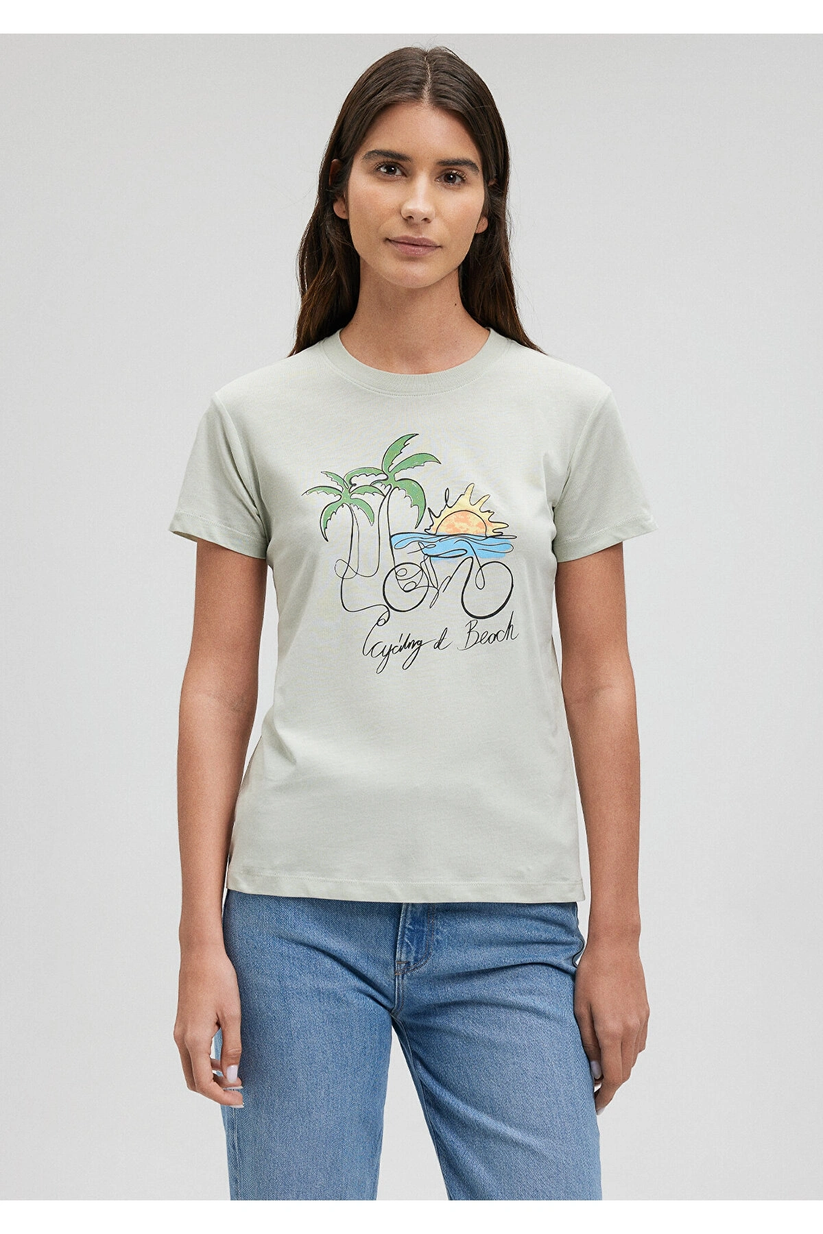 Mavi Bisiklet Baskılı Yeşil Tişört Slim Fit / Dar Kesim