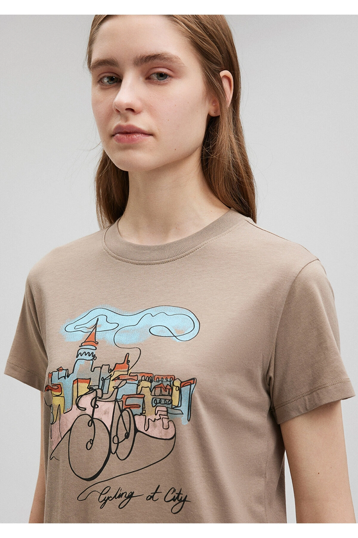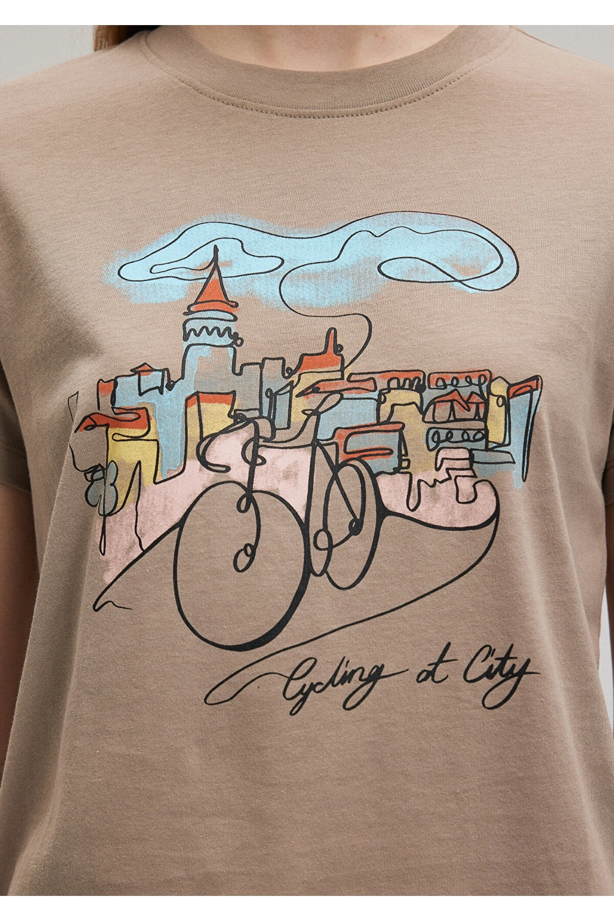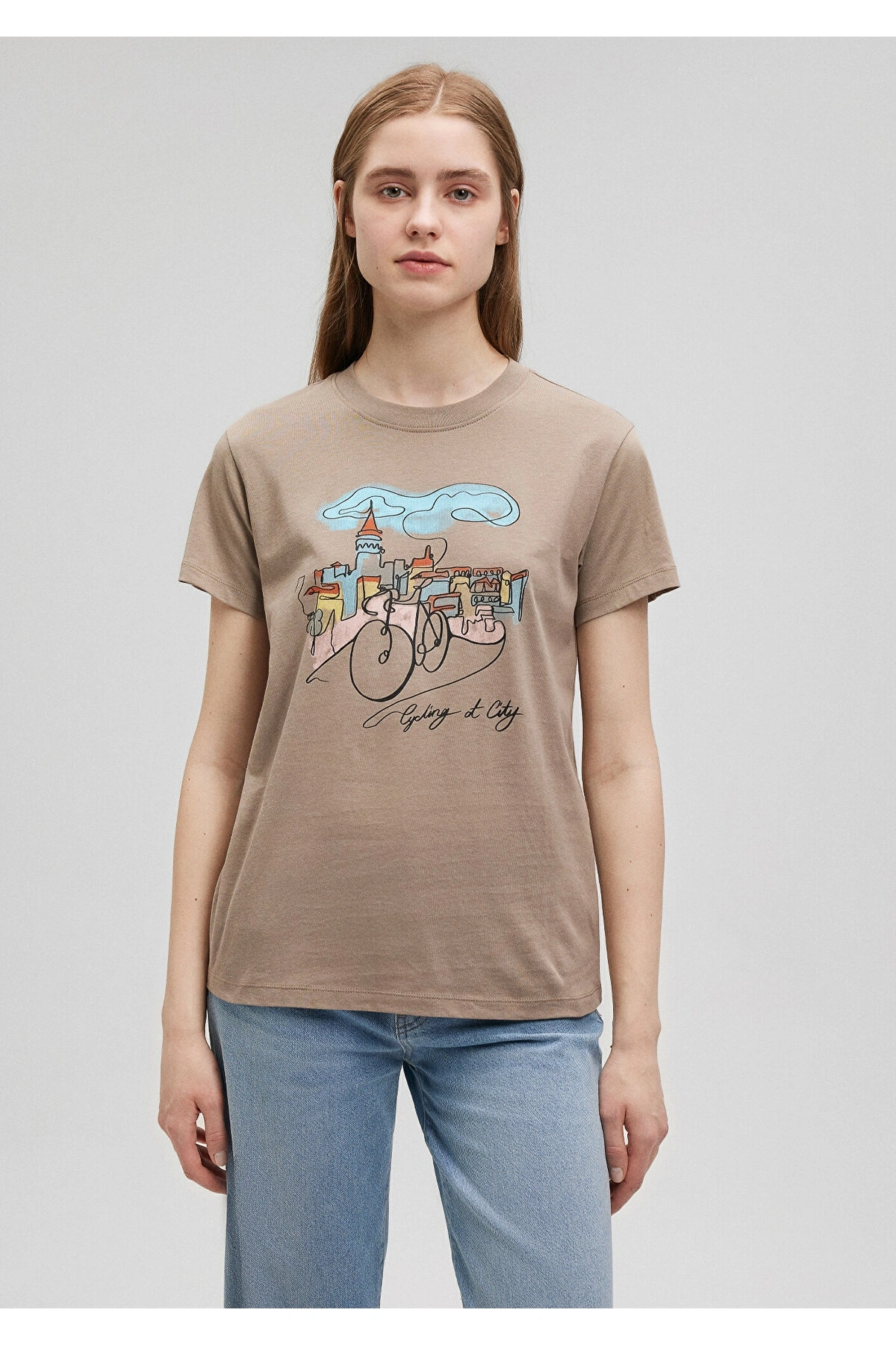 Mavi Bisiklet Baskılı Kahverengi Tişört Slim Fit / Dar Kesim