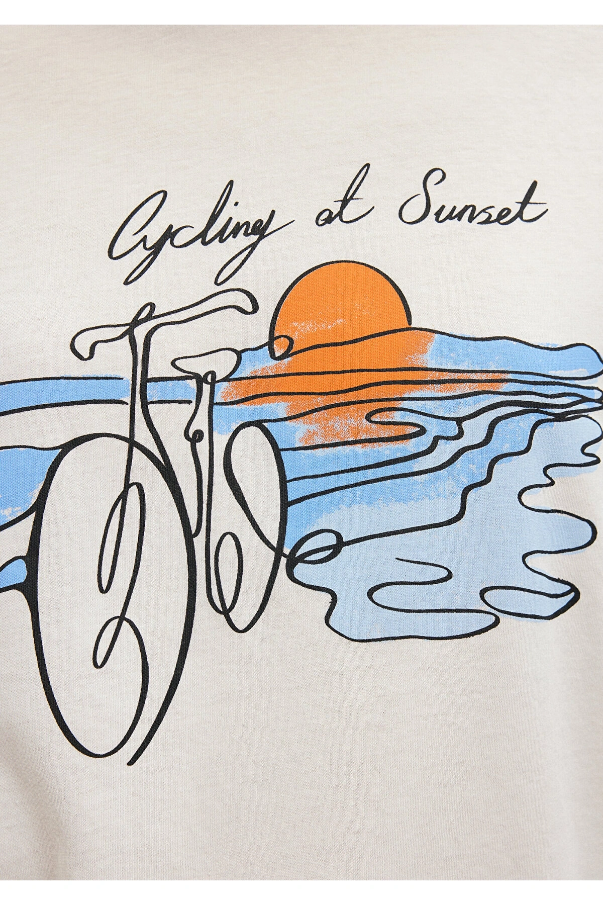 Mavi Bisiklet Baskılı Beyaz Tişört Slim Fit / Dar Kesim