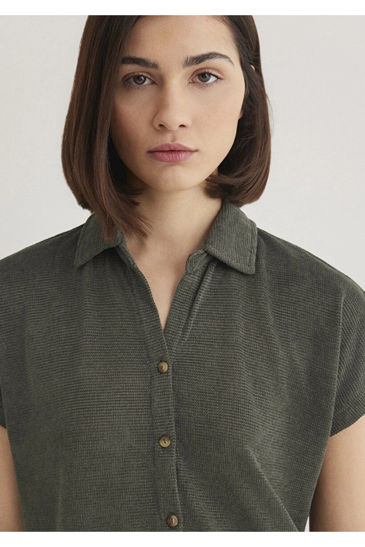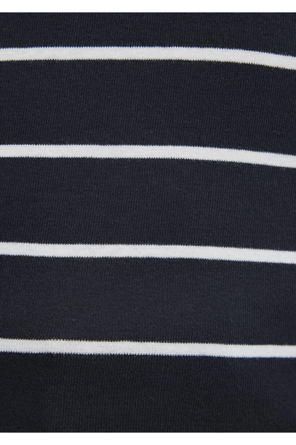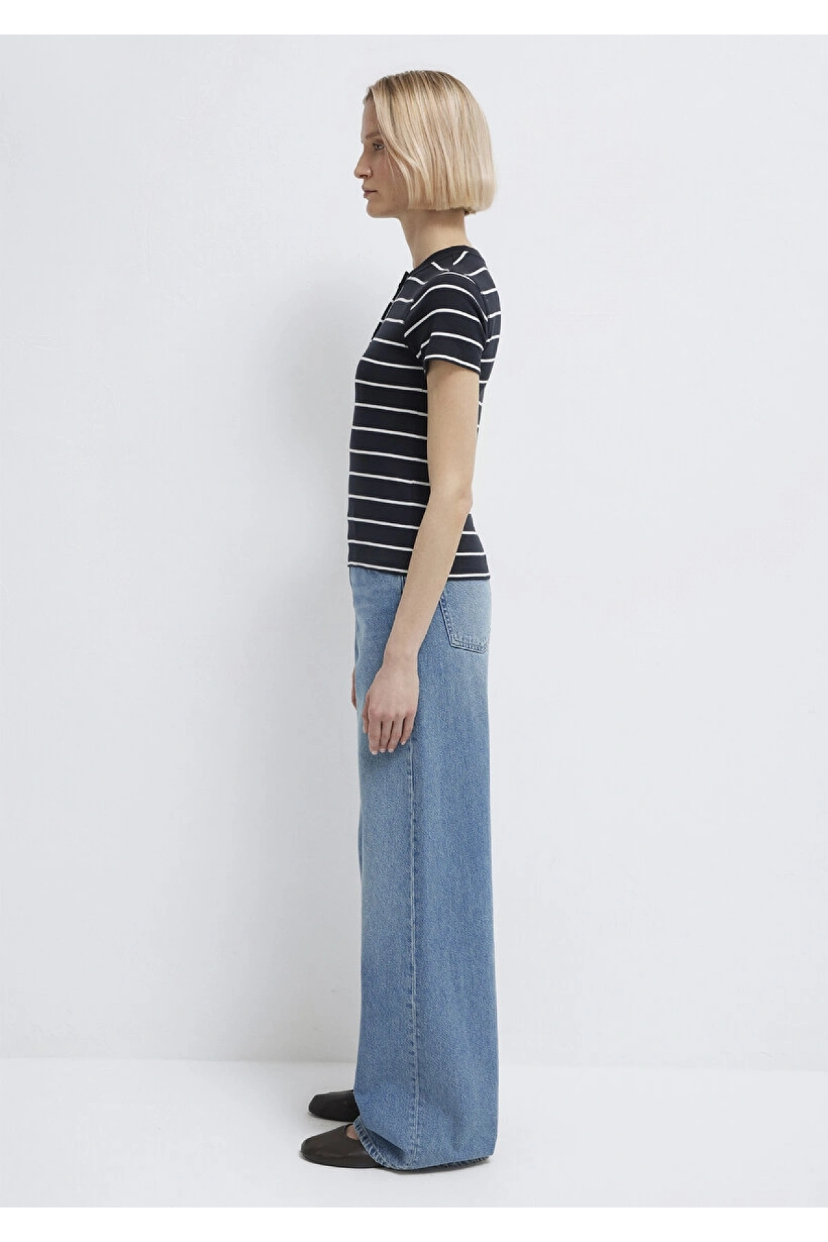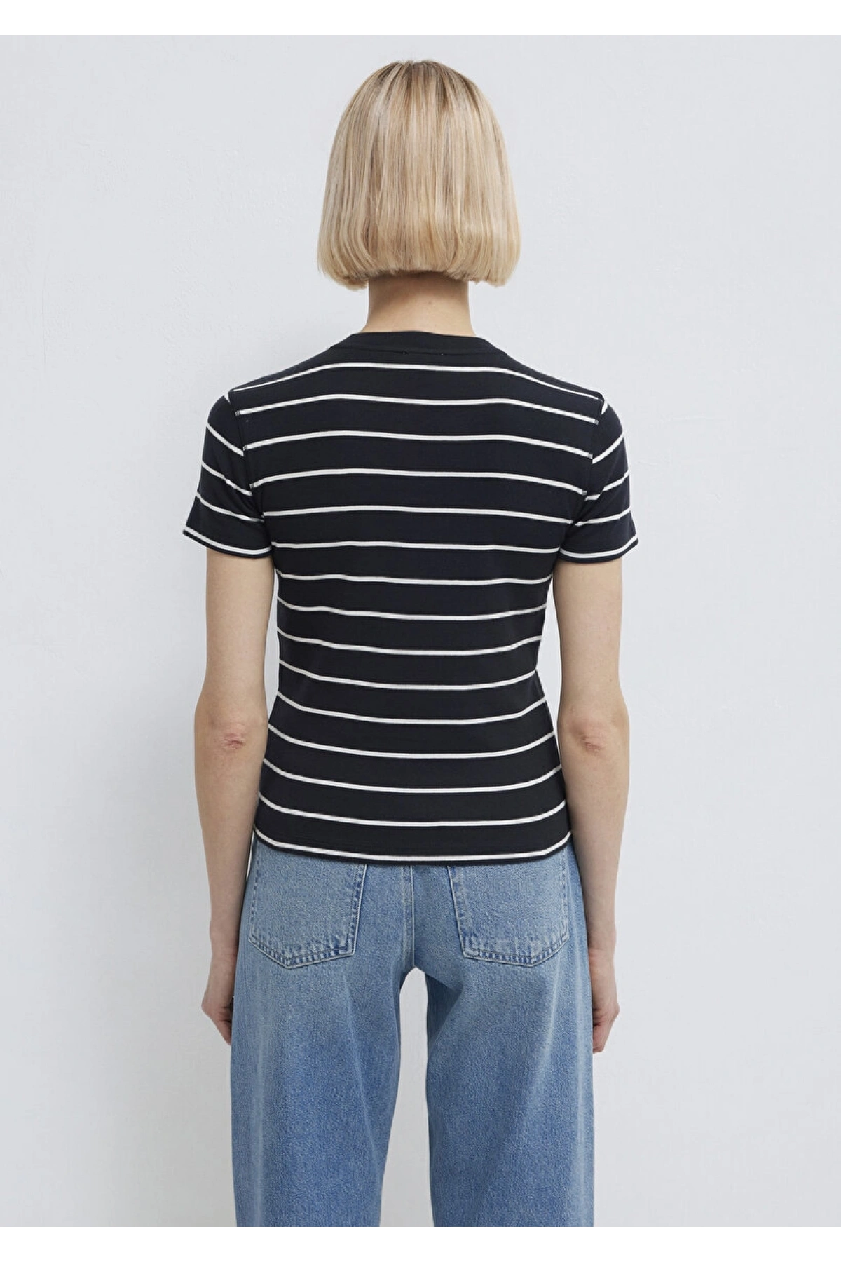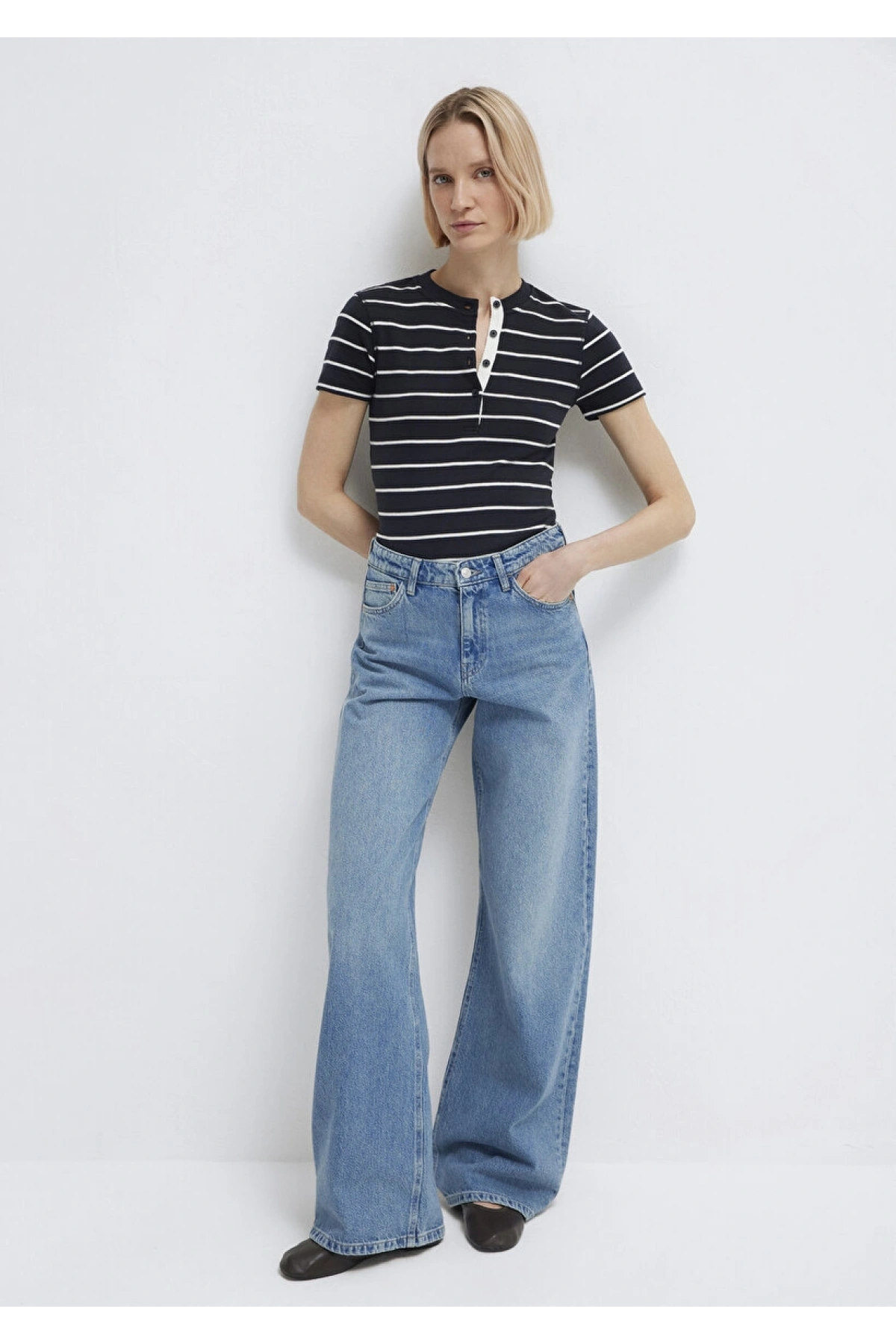 MAVİ Yarı Düğmeli Çizgili Lacivert Tişört