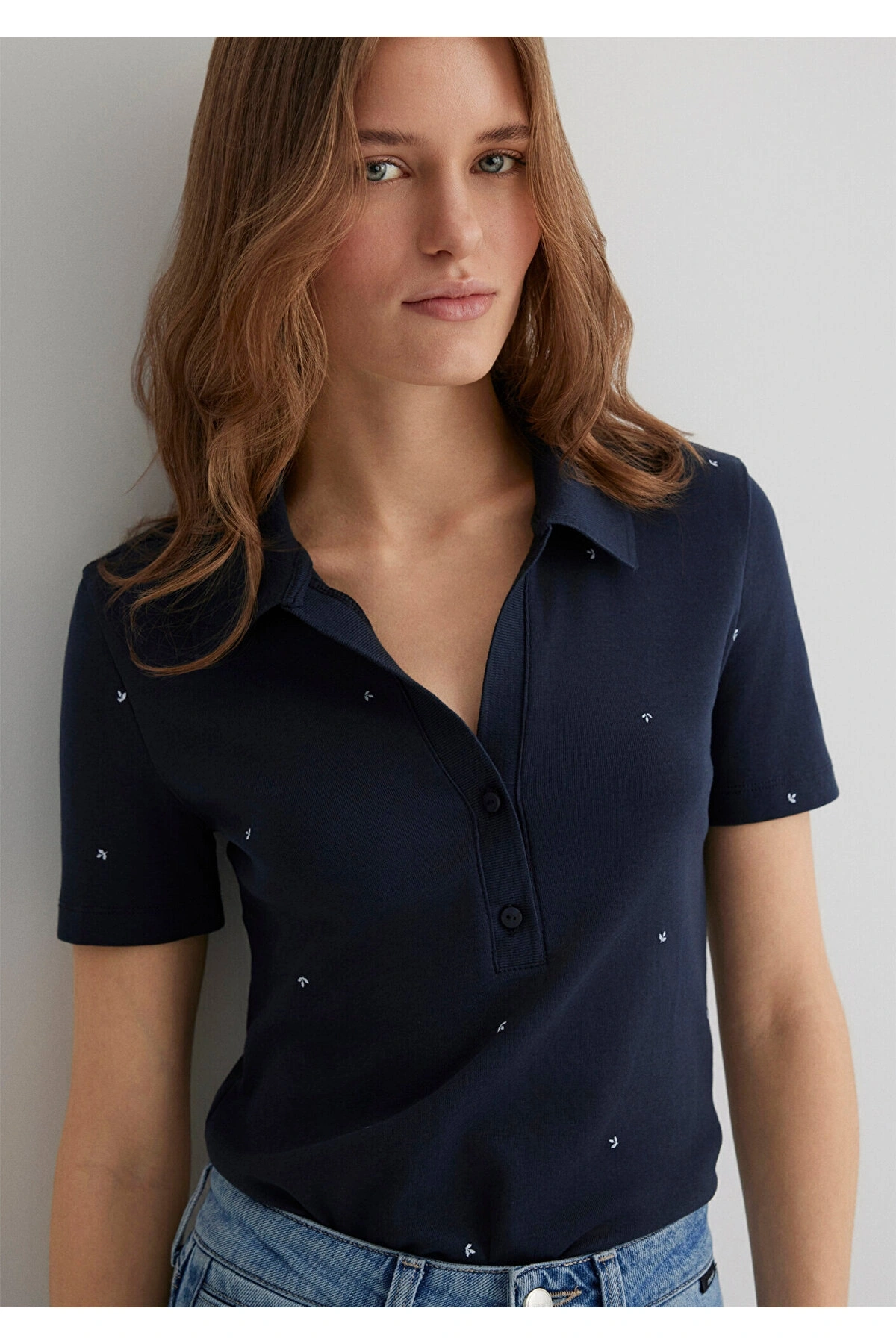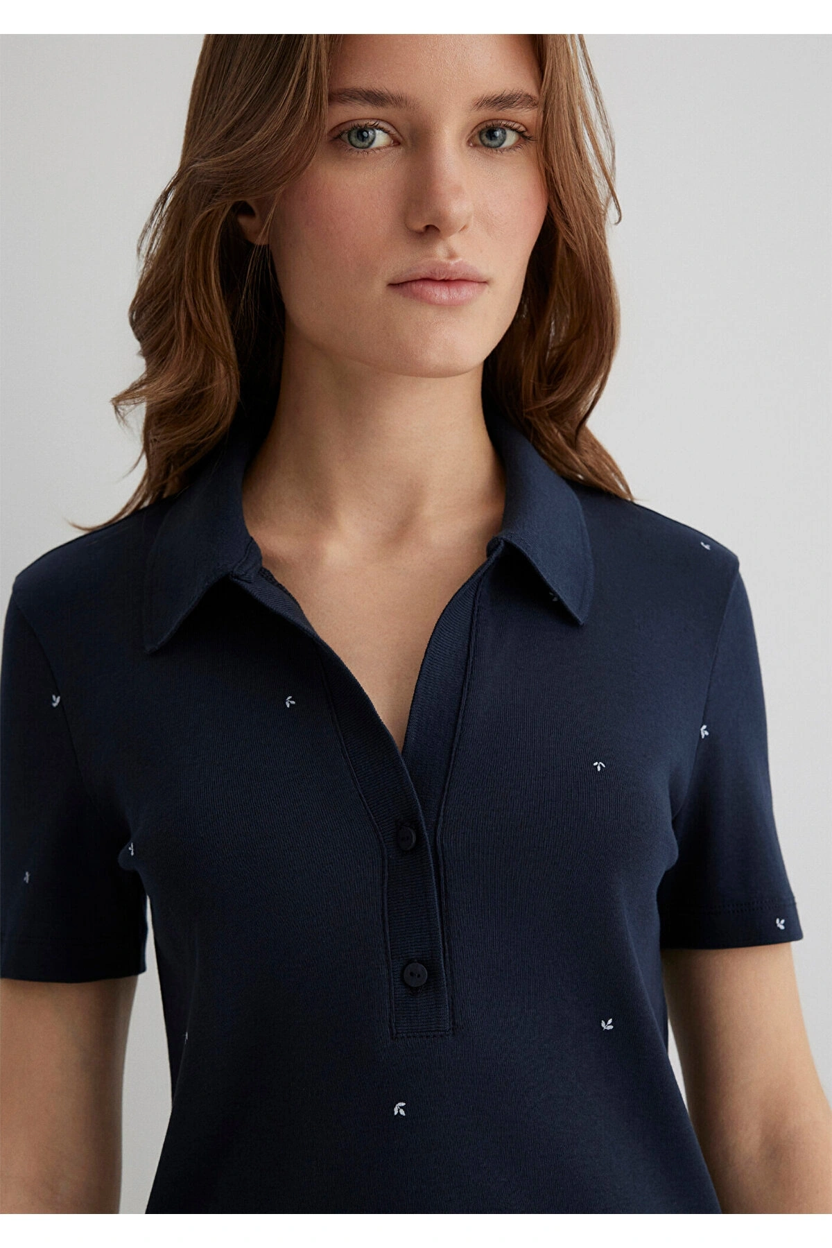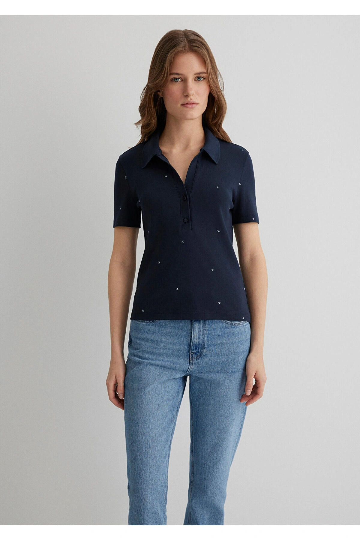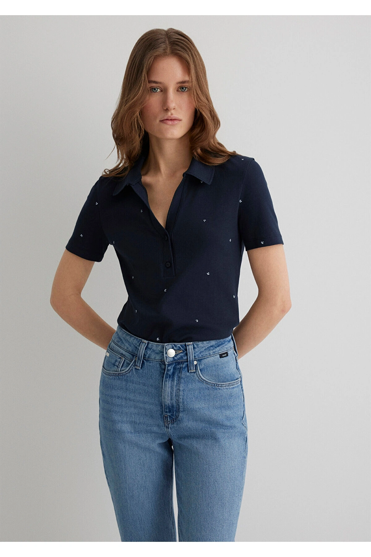 Mavi Mini Baskılı Lacivert Polo Tişört Fitted / Vücuda Oturan Kesim