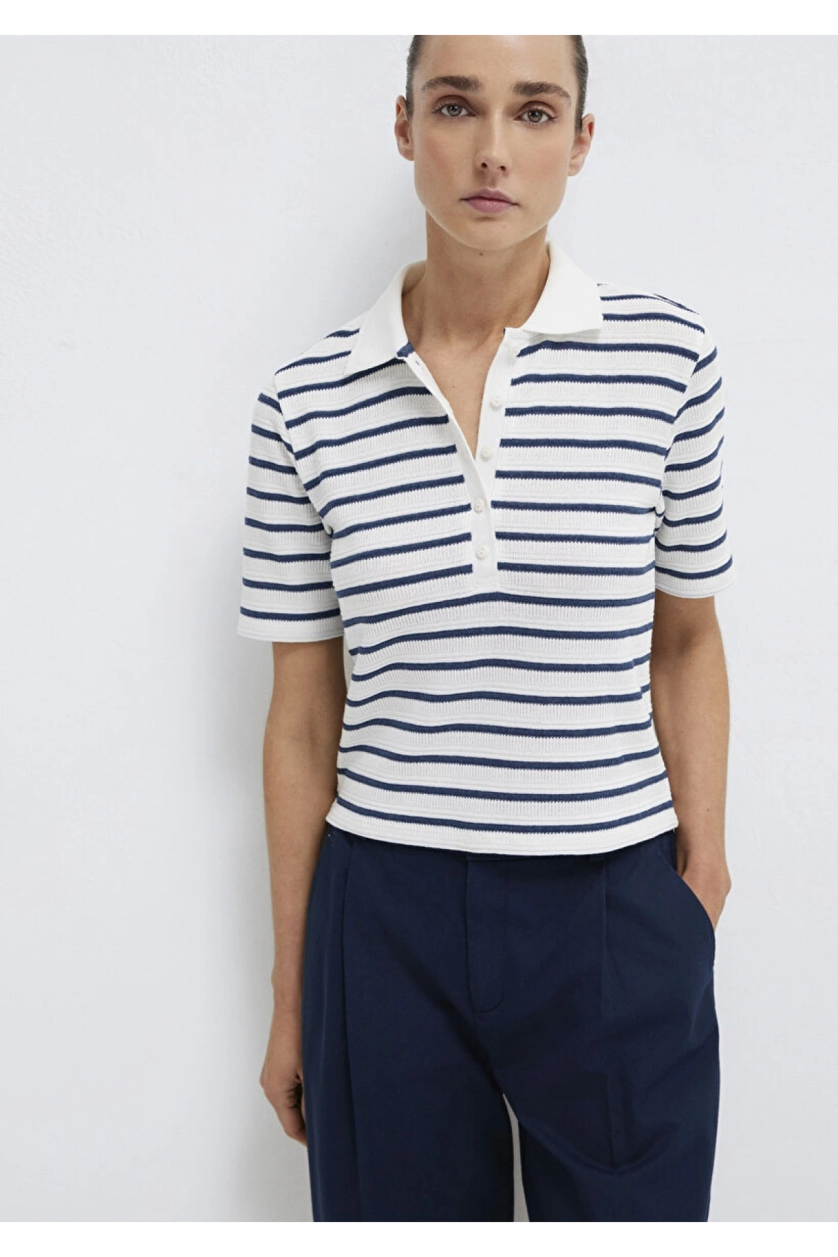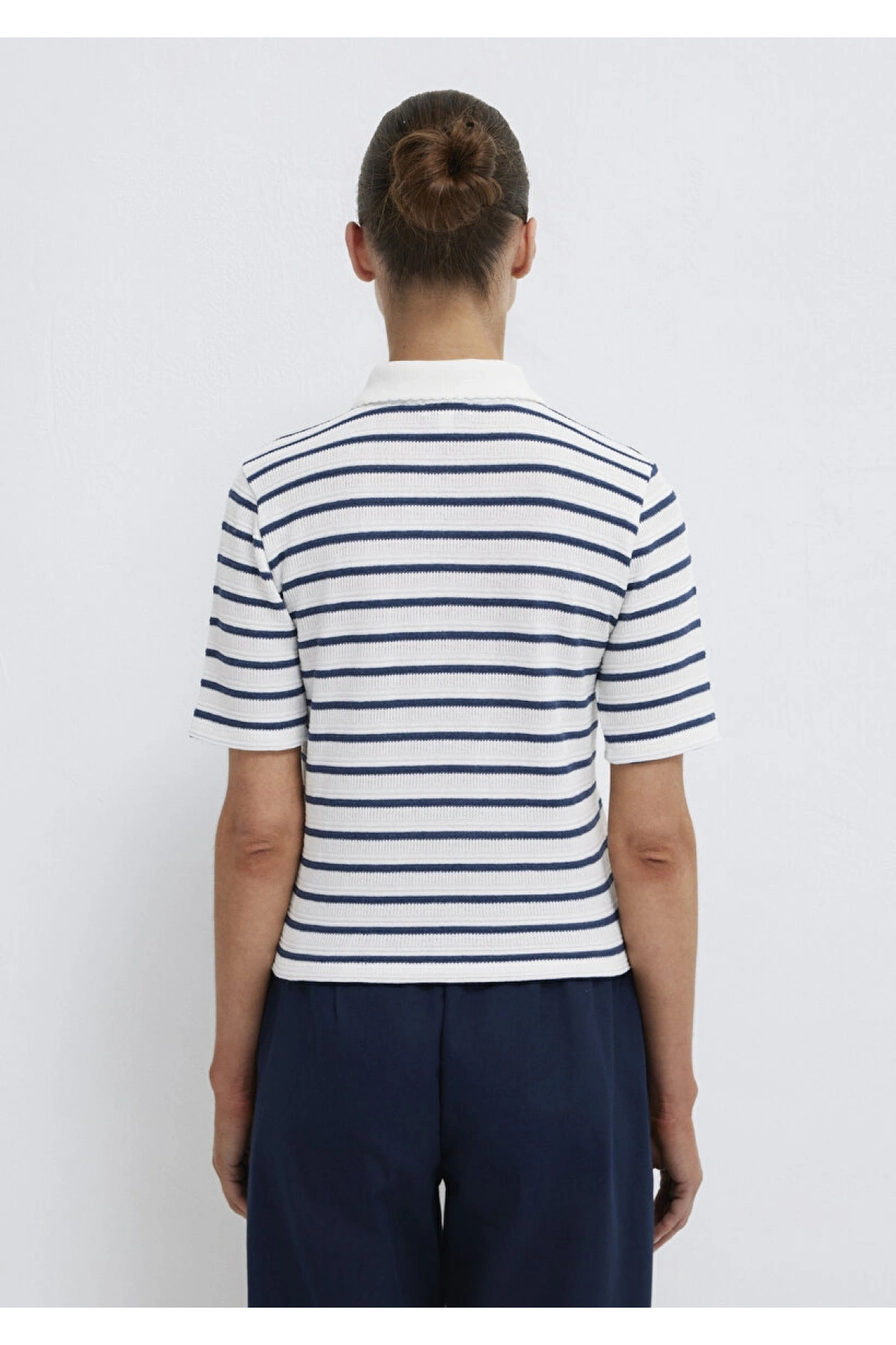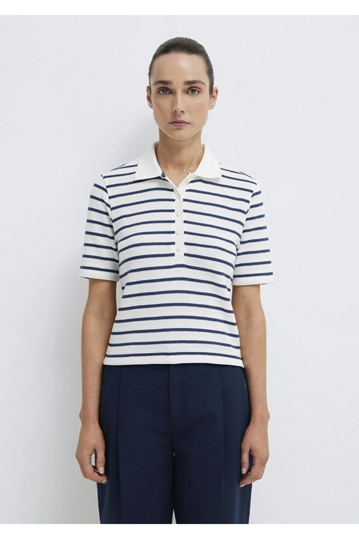 MAVİ Lacivert Çizgi Dokulu Beyaz Polo Tişört