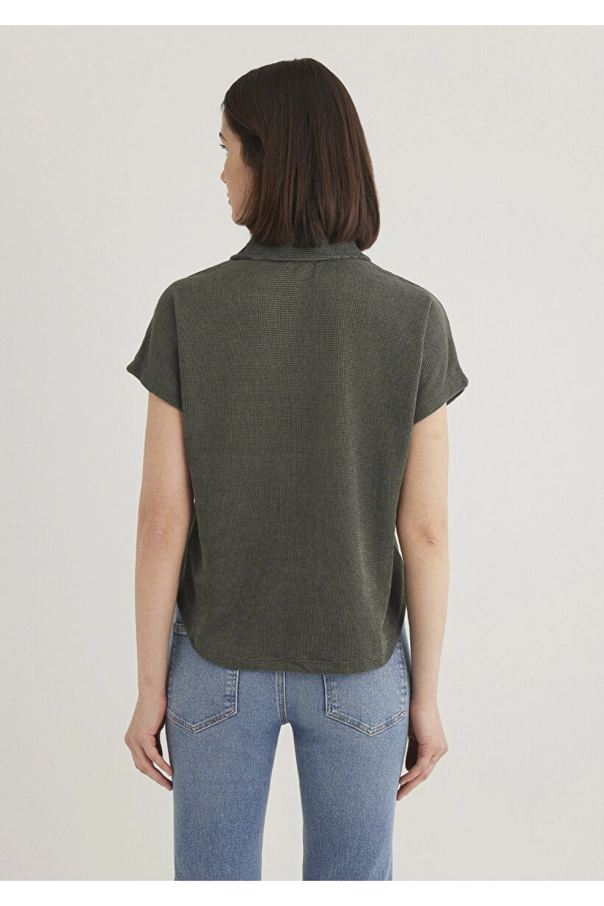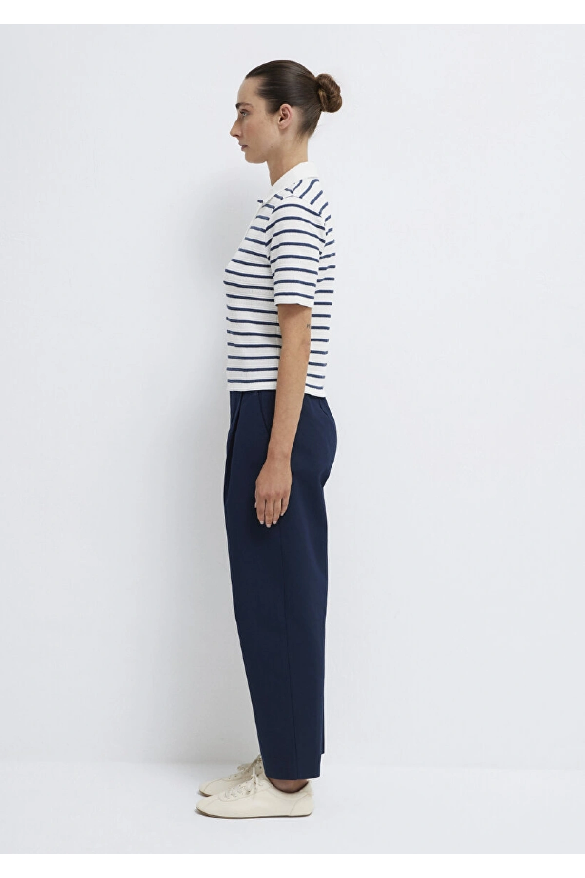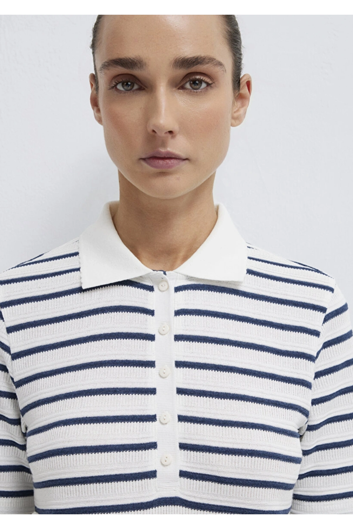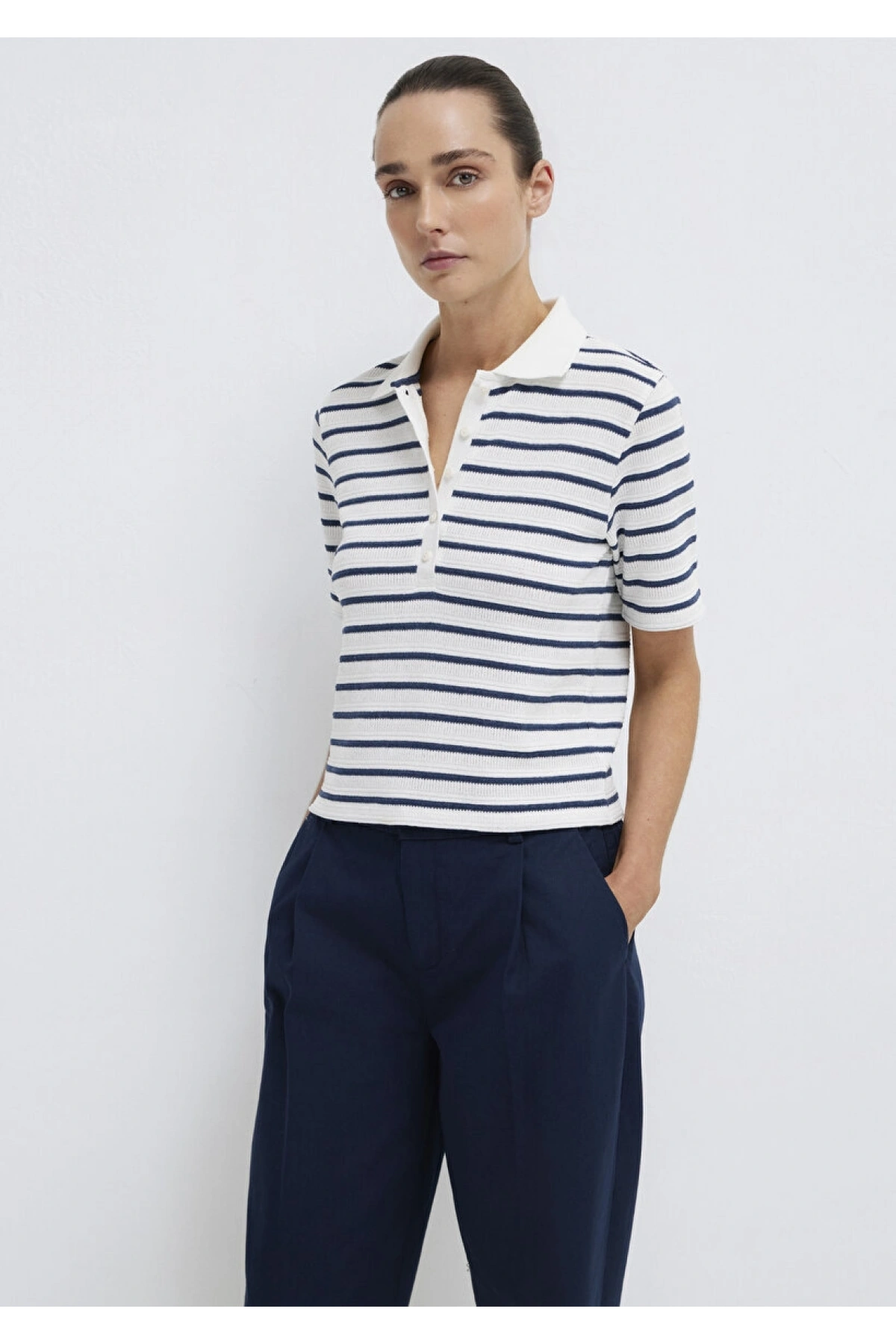 MAVİ Lacivert Çizgi Dokulu Beyaz Polo Tişört