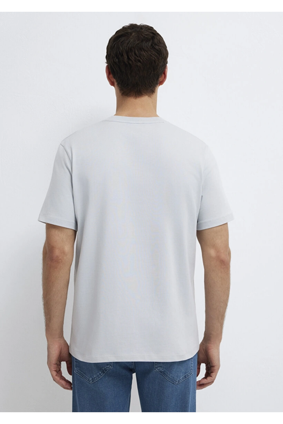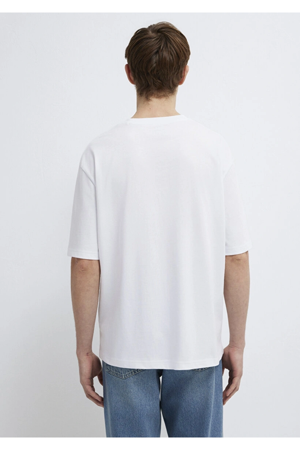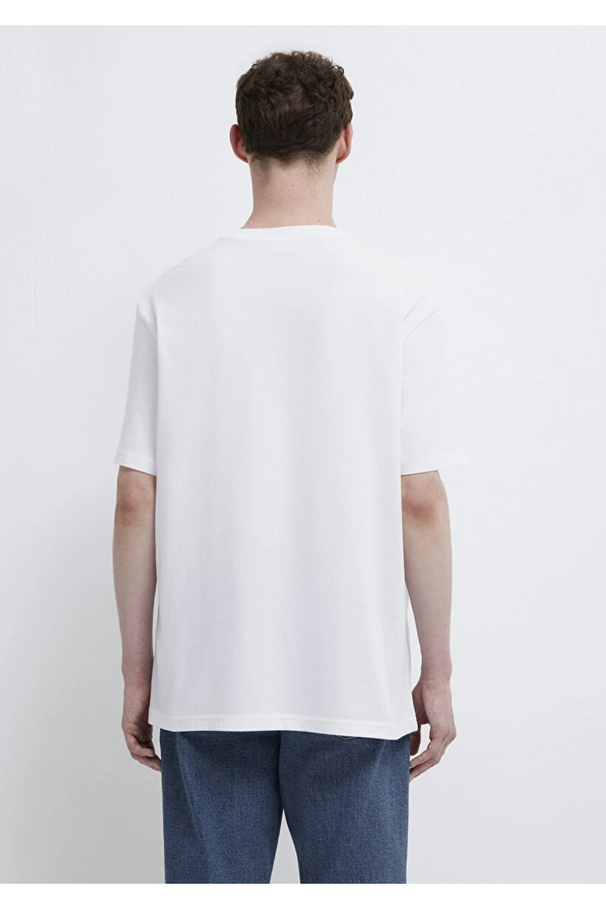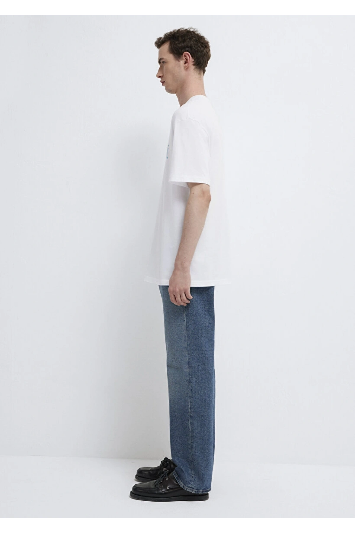 Mavi Baskılı Beyaz Tişört