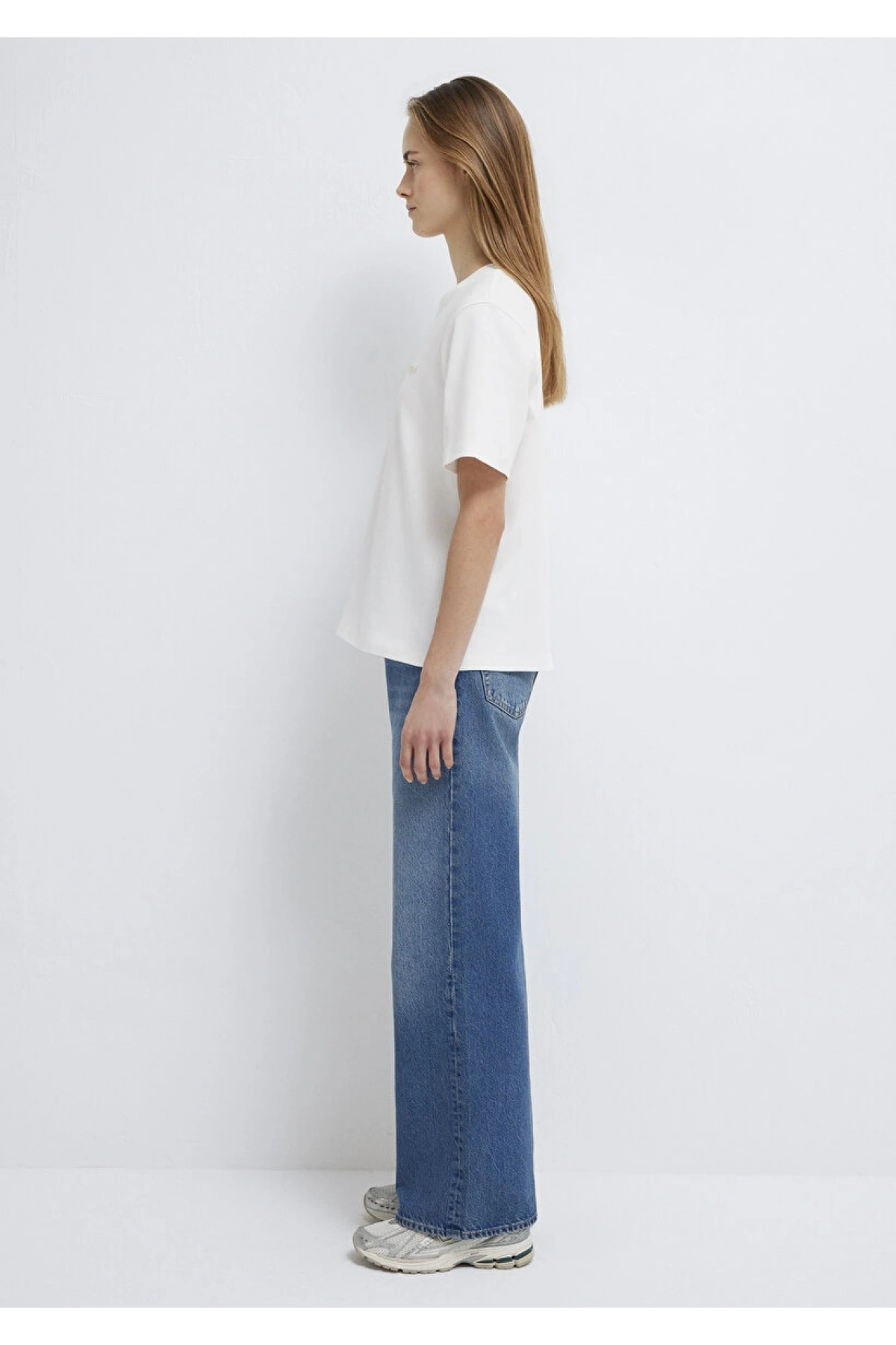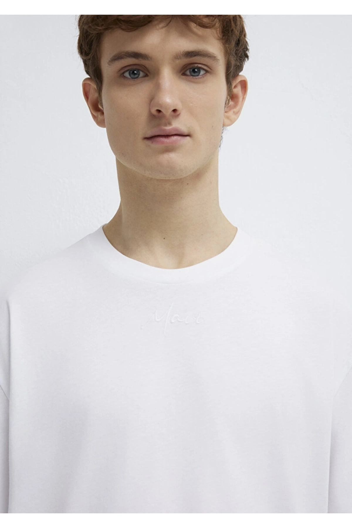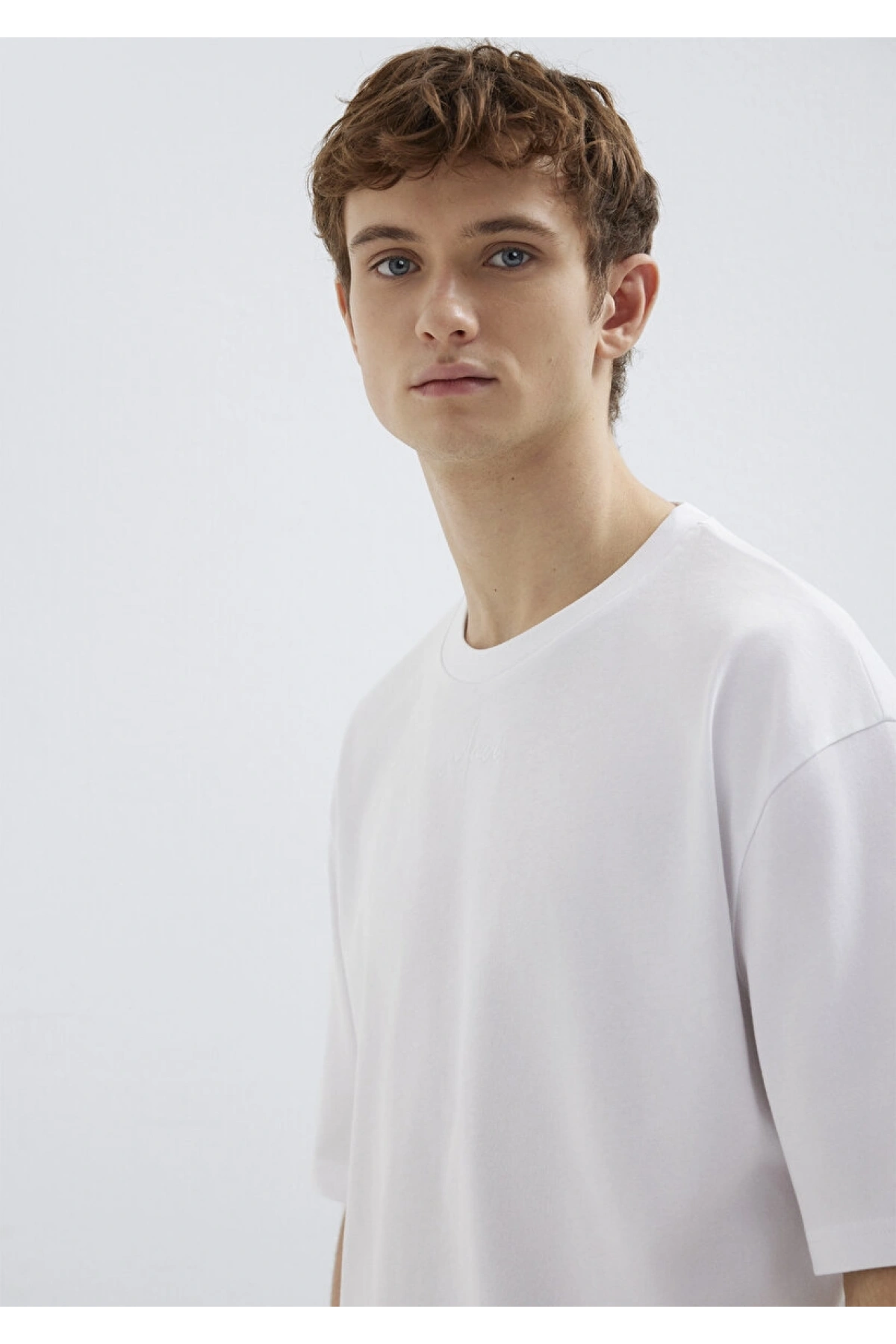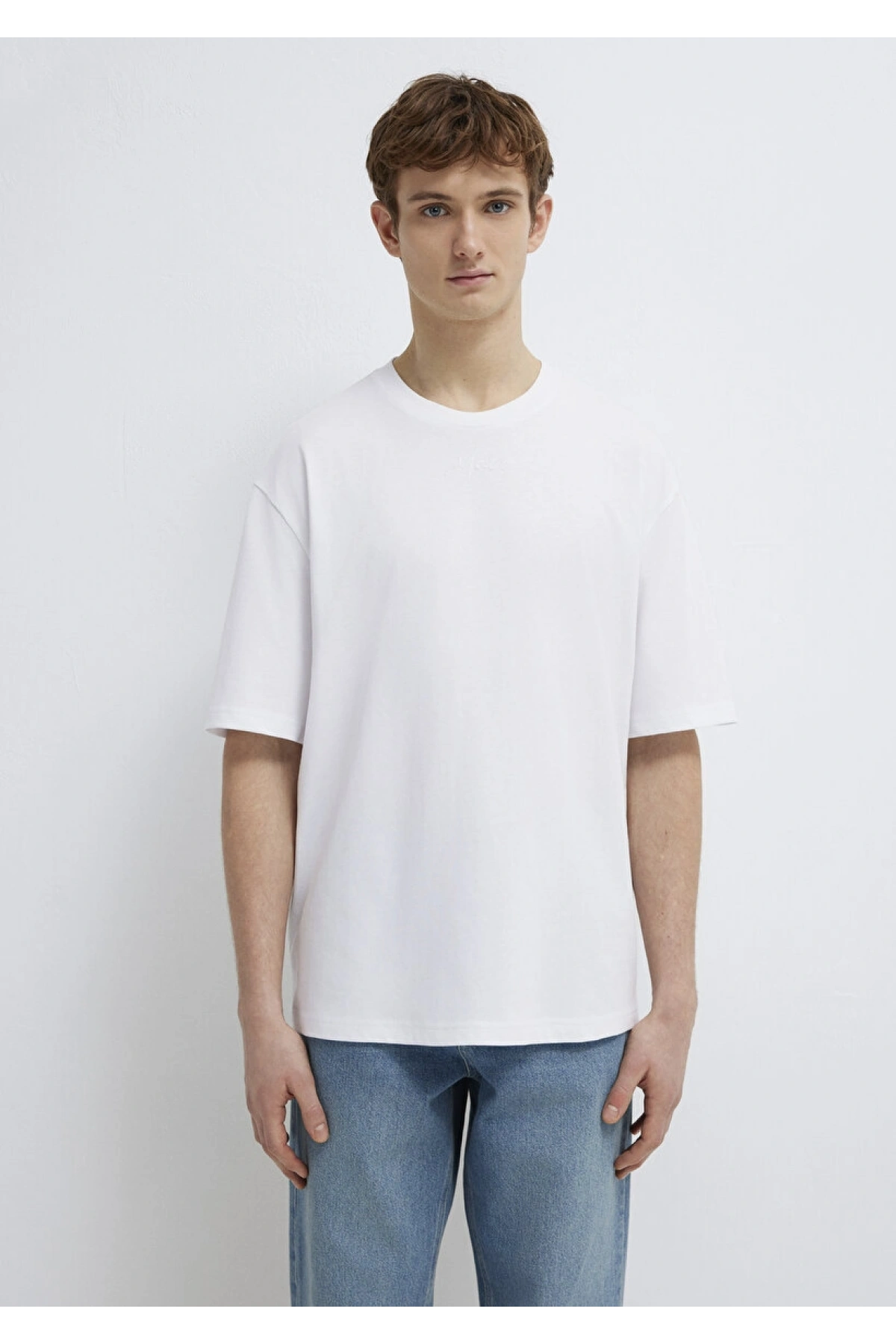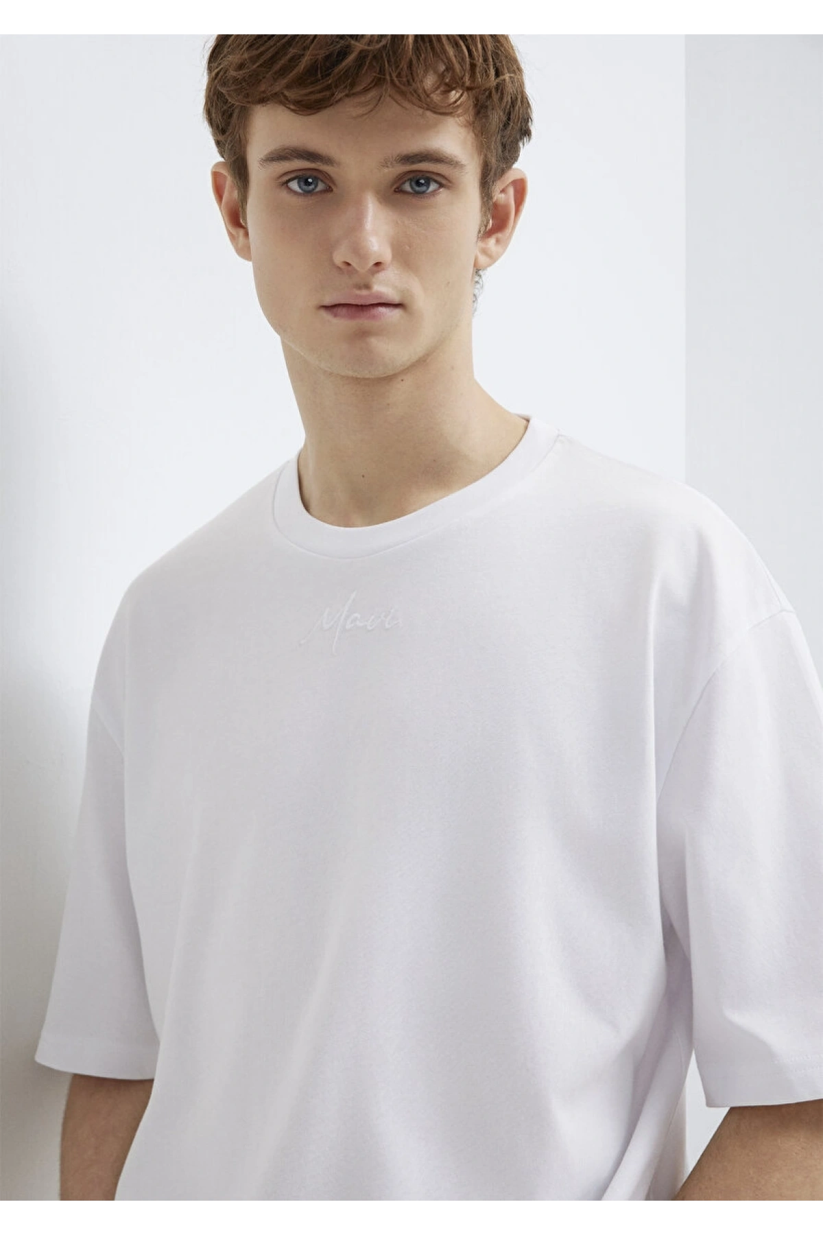 Mavi Nakışlı Beyaz Tişört