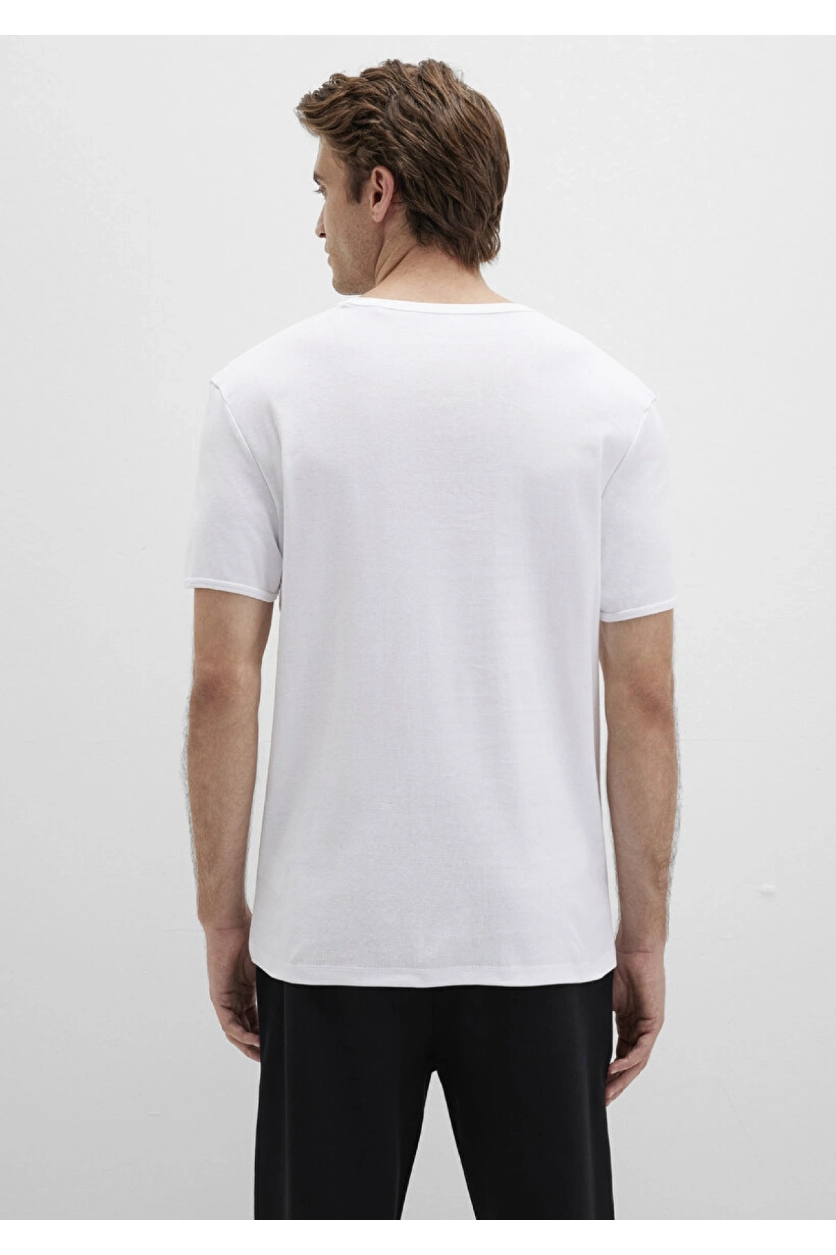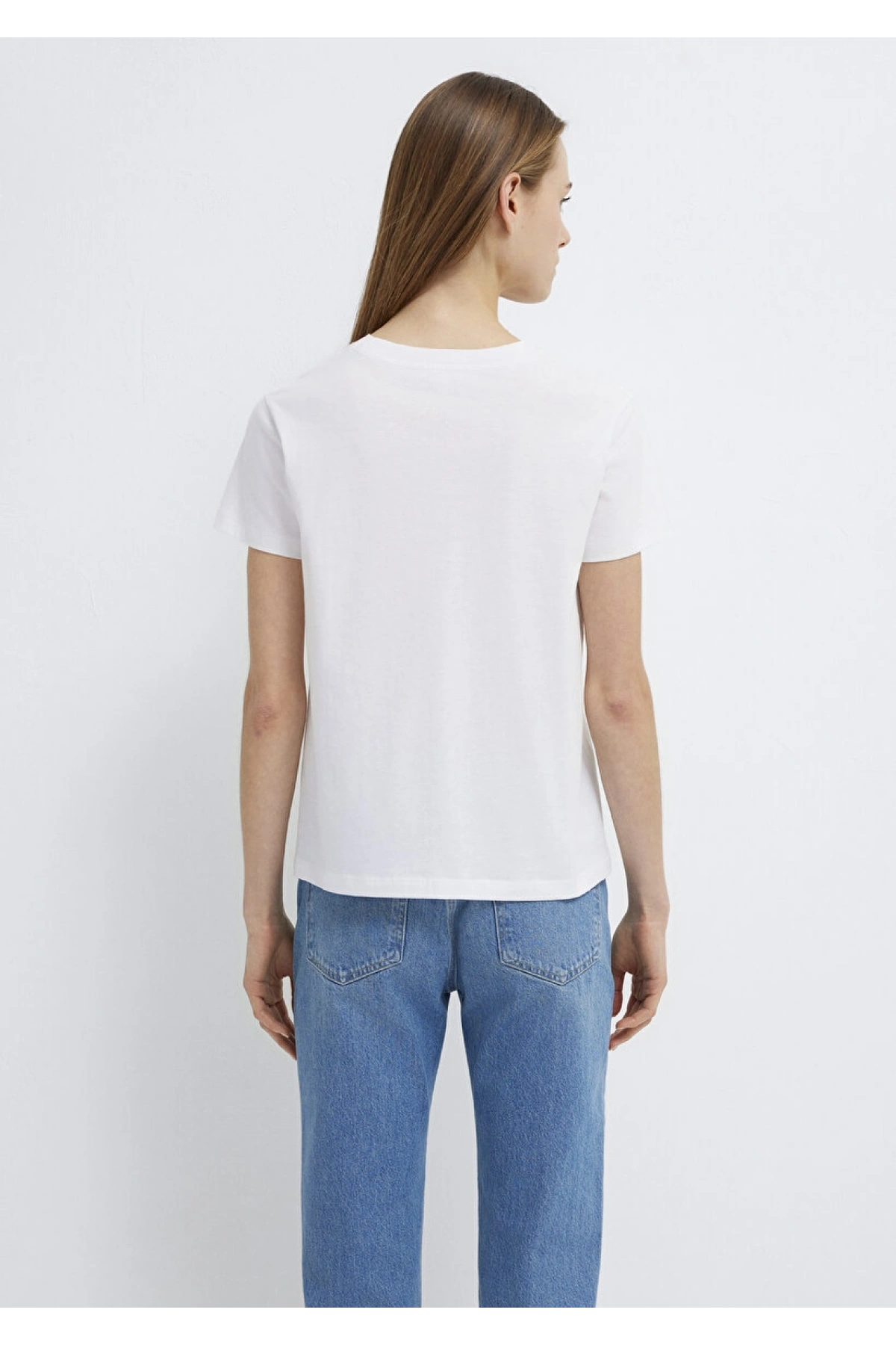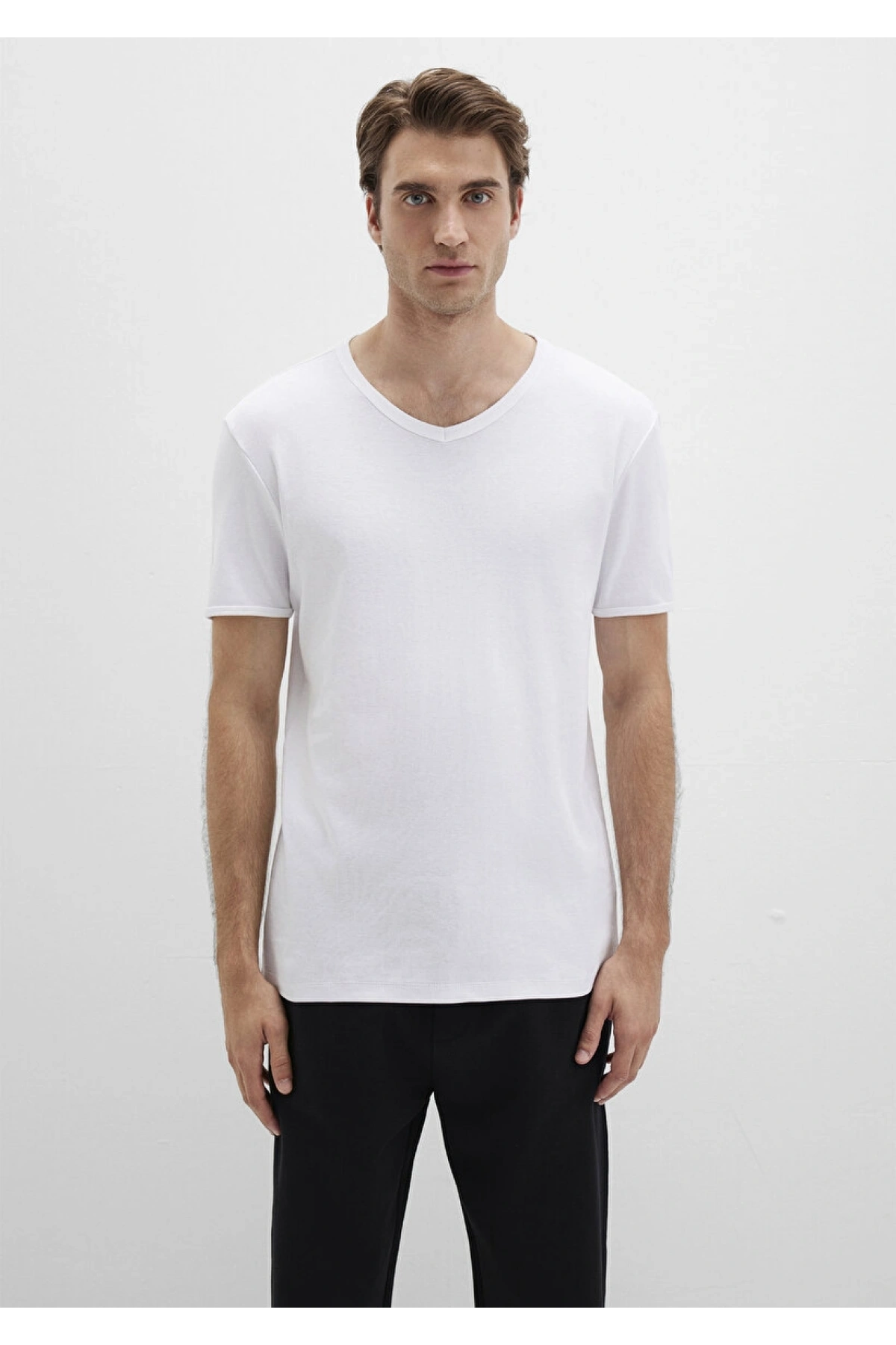 Ribana Detaylı V Yaka Beyaz Tişört