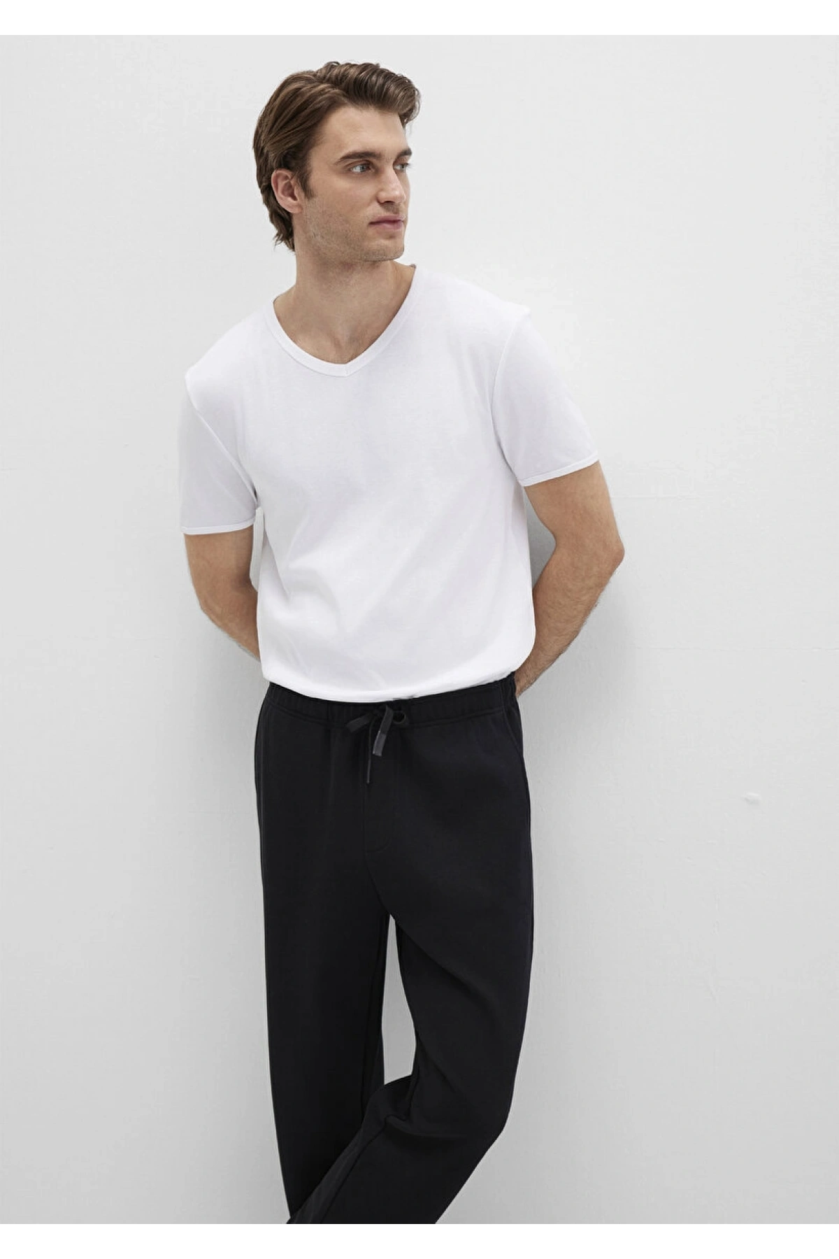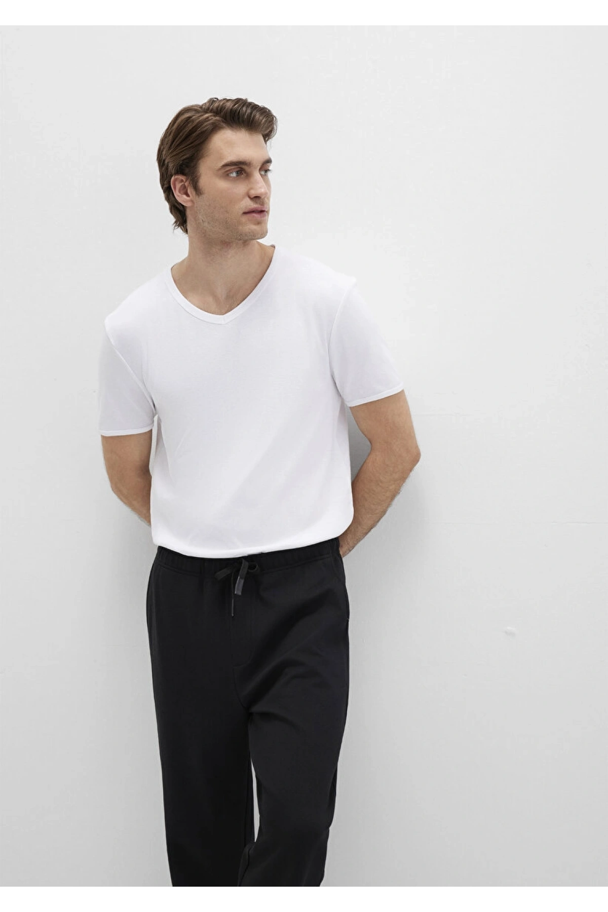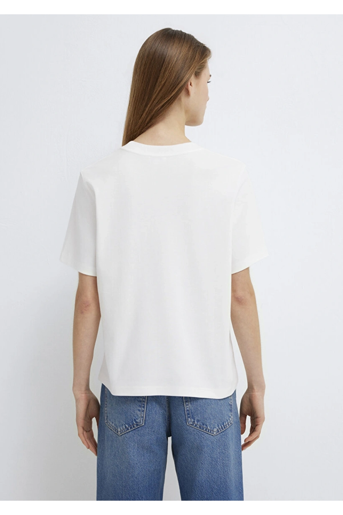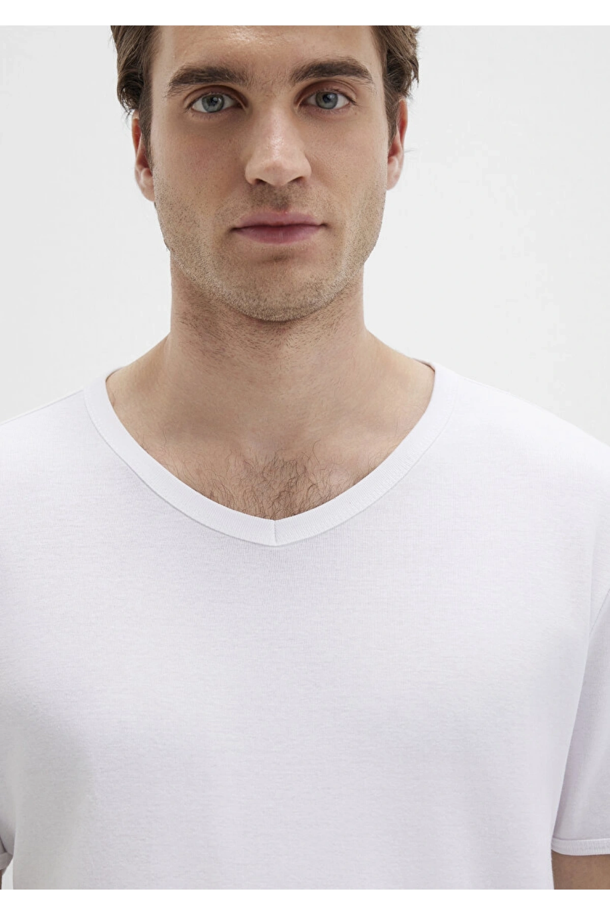Ribana Detaylı V Yaka Beyaz Tişört