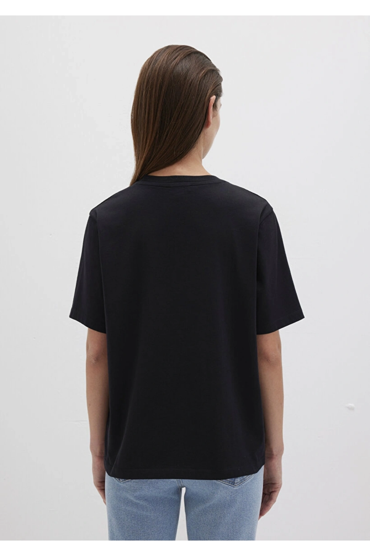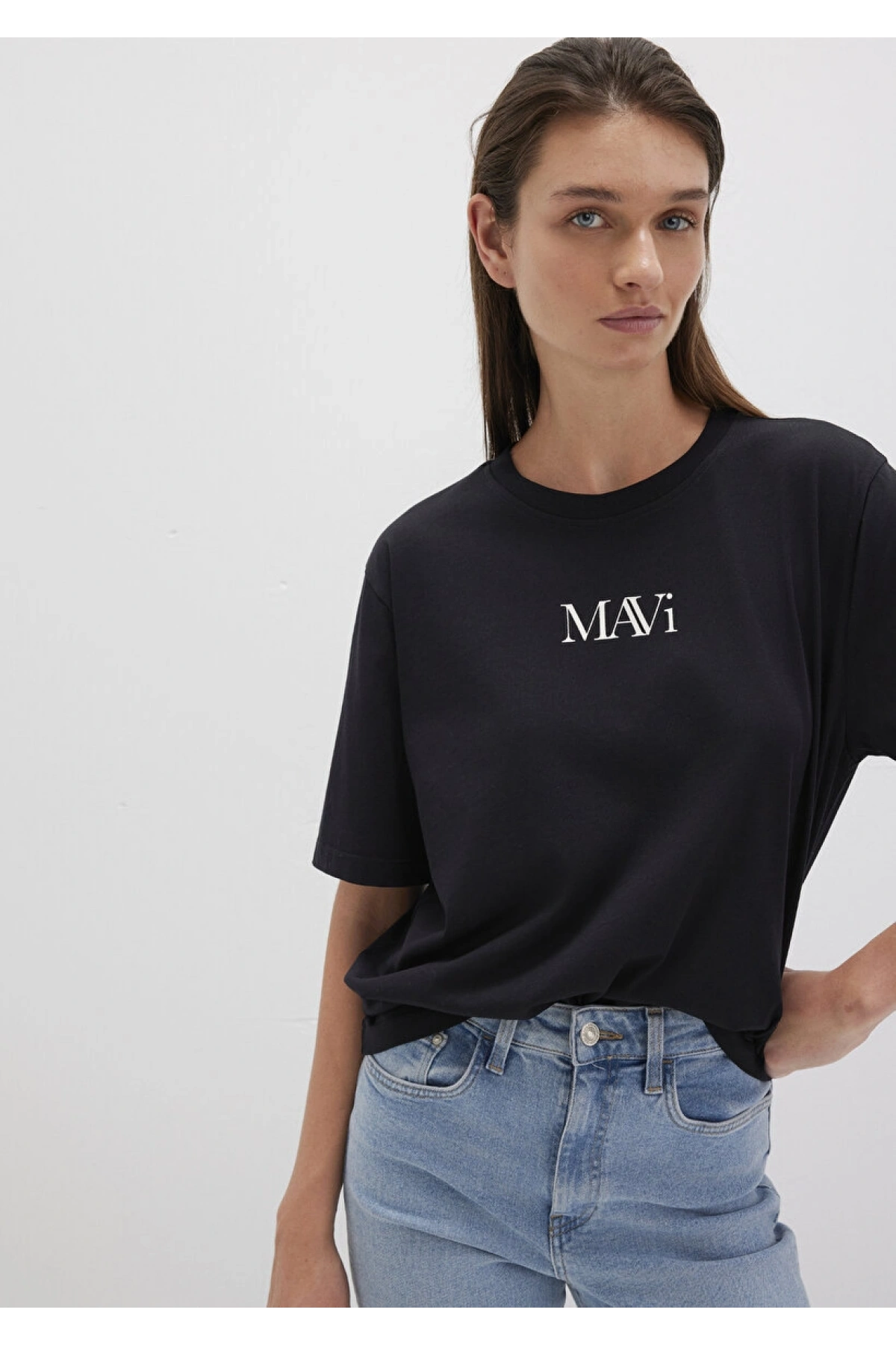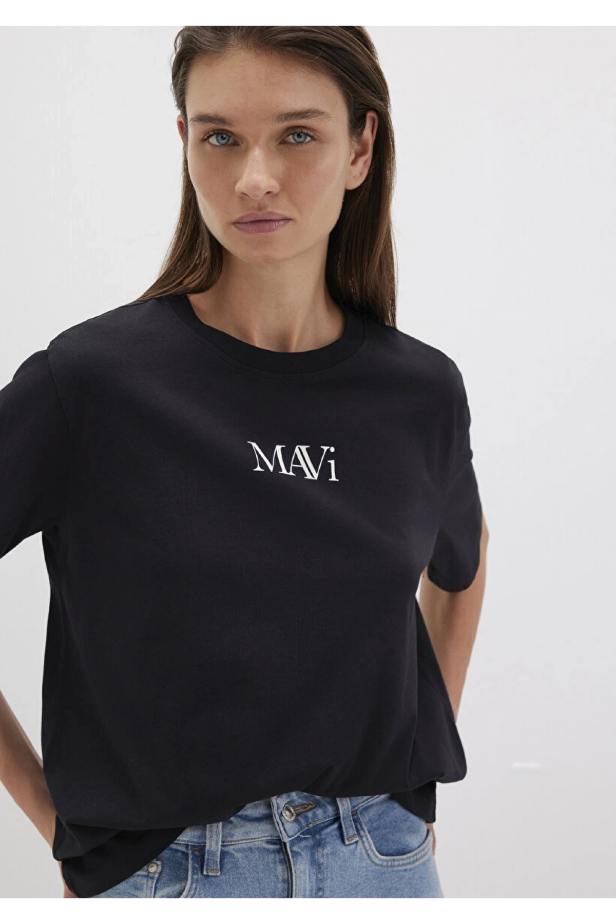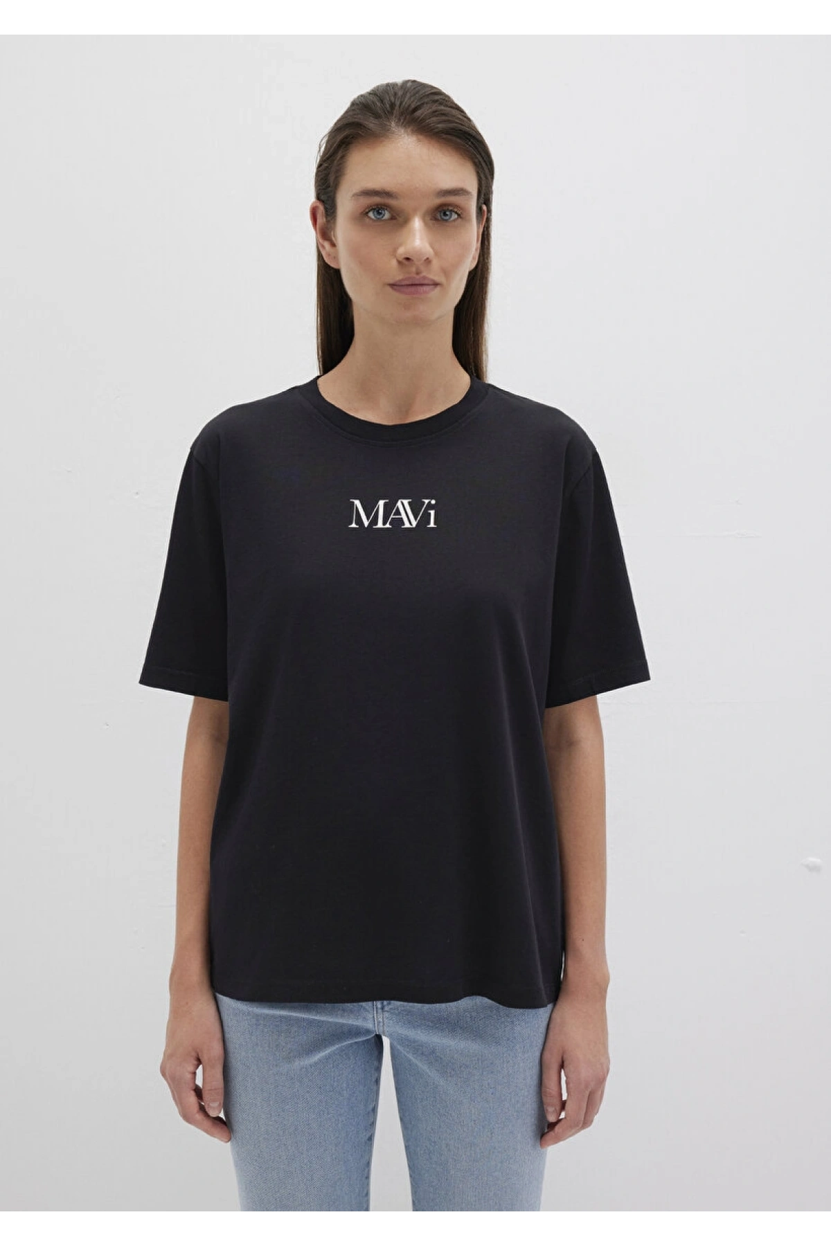 Mavi Logo Baskılı Siyah Tişört
