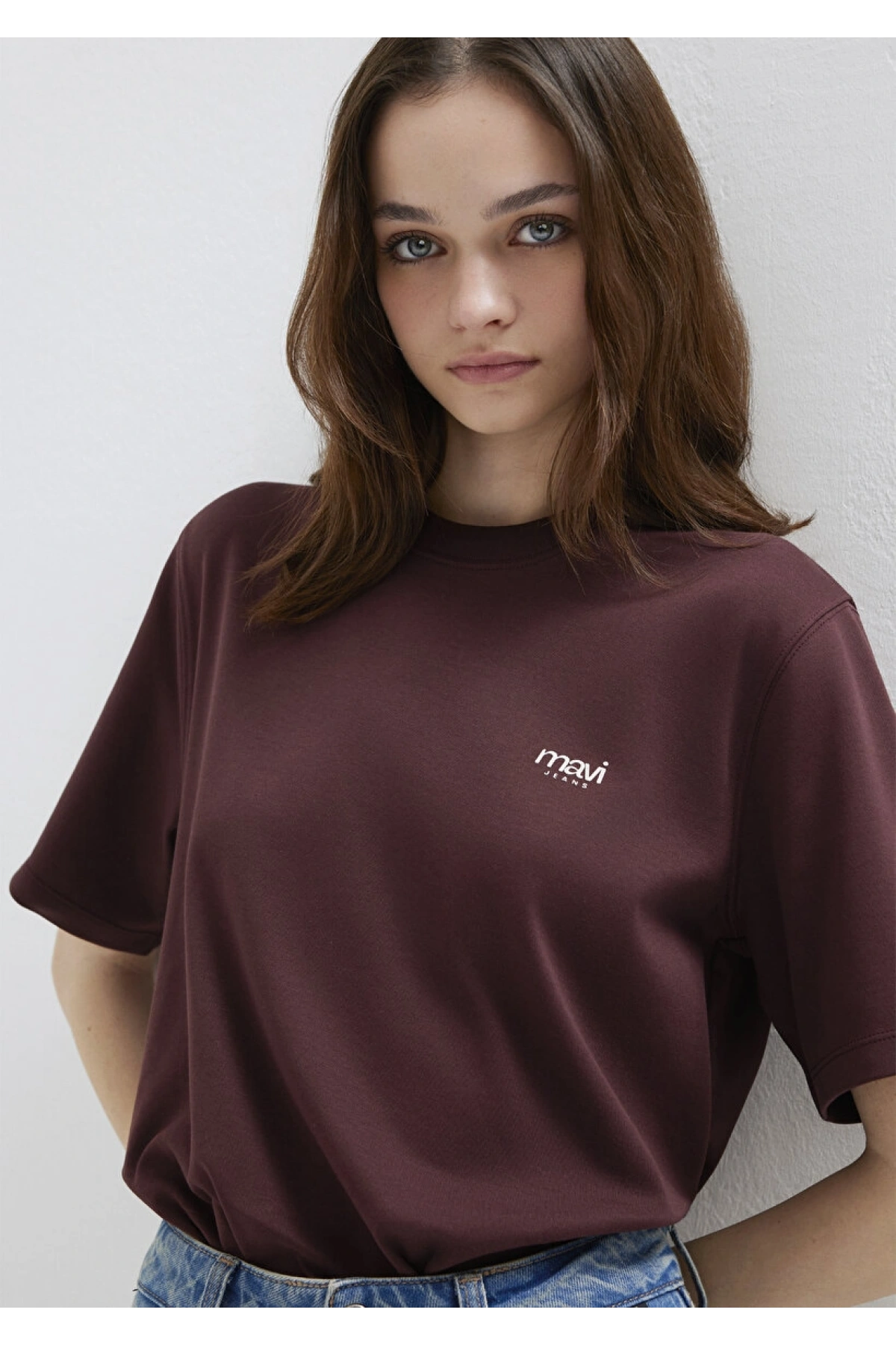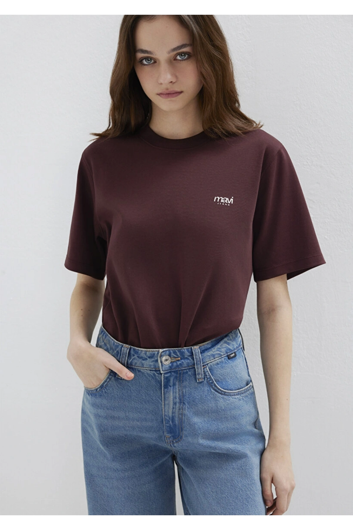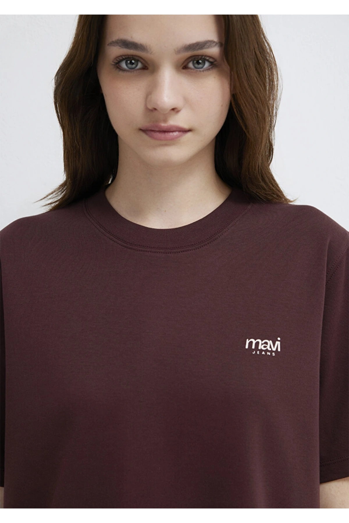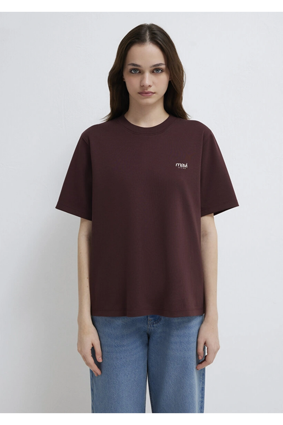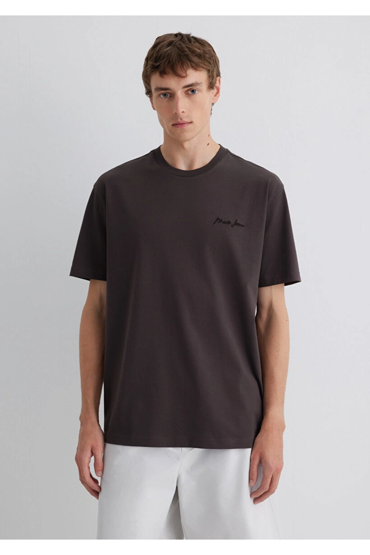 Mavi Jeans Nakışlı Kahverengi Basic Tişört