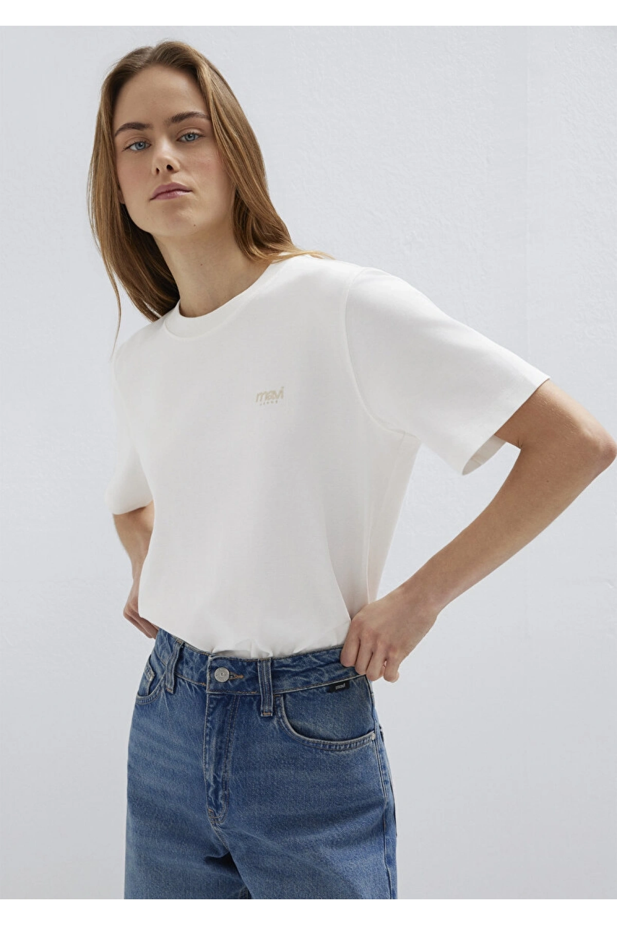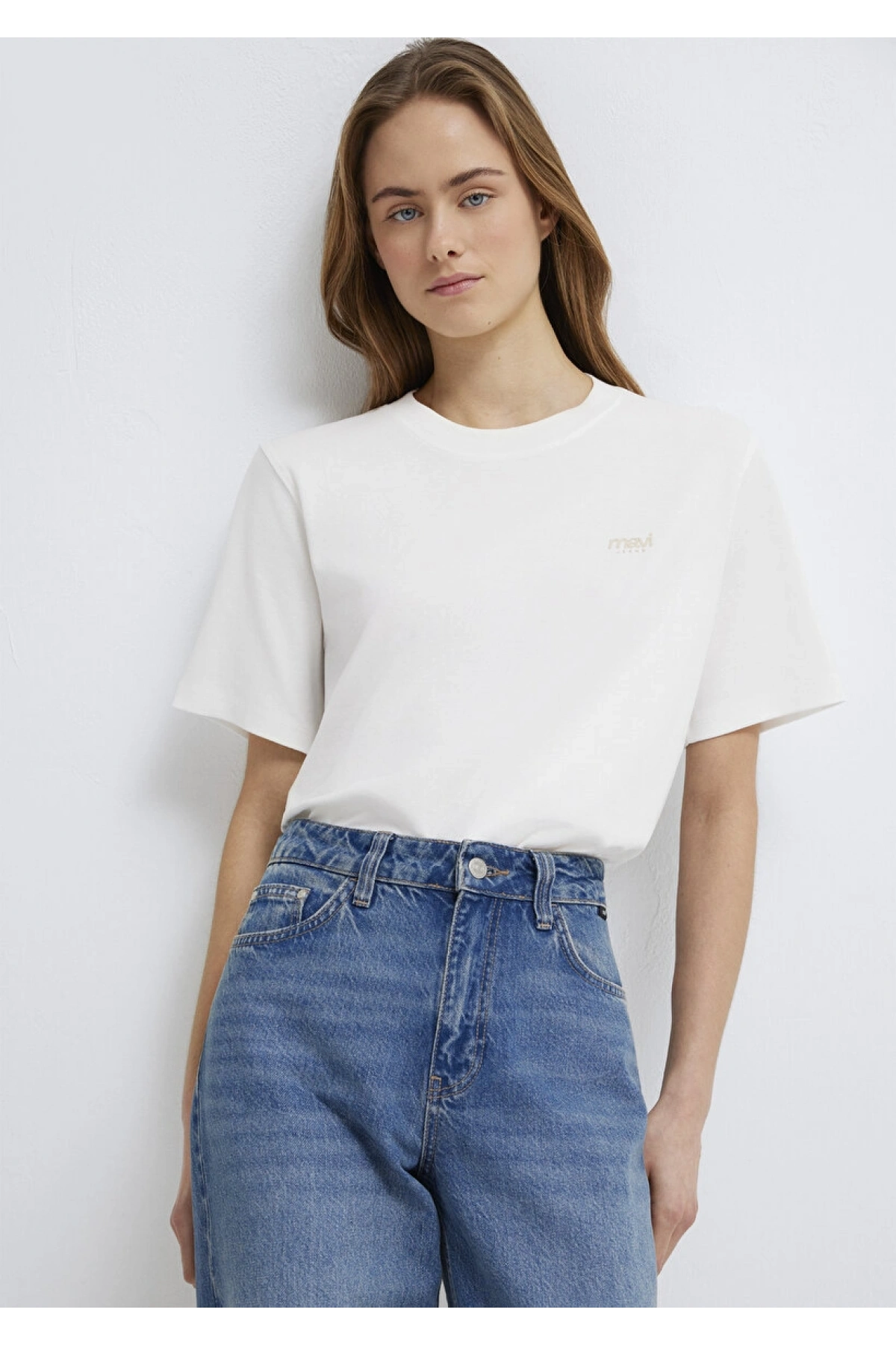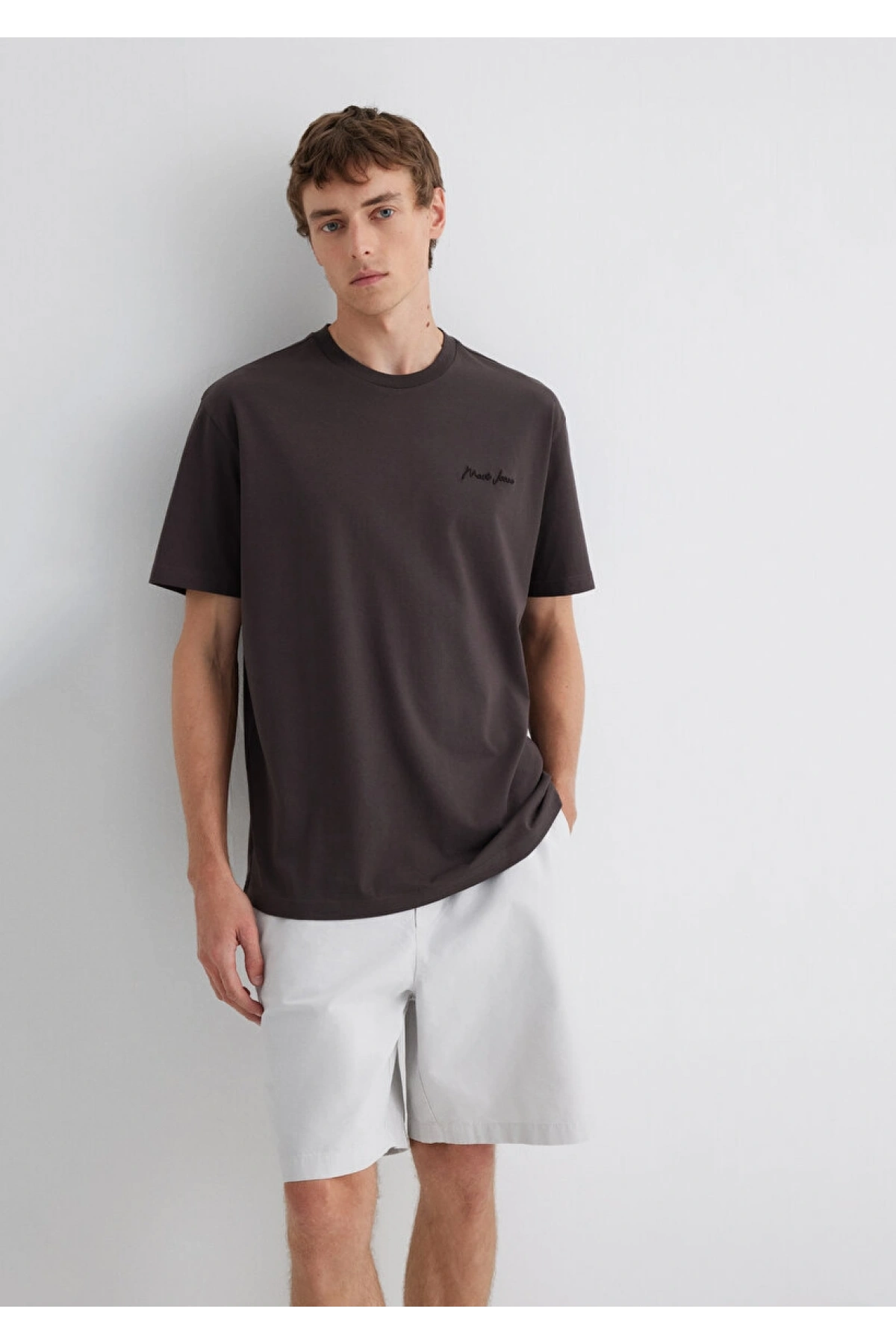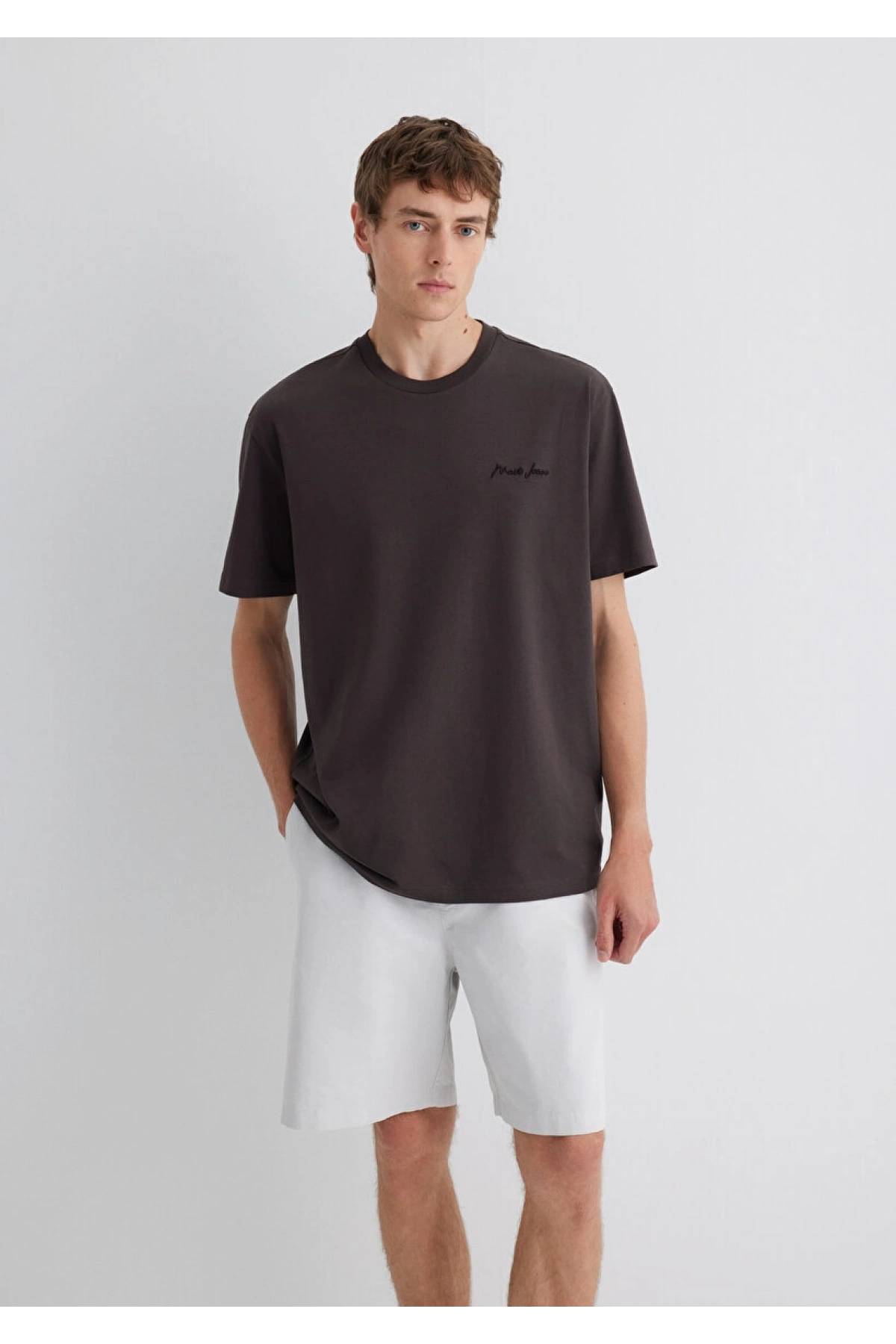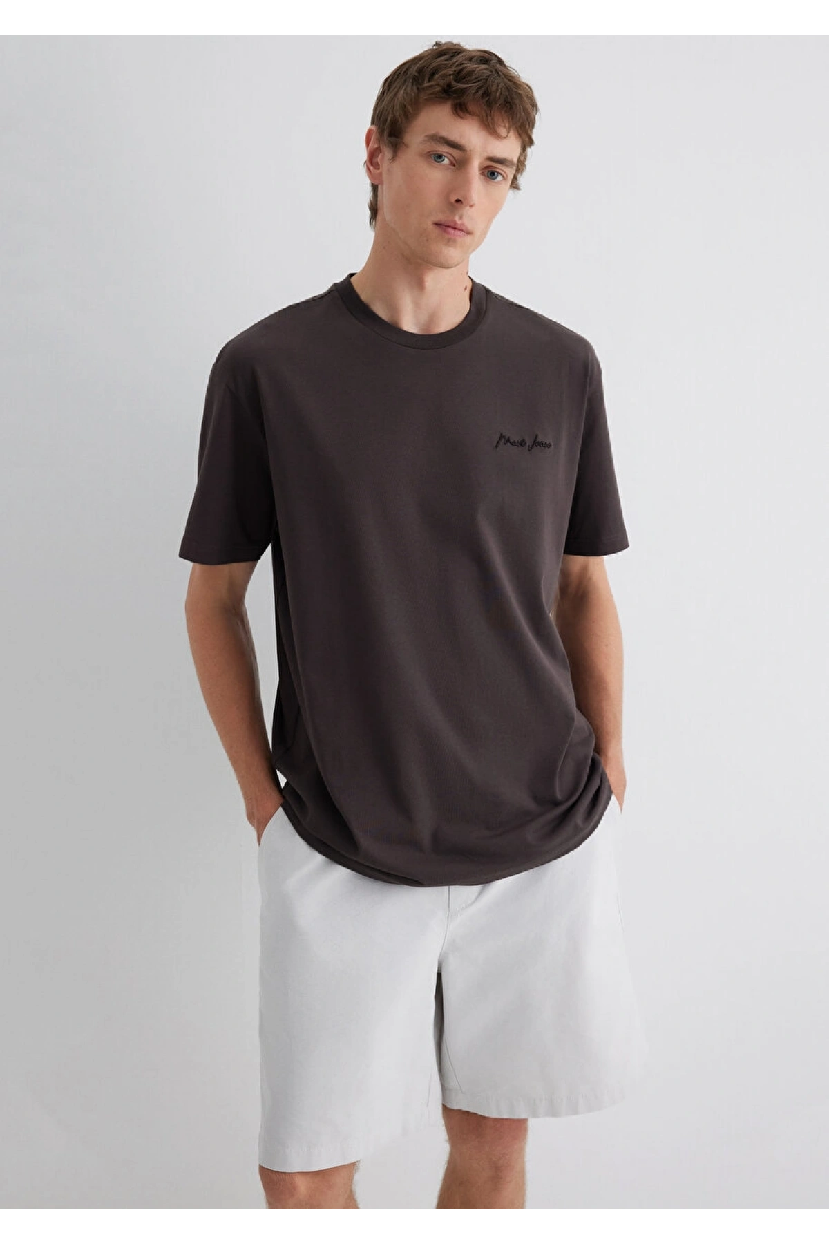 Mavi Jeans Nakışlı Kahverengi Basic Tişört