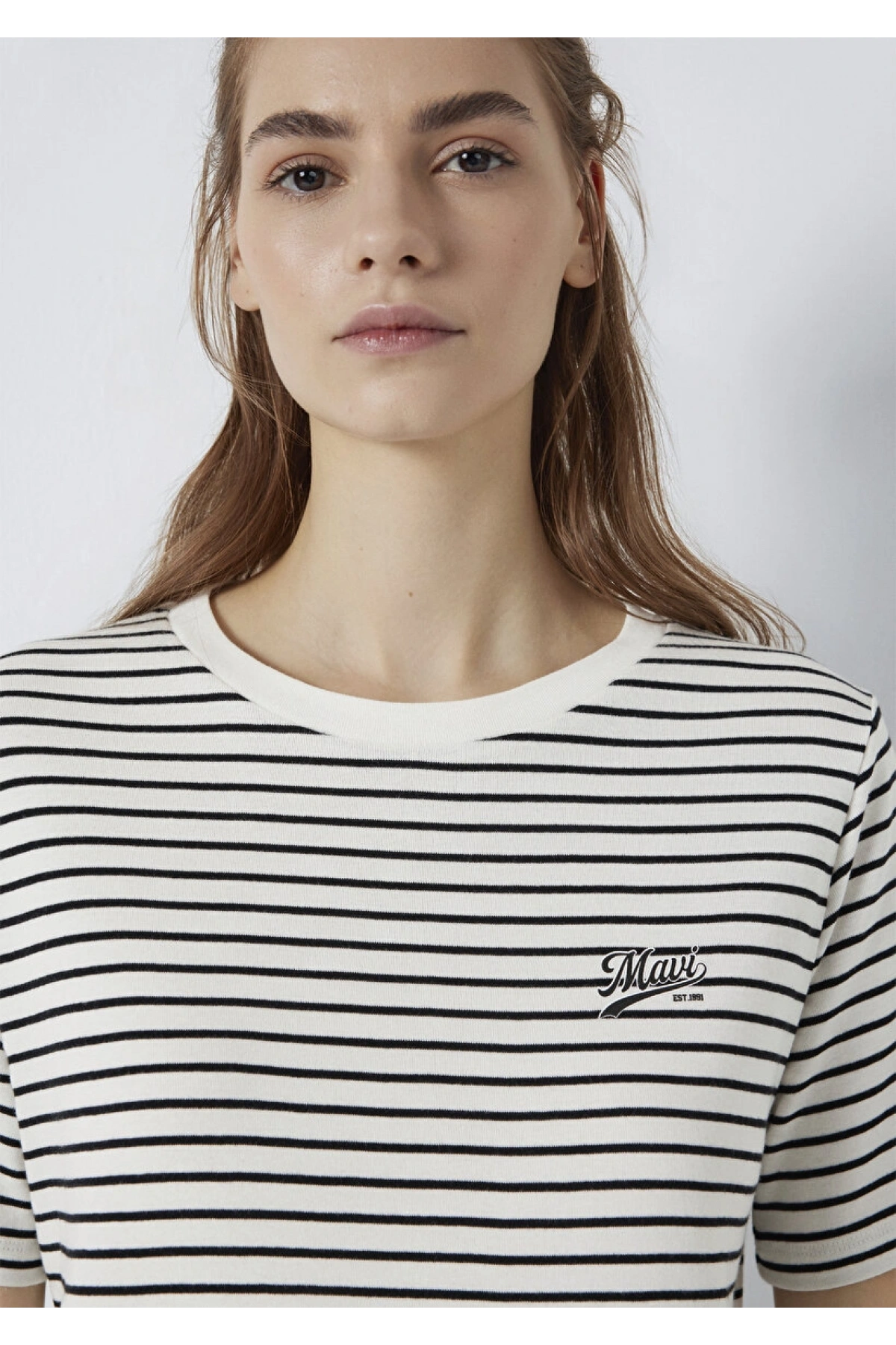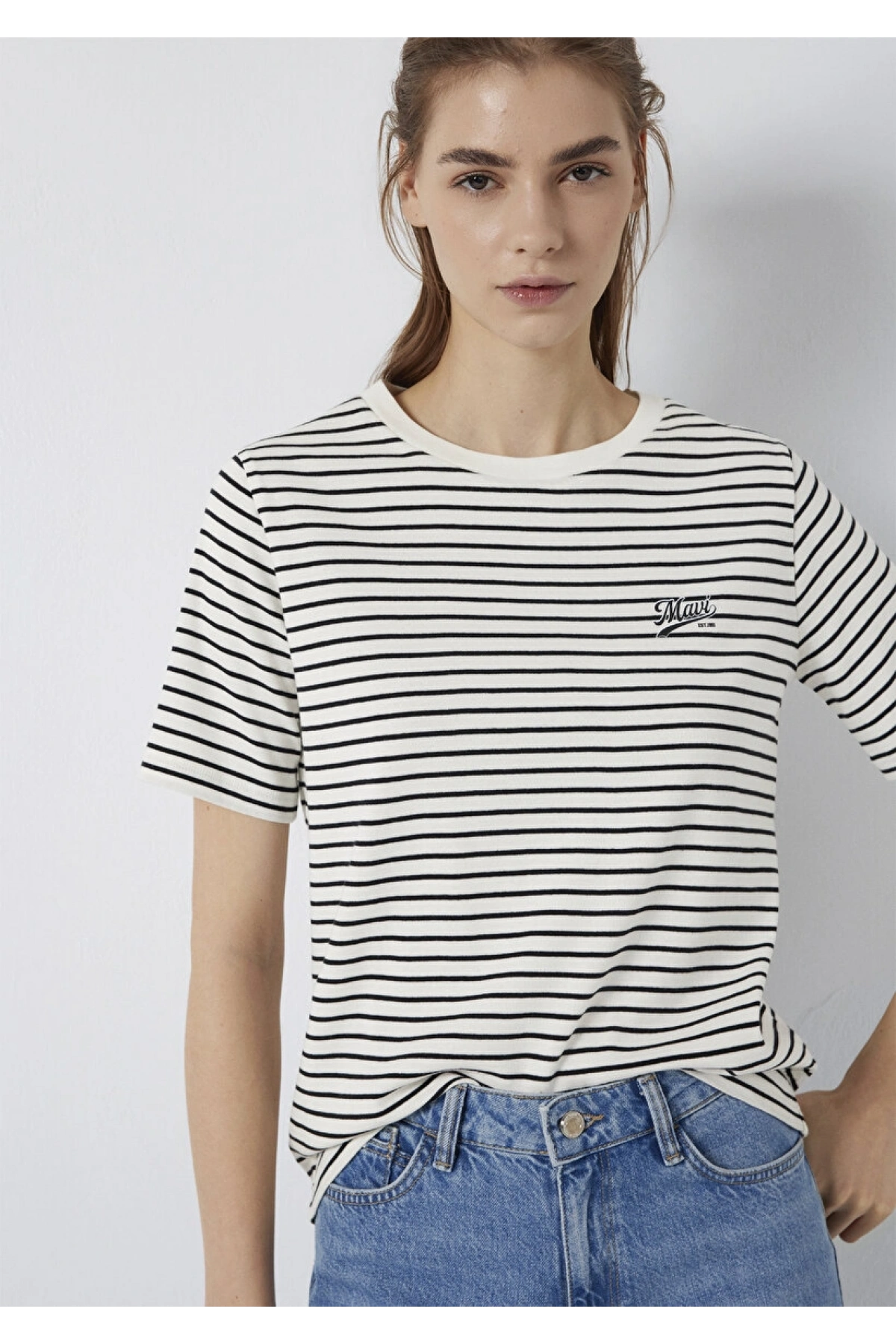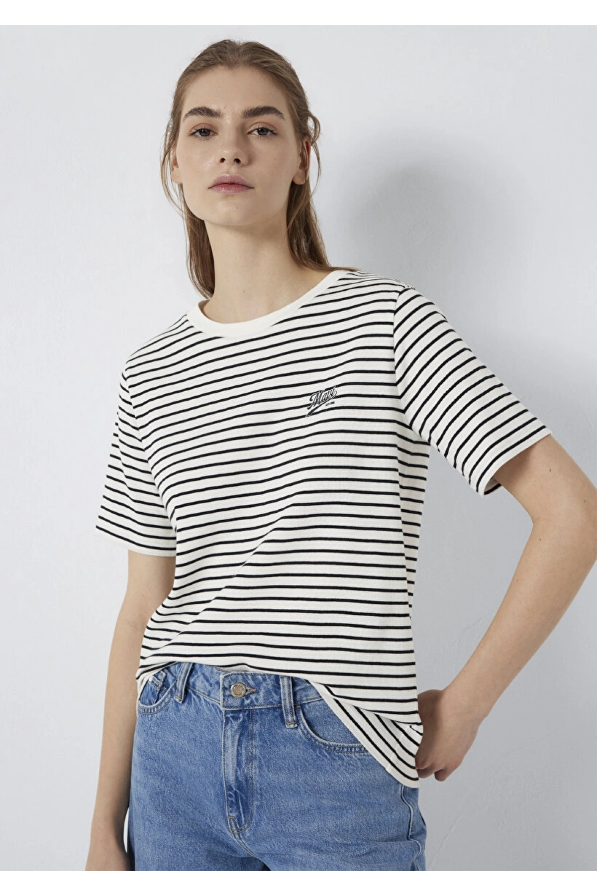 Mavi Logo Baskılı Çizgili Tişört