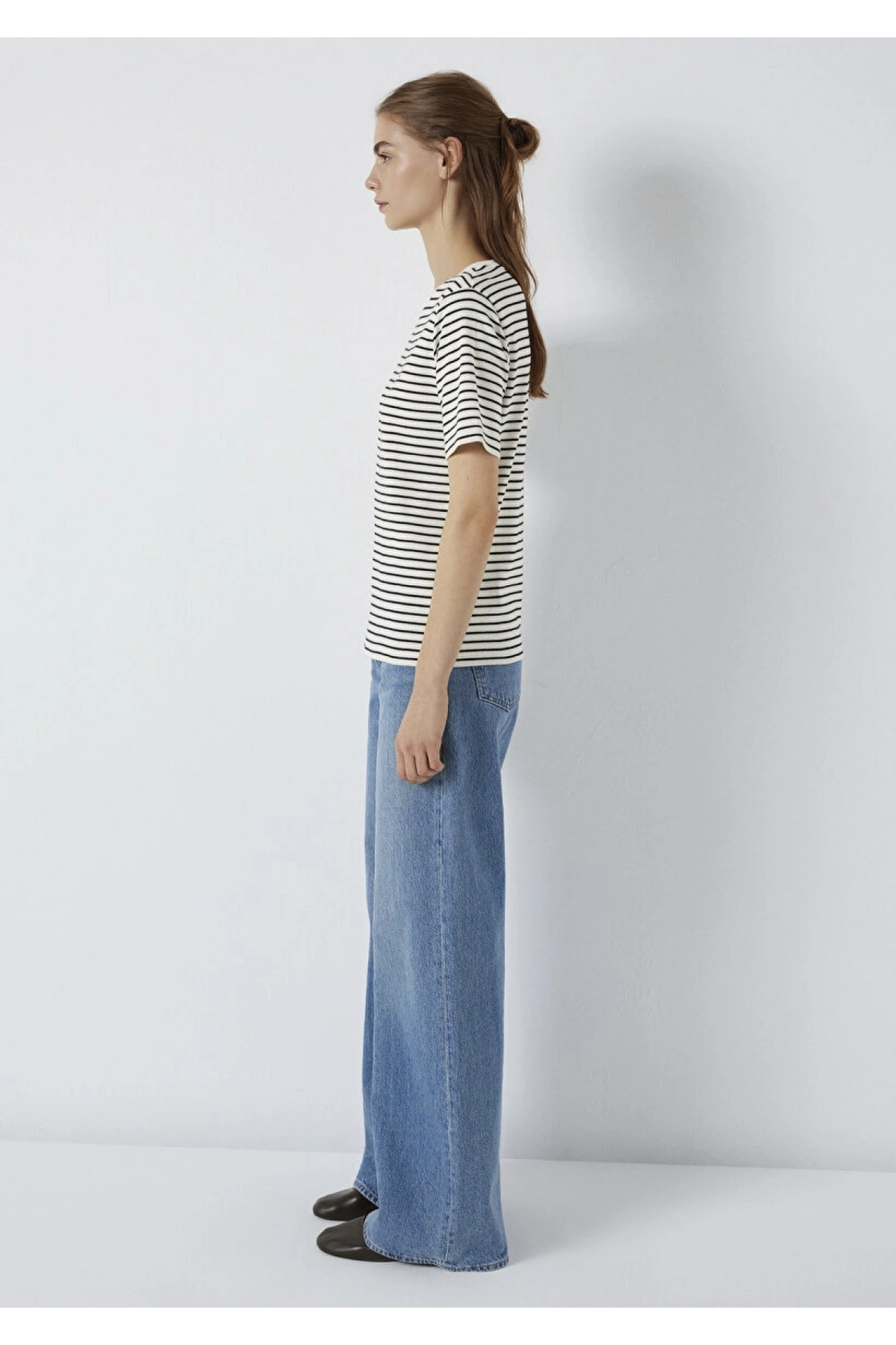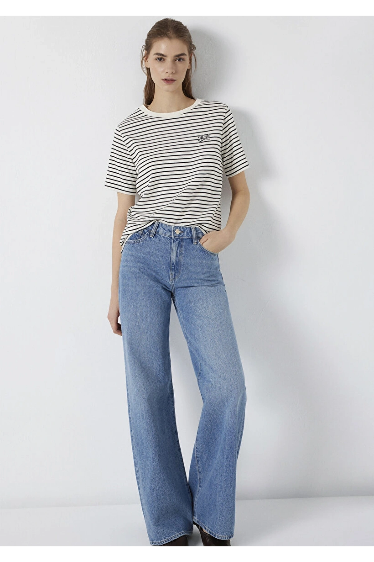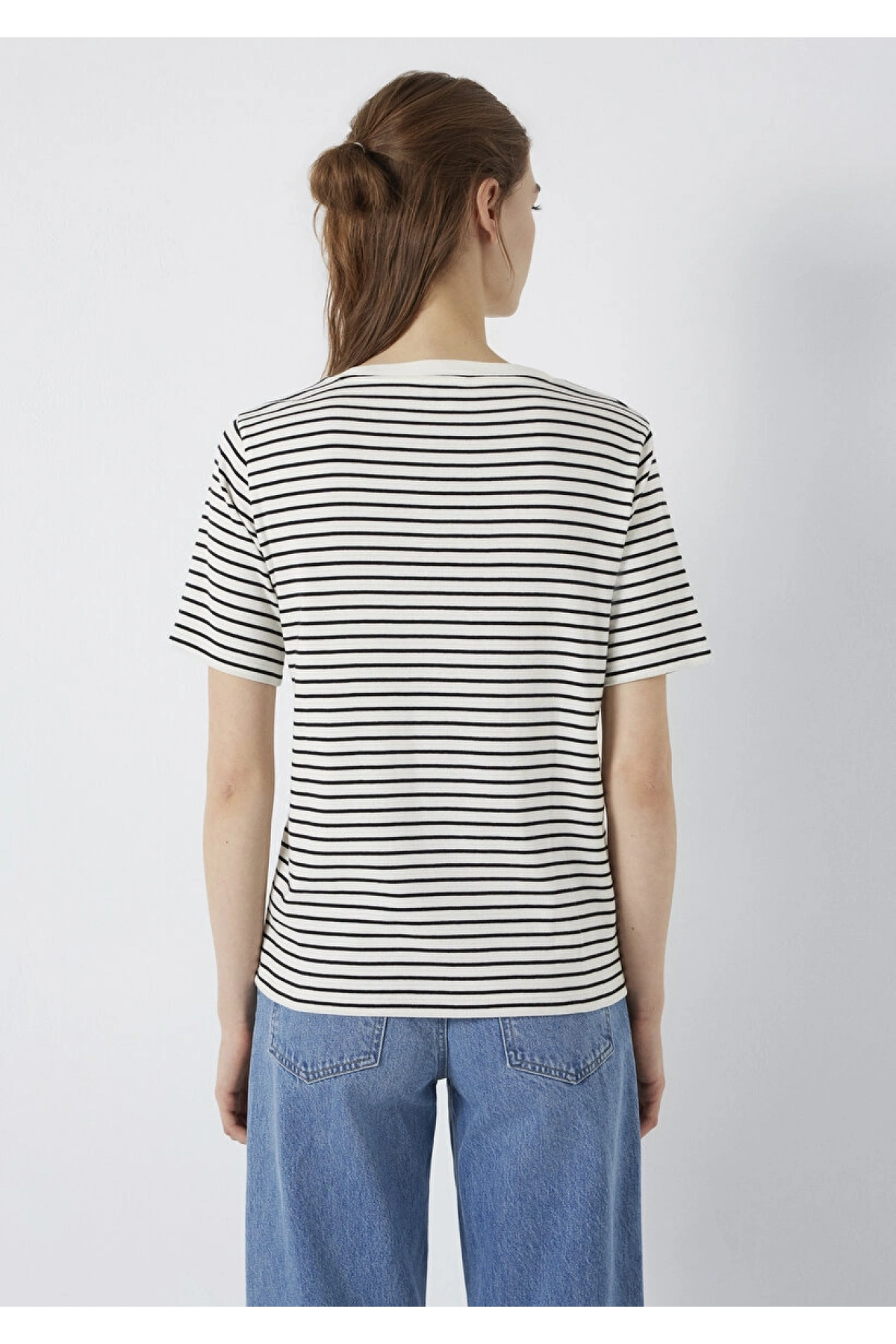 Mavi Logo Baskılı Çizgili Tişört