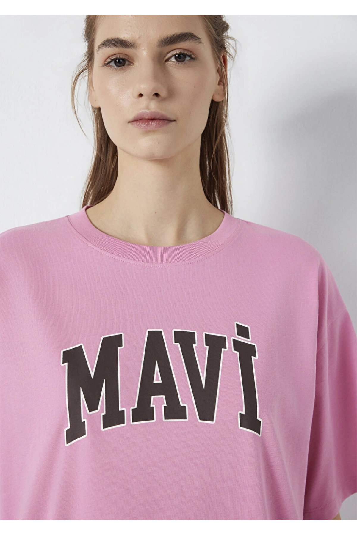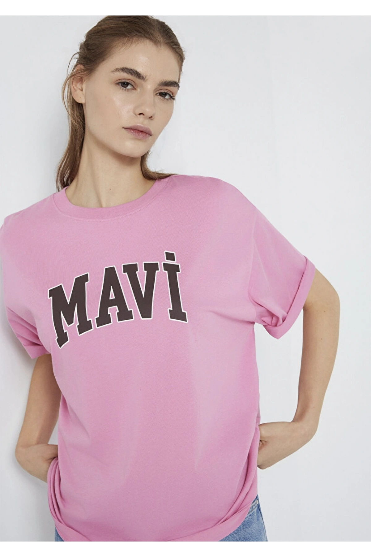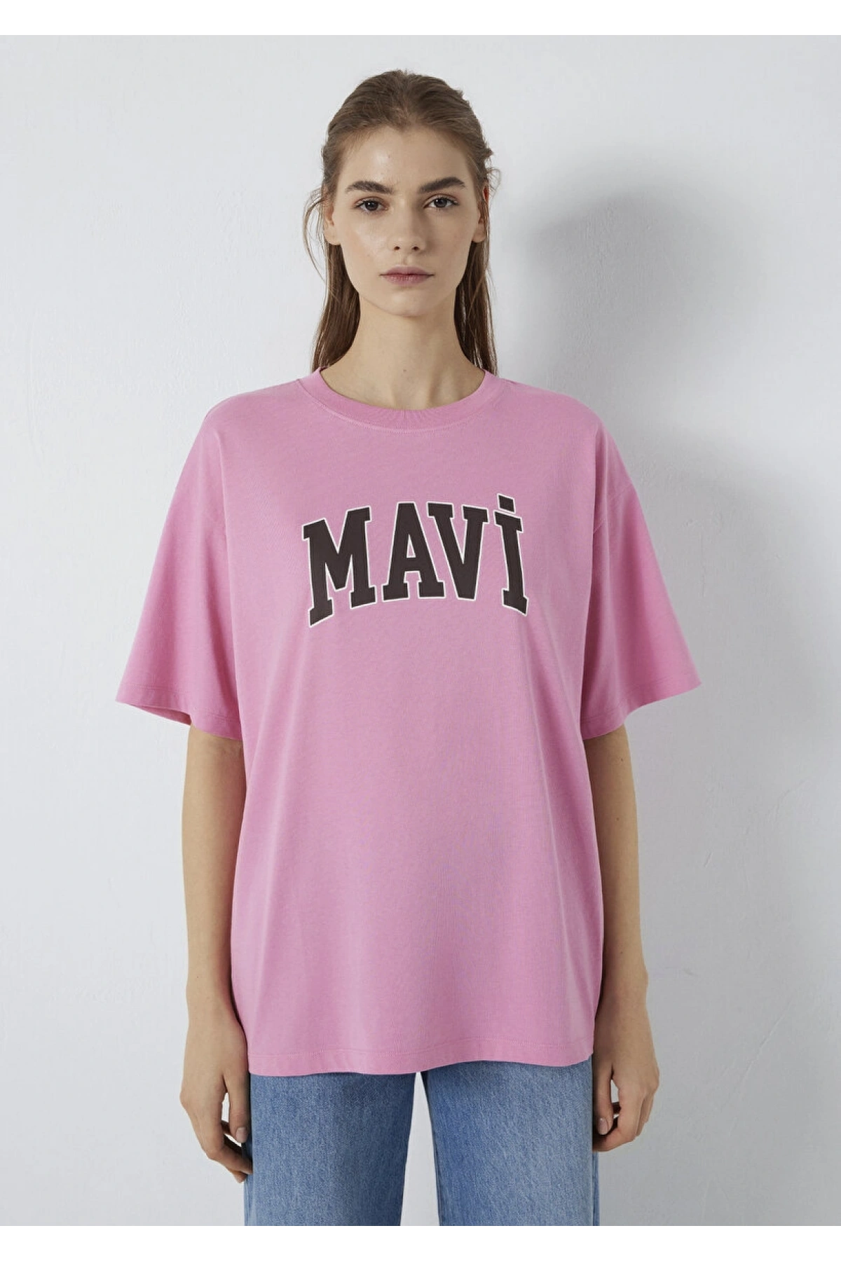 Mavi Logo Baskılı Pembe Tişört