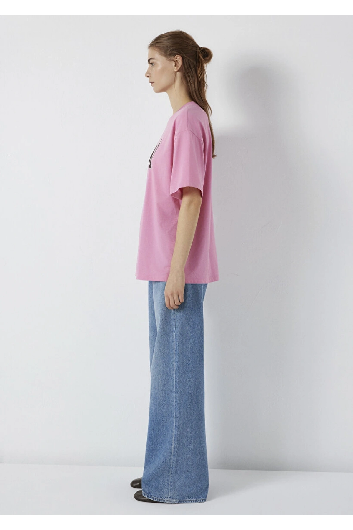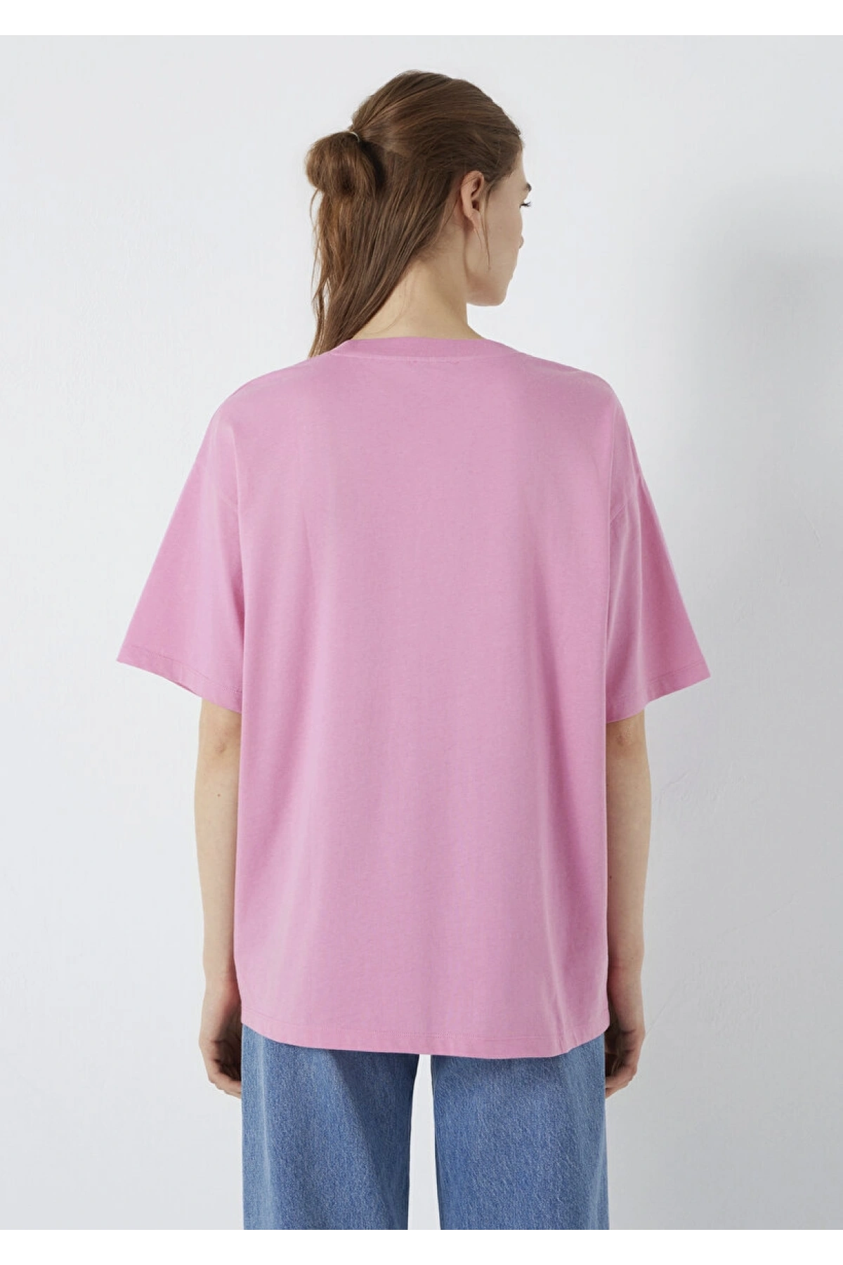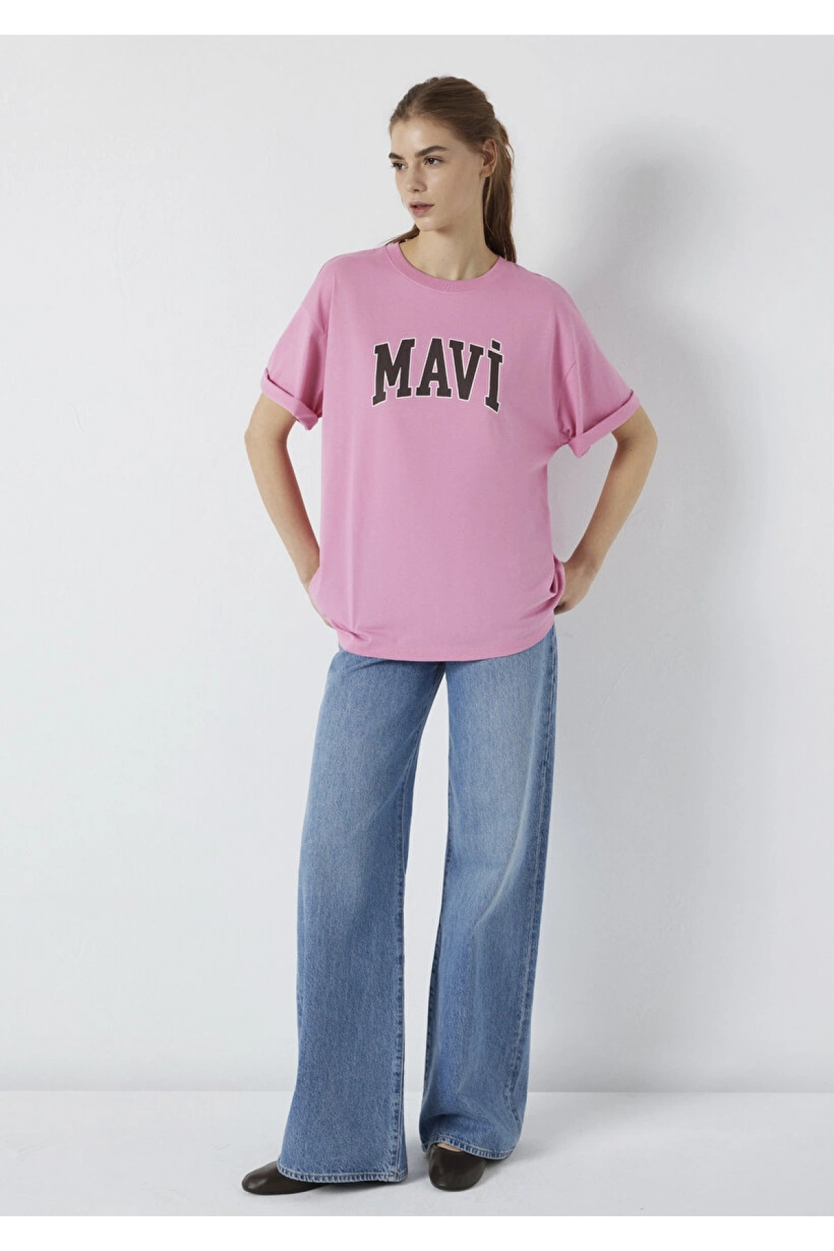Mavi Logo Baskılı Pembe Tişört