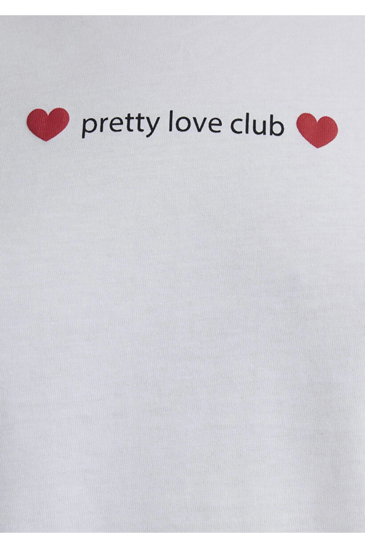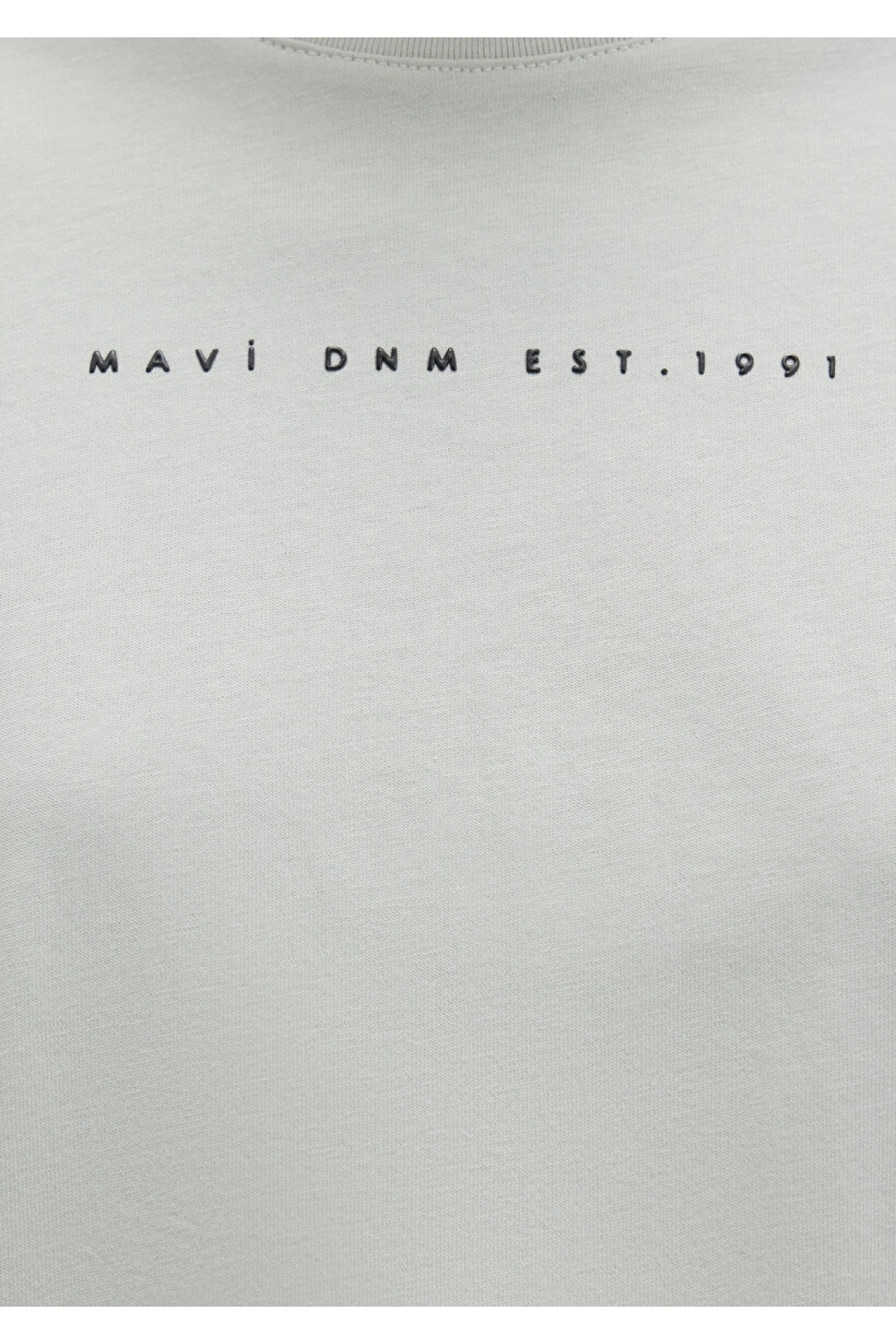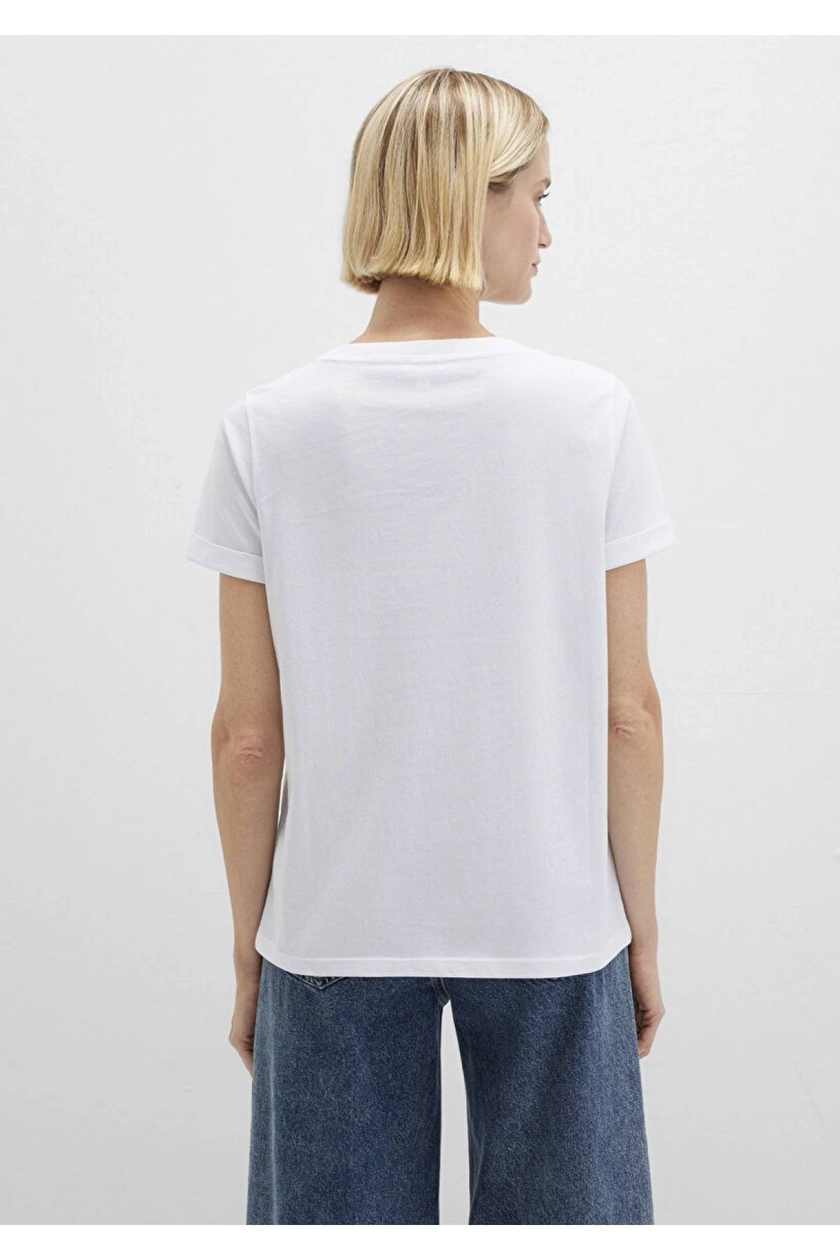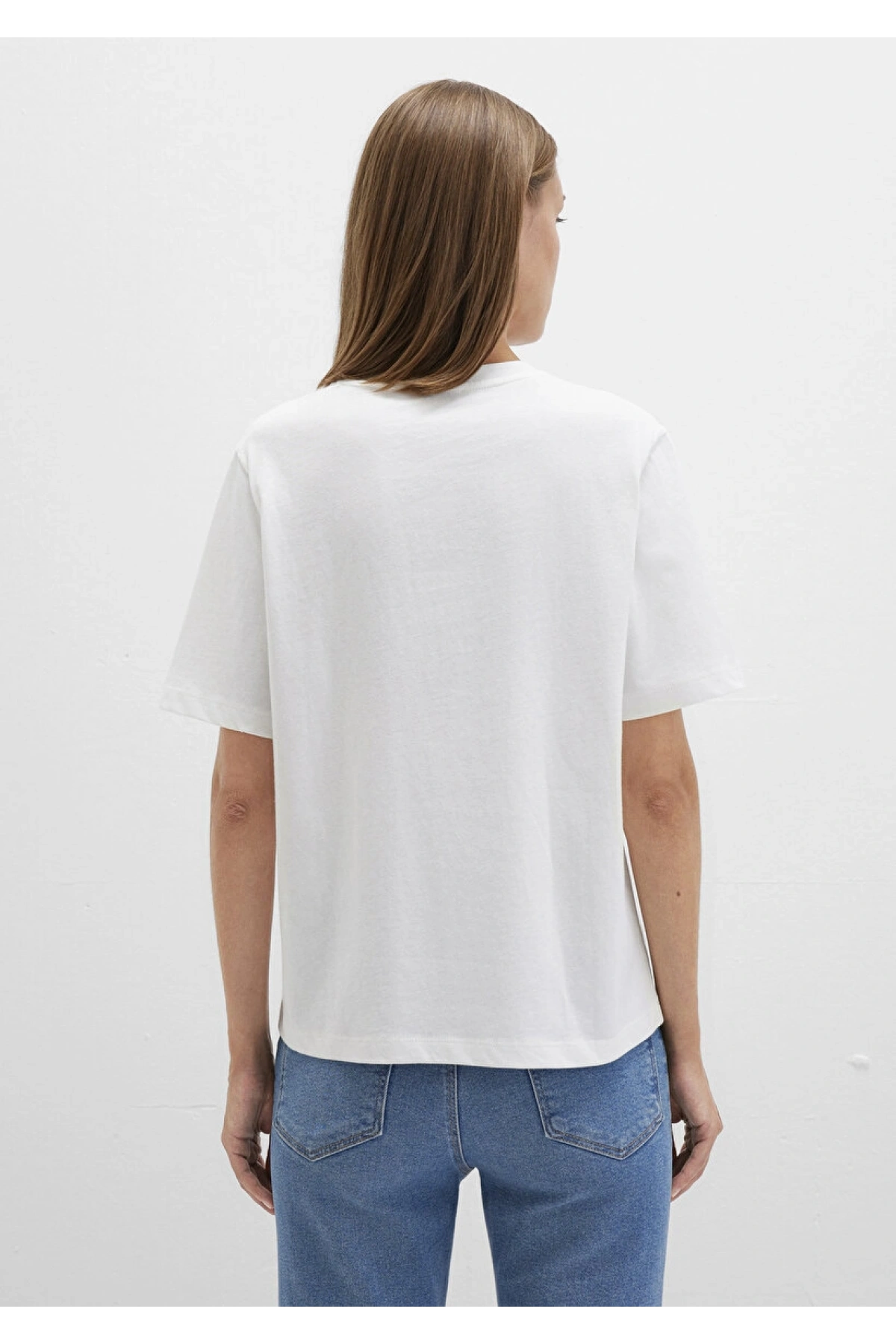 Mavi Baskılı Beyaz Crop Tişört Regular Fit / Normal Kesim