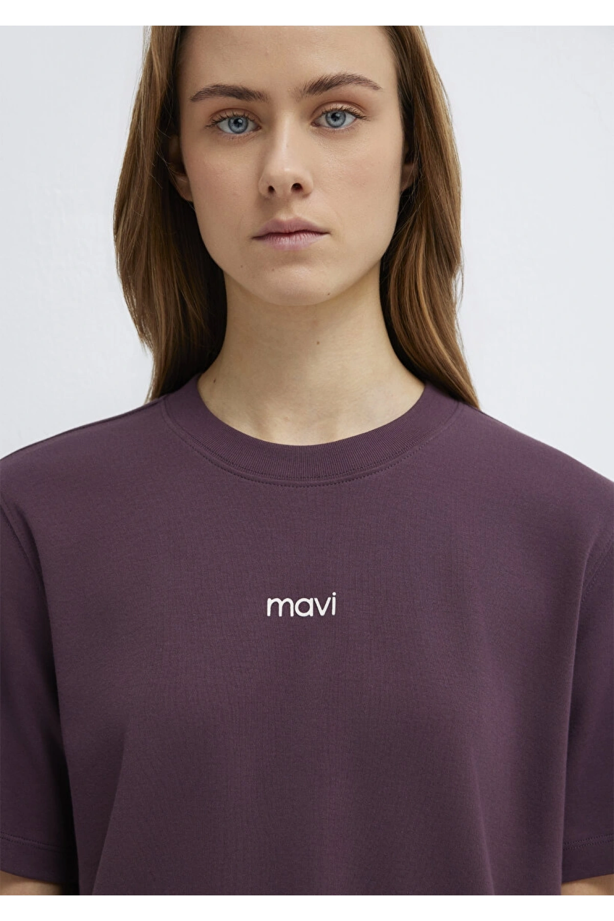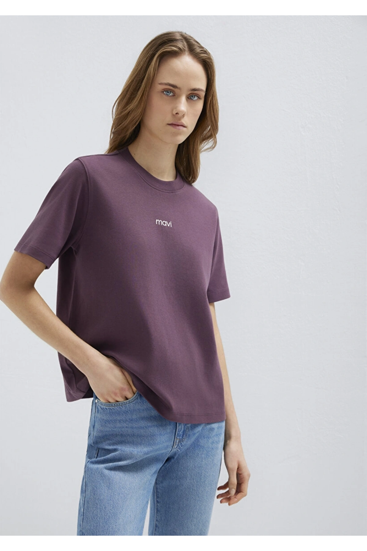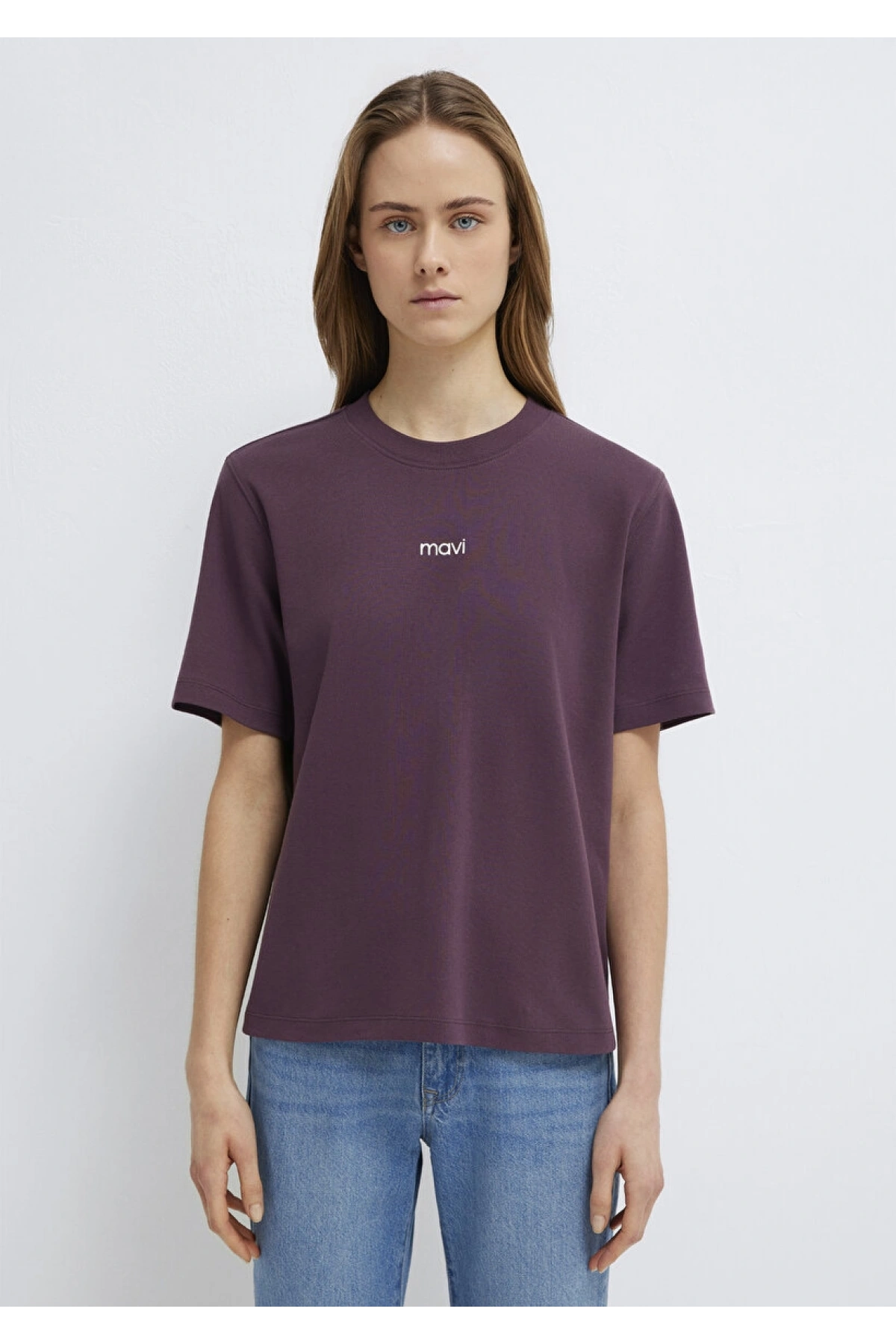 Mavi Logo Baskılı İnterlok Mor Tişört