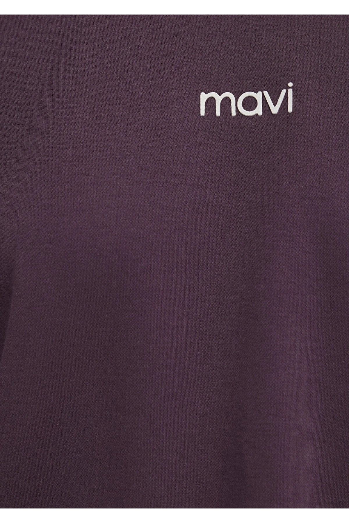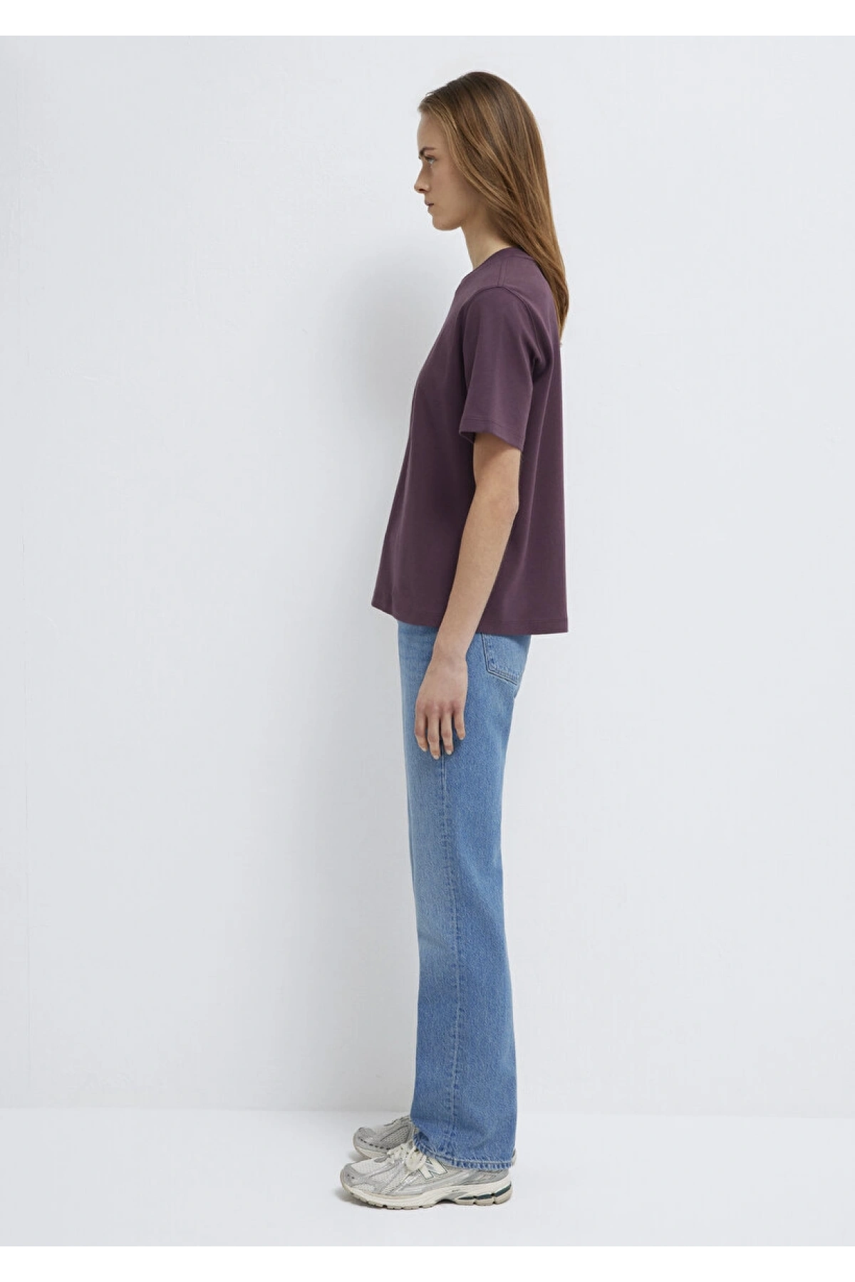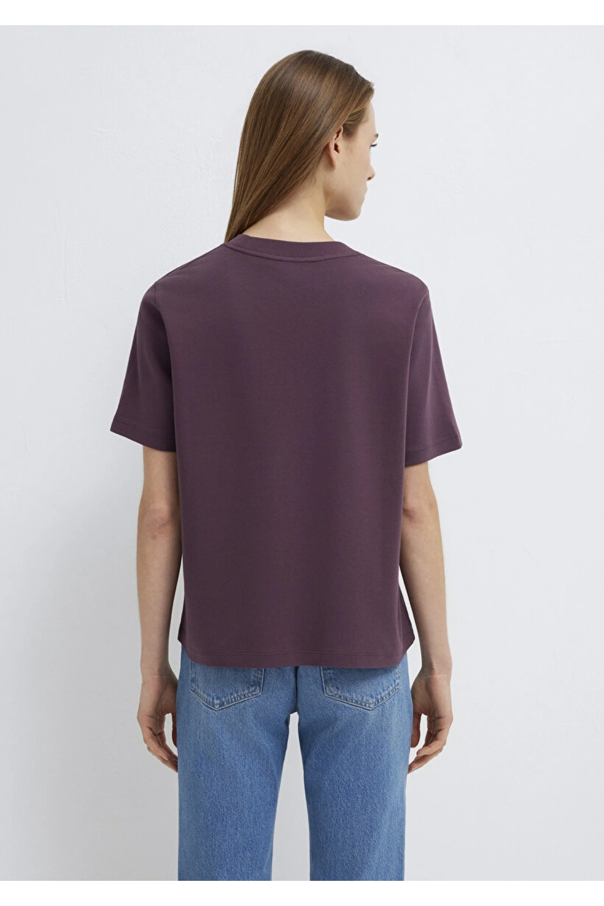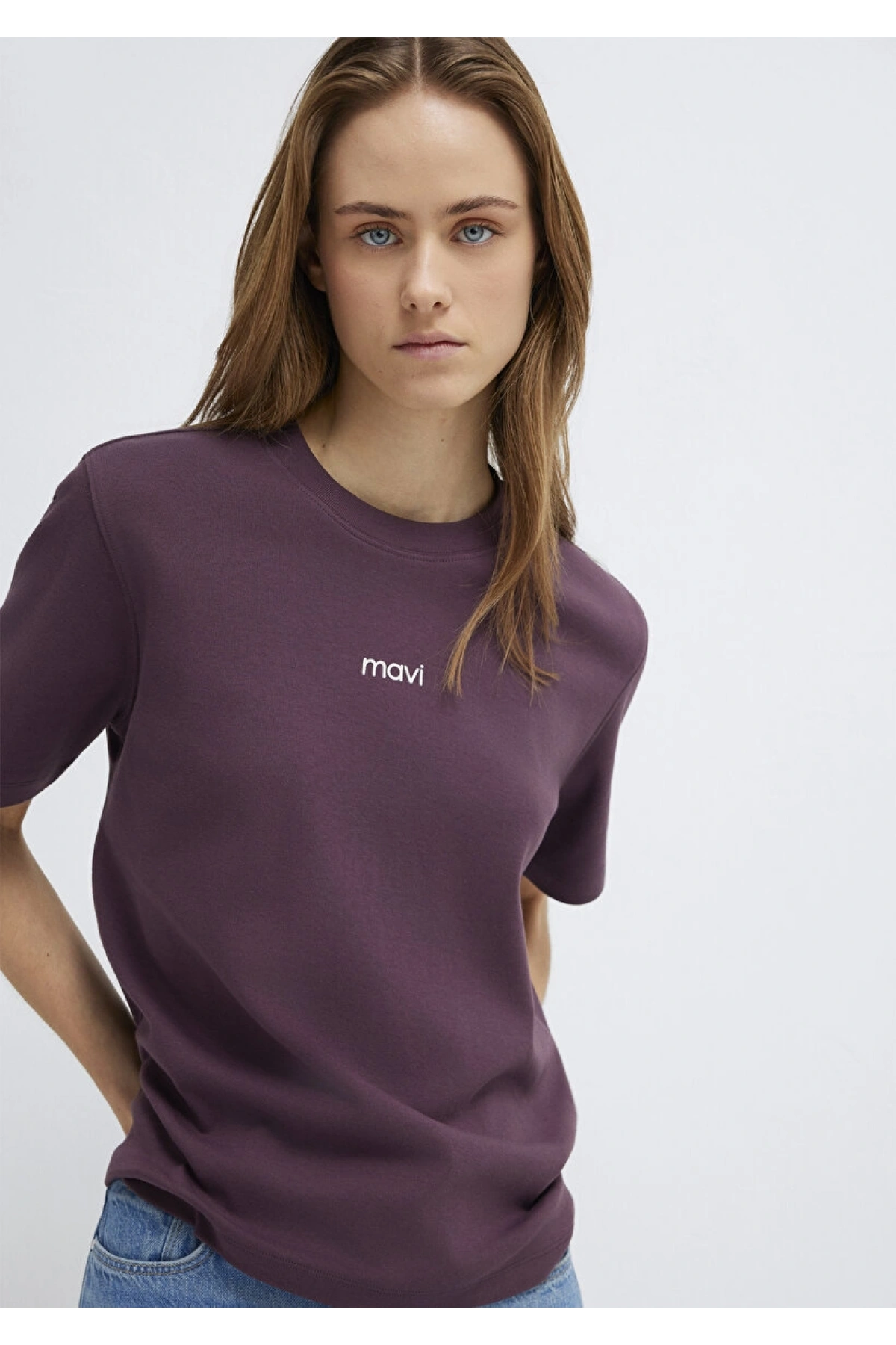 Mavi Logo Baskılı İnterlok Mor Tişört