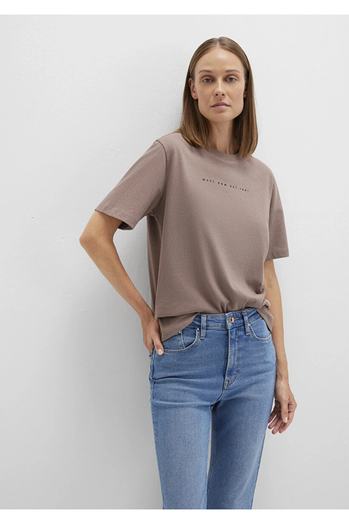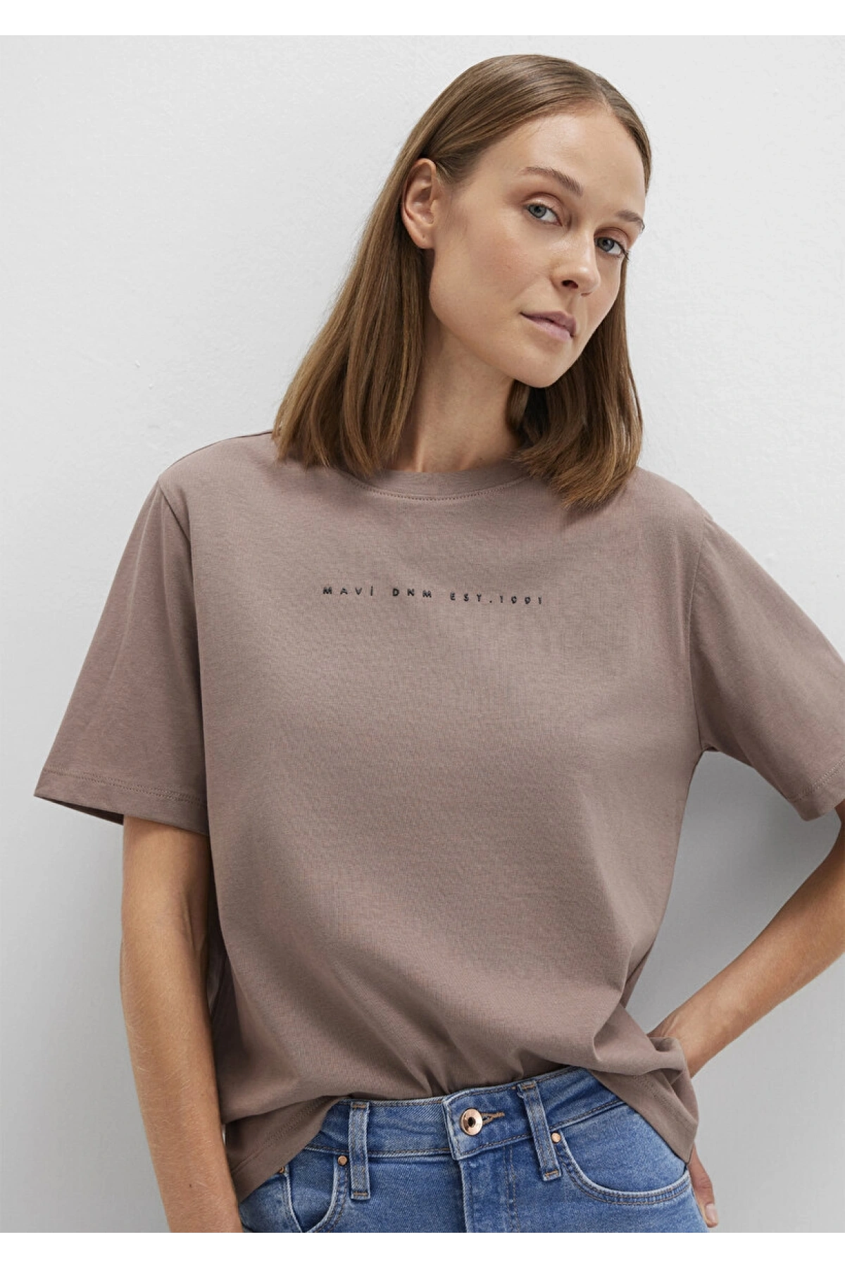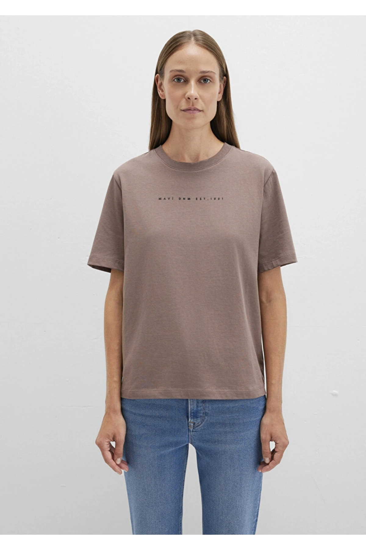 Mavi Baskılı Kahverengi Tişört Regular Fit / Normal Kesim