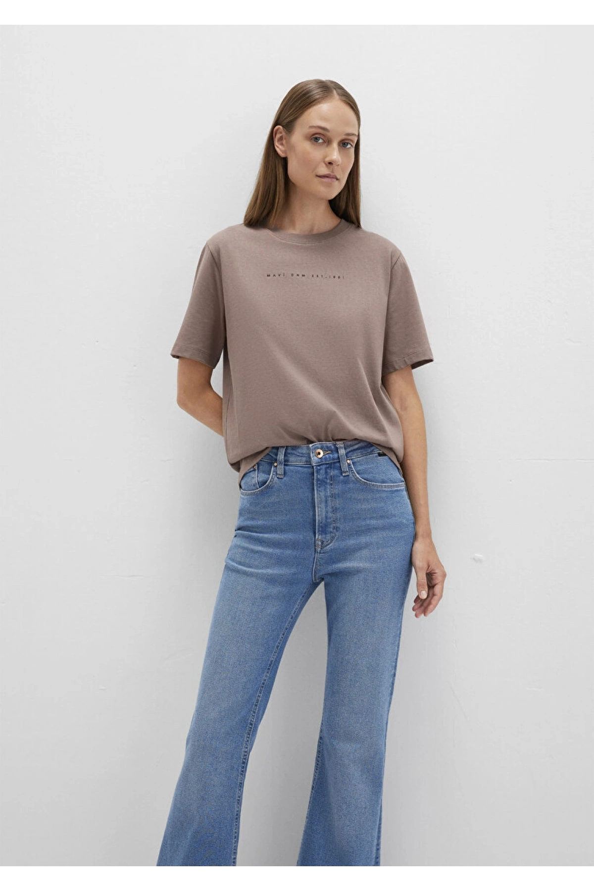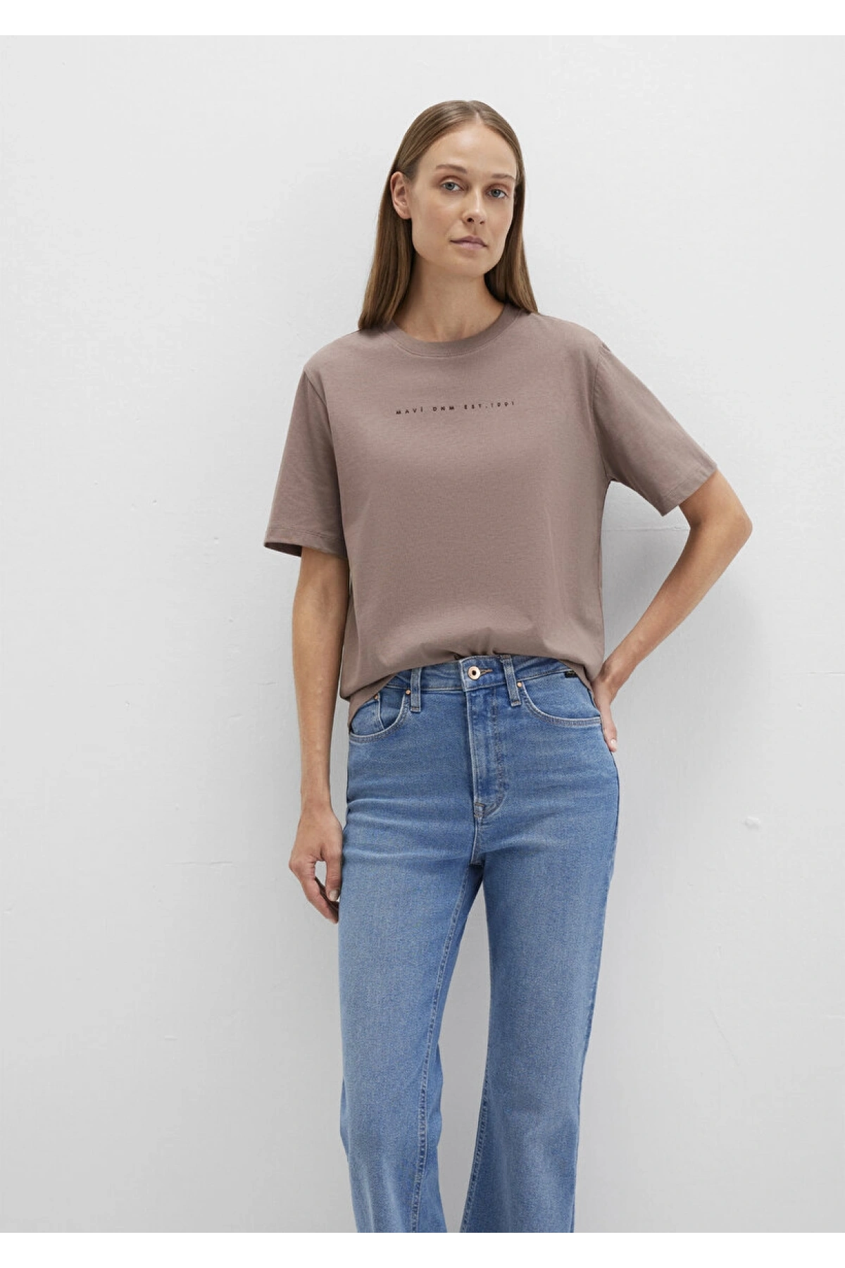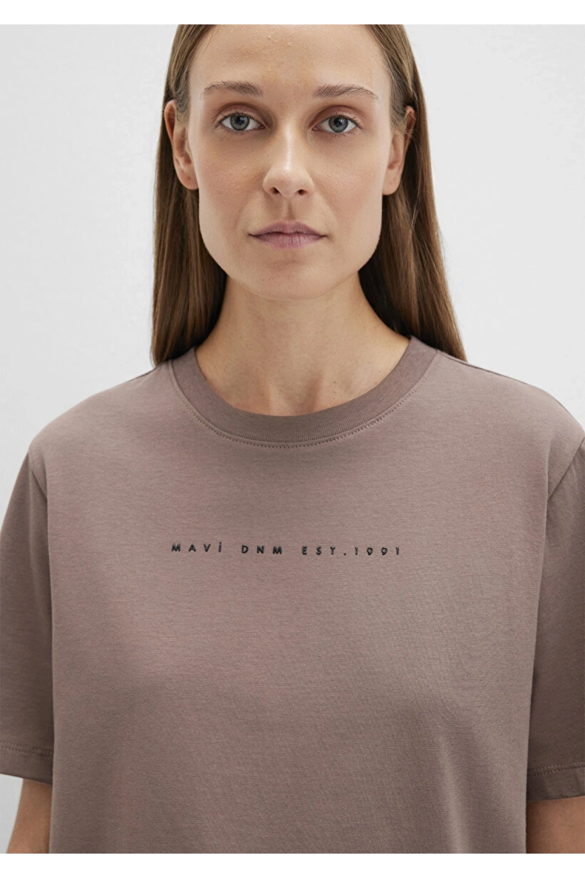 Mavi Baskılı Kahverengi Tişört Regular Fit / Normal Kesim