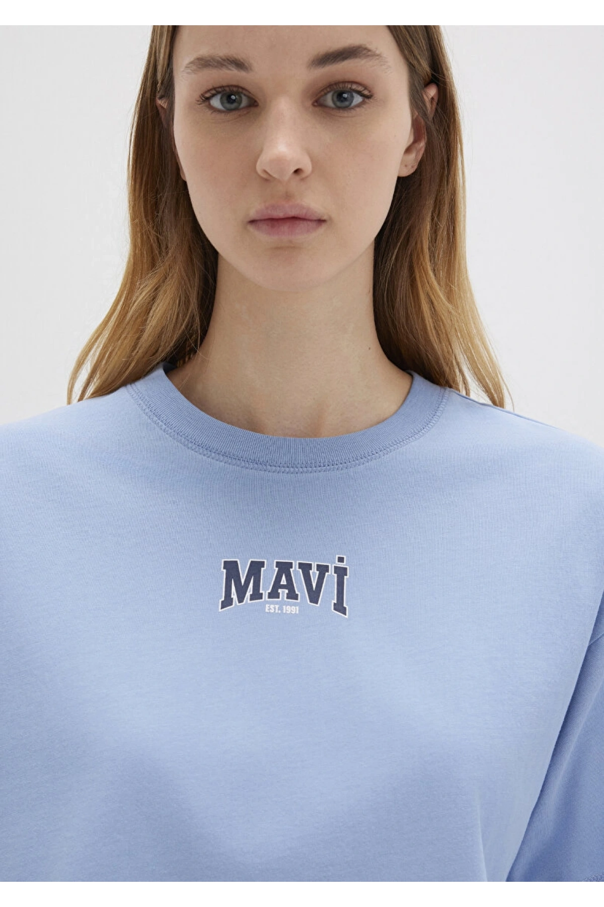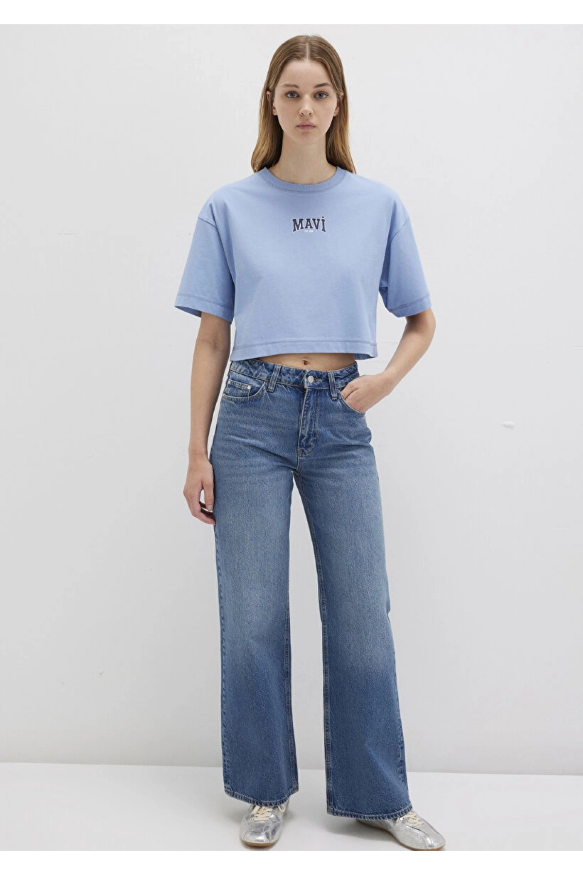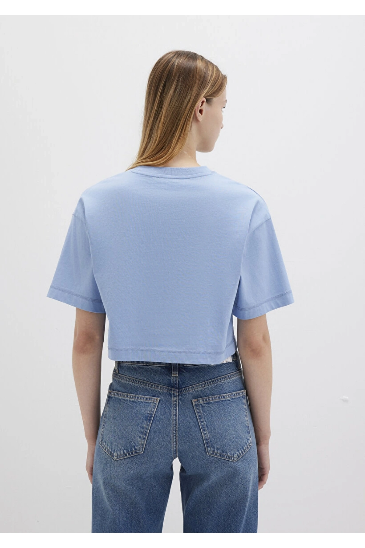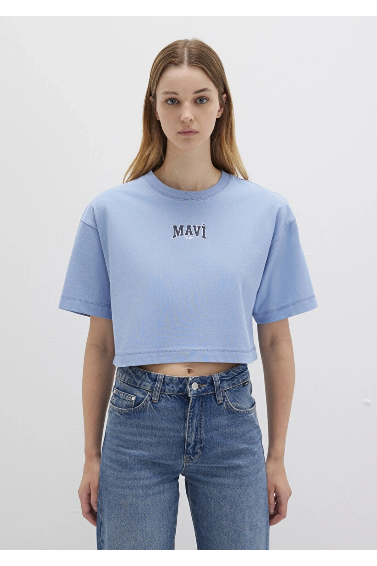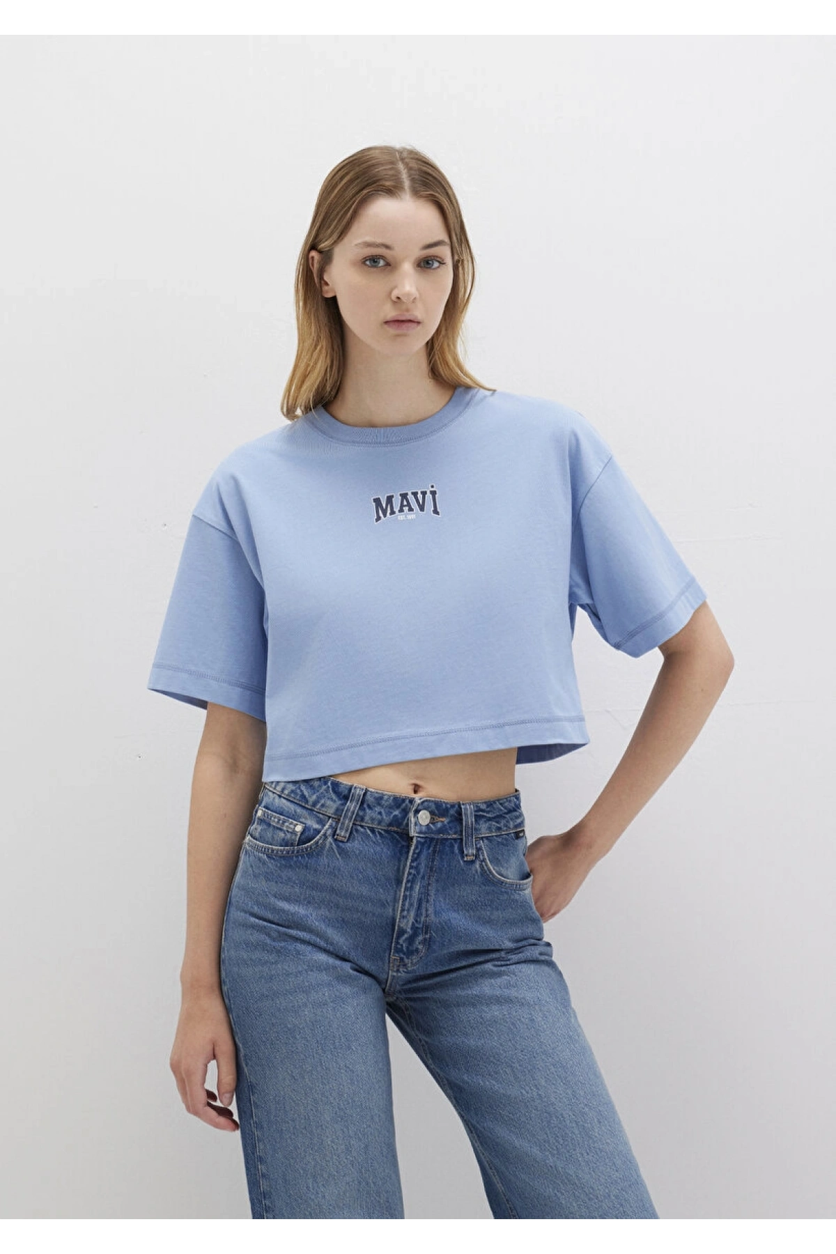 Mavi Logo Baskılı Crop Tişört Crop / Kısa Kesim
