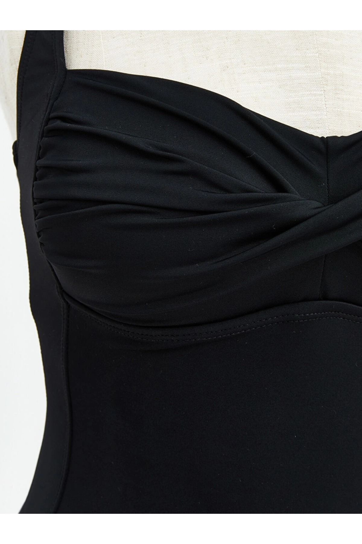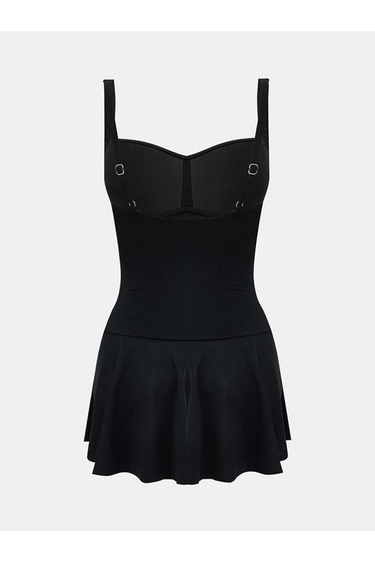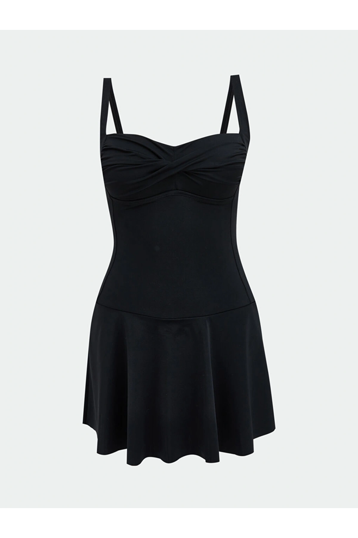 LCW DREAM Siyah Kalp Yaka Büzgü Detaylı Kadın Etekli Mayo
