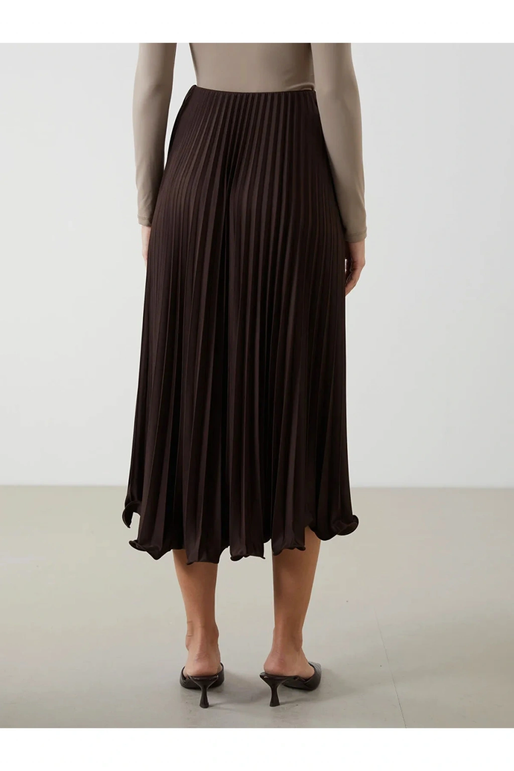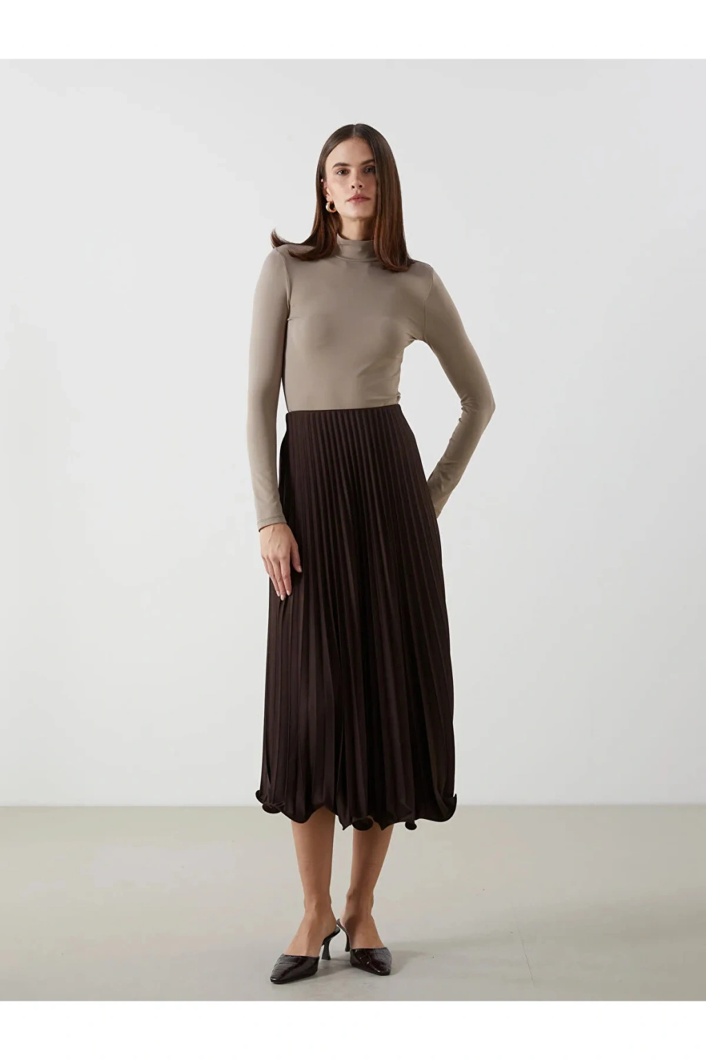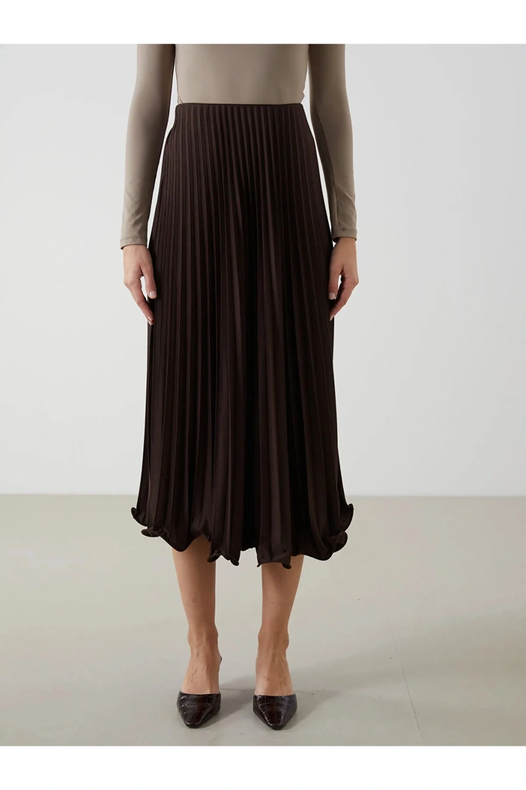 Beli lastikli kadın pileli etek, şifon kumaştan üretilmiştir. Şifon kumaşın hafif yapısı sayesinde rahat bir kullanım sağlar ve hareket özgürlüğü sunar. Beli saran lastikli yapısı sayesinde vücudunuza uyum sağlar.